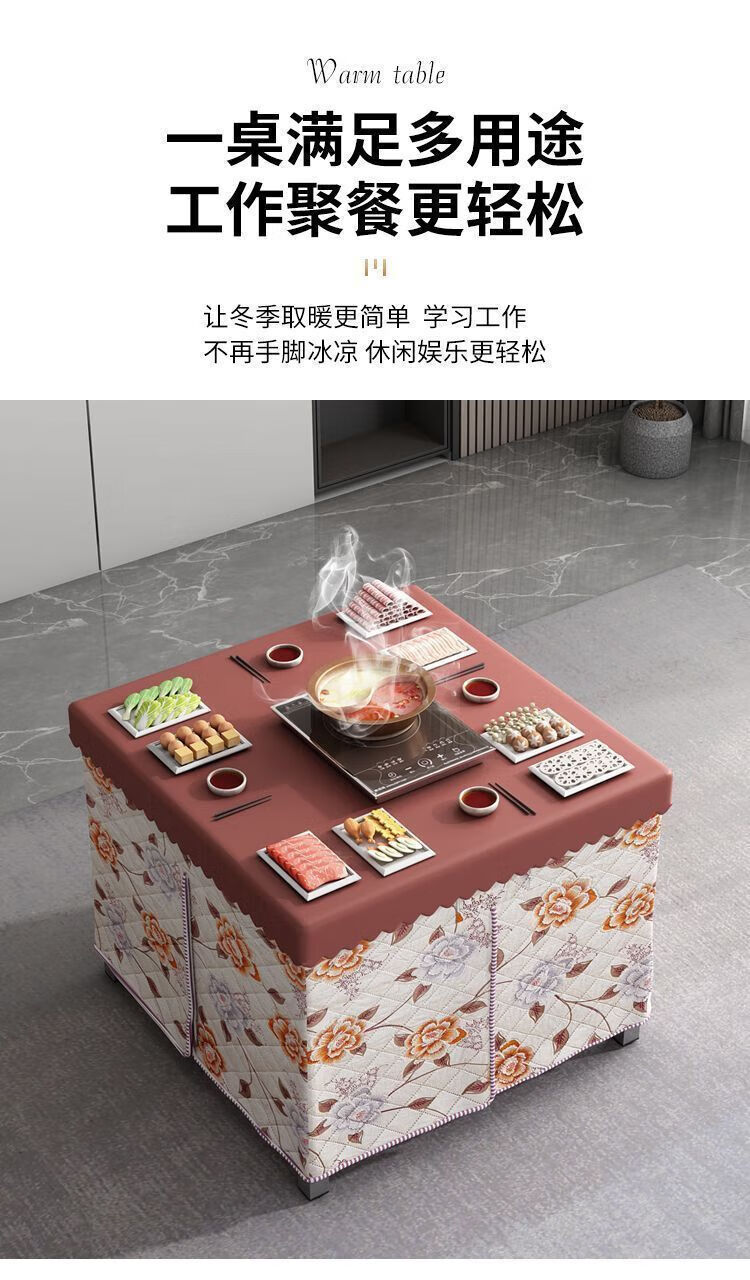 倘然之家烤火桌子架子家用客厅多功能取暖桌可折叠正方形桌冬季不锈钢餐桌 【66款】单个烤火罩 加厚镀锌碳钢+赠送可调节防滑底角