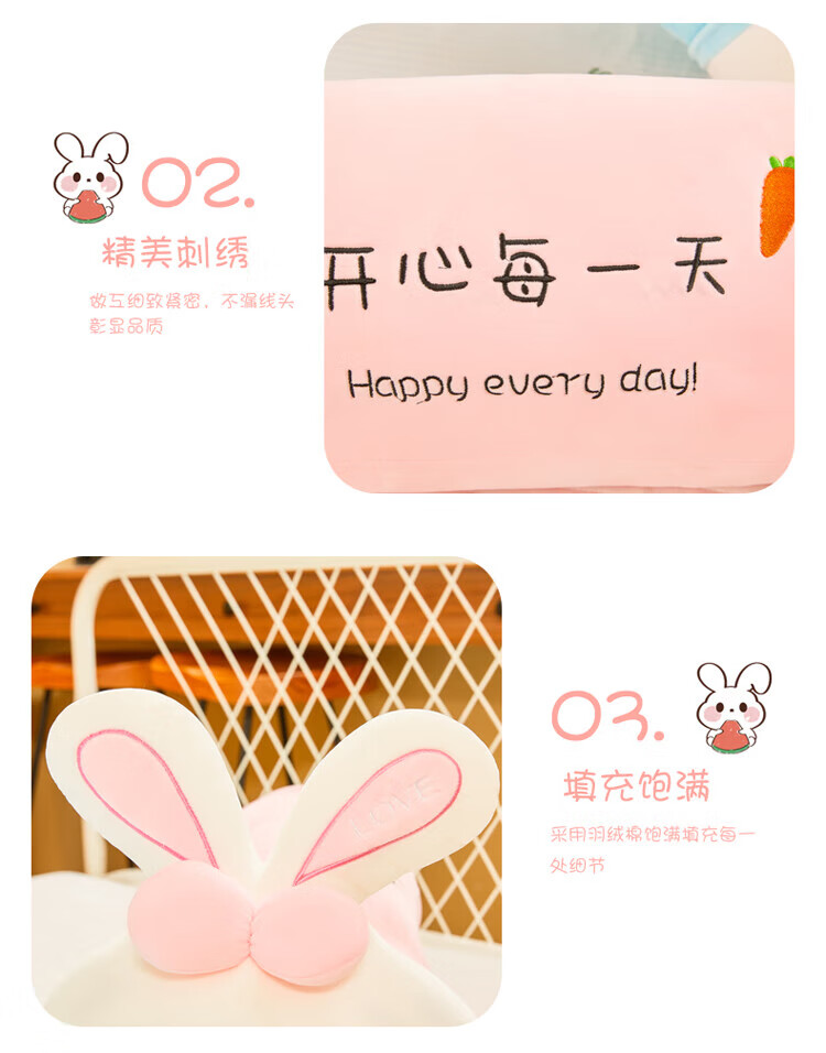 熊猫熊小兔子毛绒玩具抱枕娃娃玩偶公仔大号陪睡觉长条夹腿女孩生日礼物