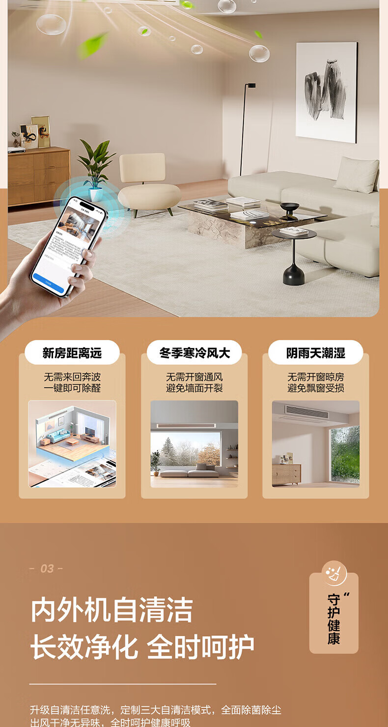 海尔云舒领航3匹风管机一拖一新房除甲醛 中央空调新一级能效嵌入式标配水泵防漏水 领航 云舒 1.5匹 领航直流水泵+长效除醛