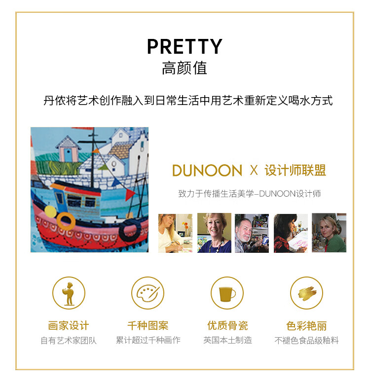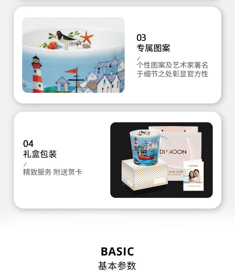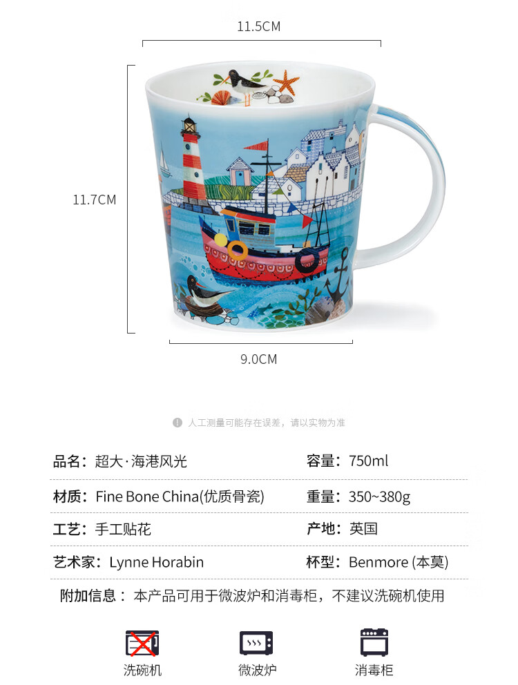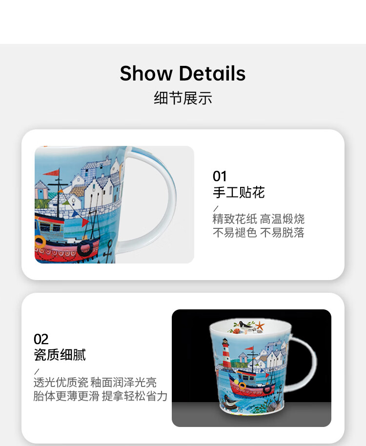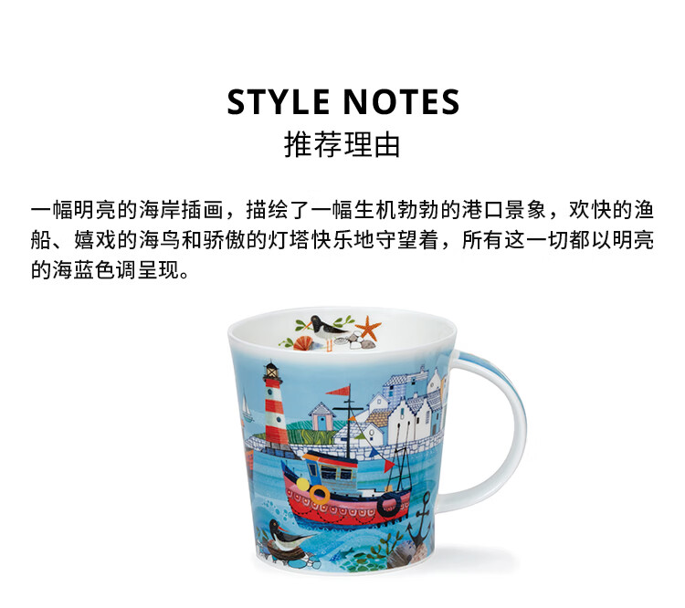 丹侬(DUNOON)骨瓷马克杯大容量画作海港风光陶瓷咖啡杯牛奶杯家用创意海边主题