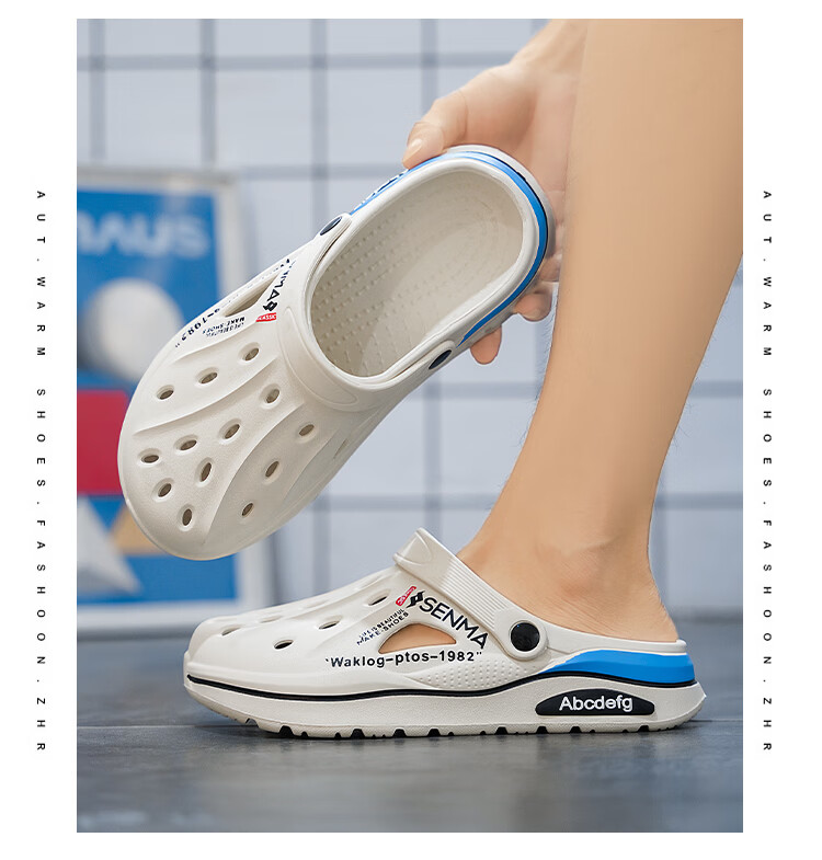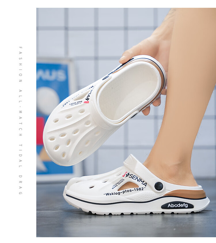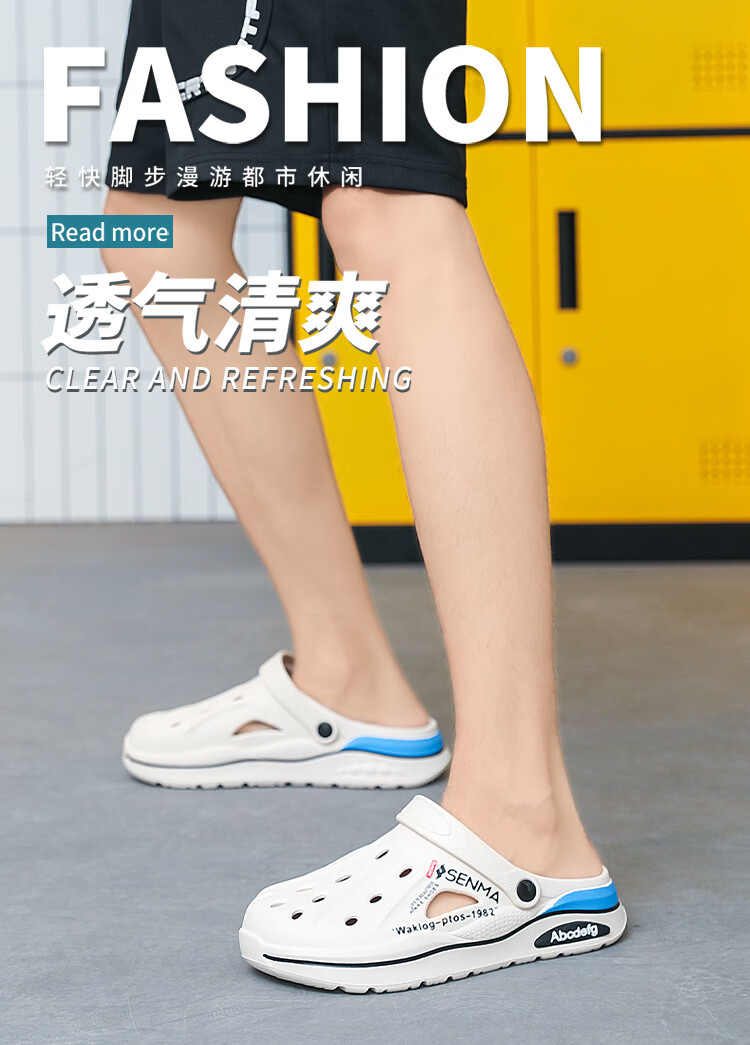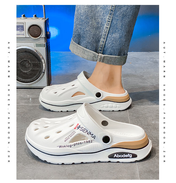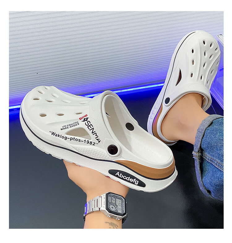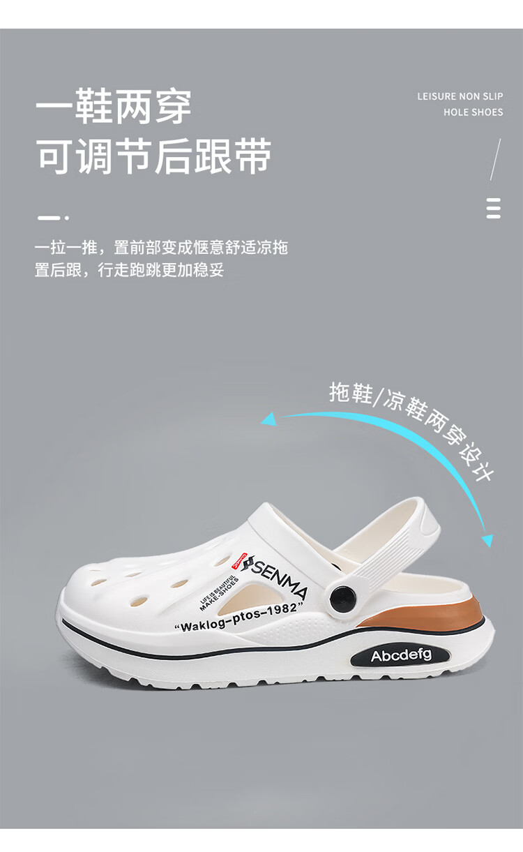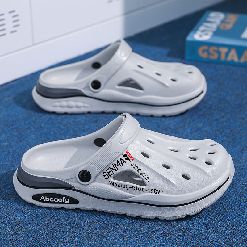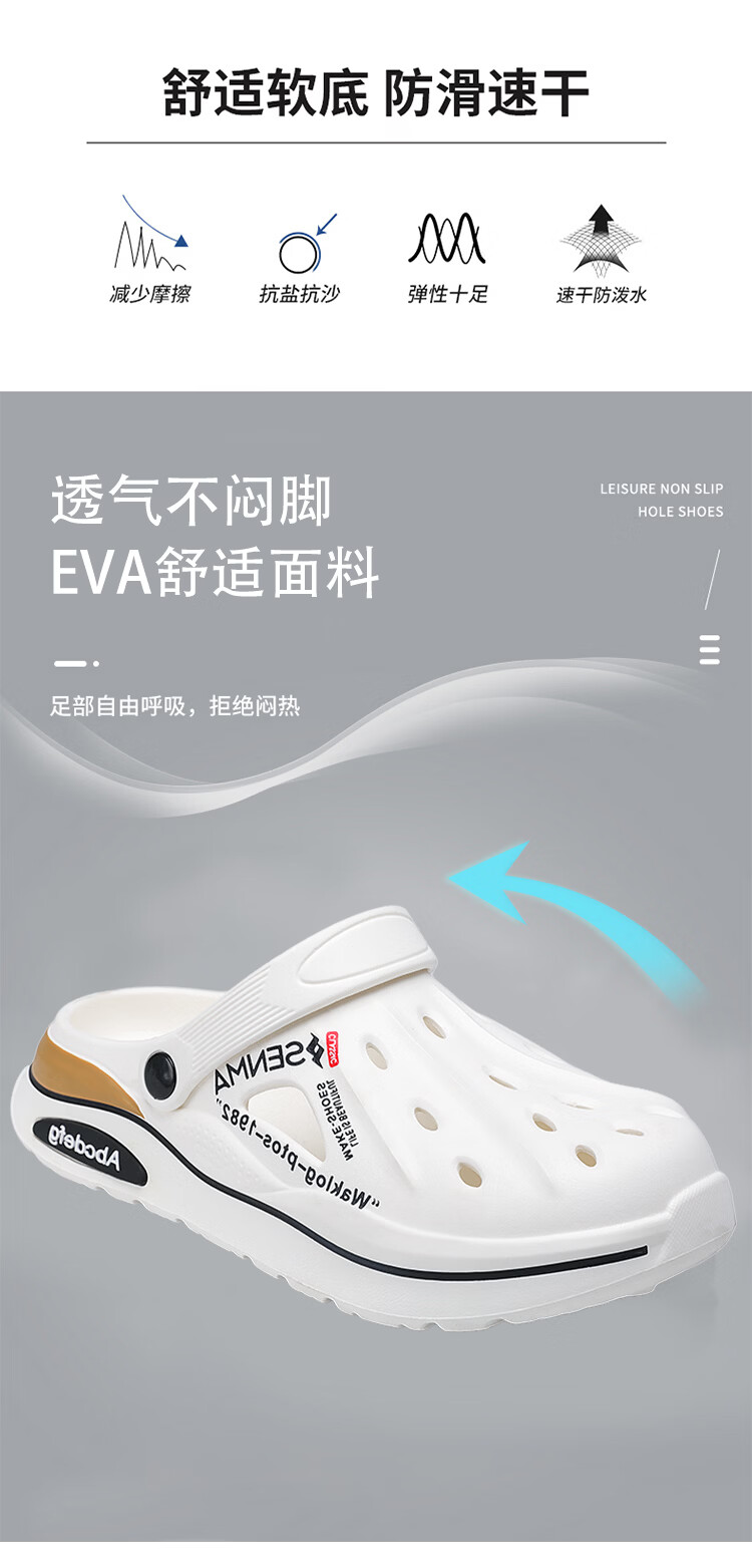 森馬洞洞鞋男2026新款夏季外穿防臭防滑沙滩凉鞋居家室内大码47包头拖 白色【基础款】 36-37 现货秒发