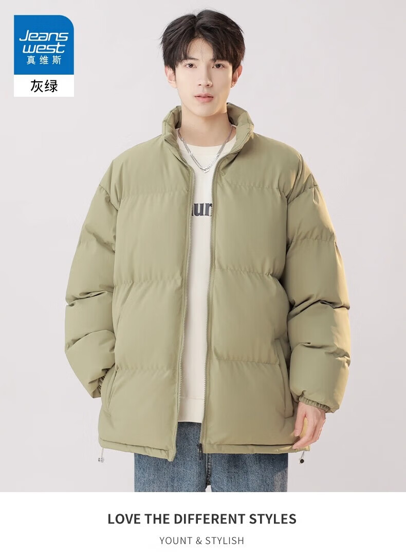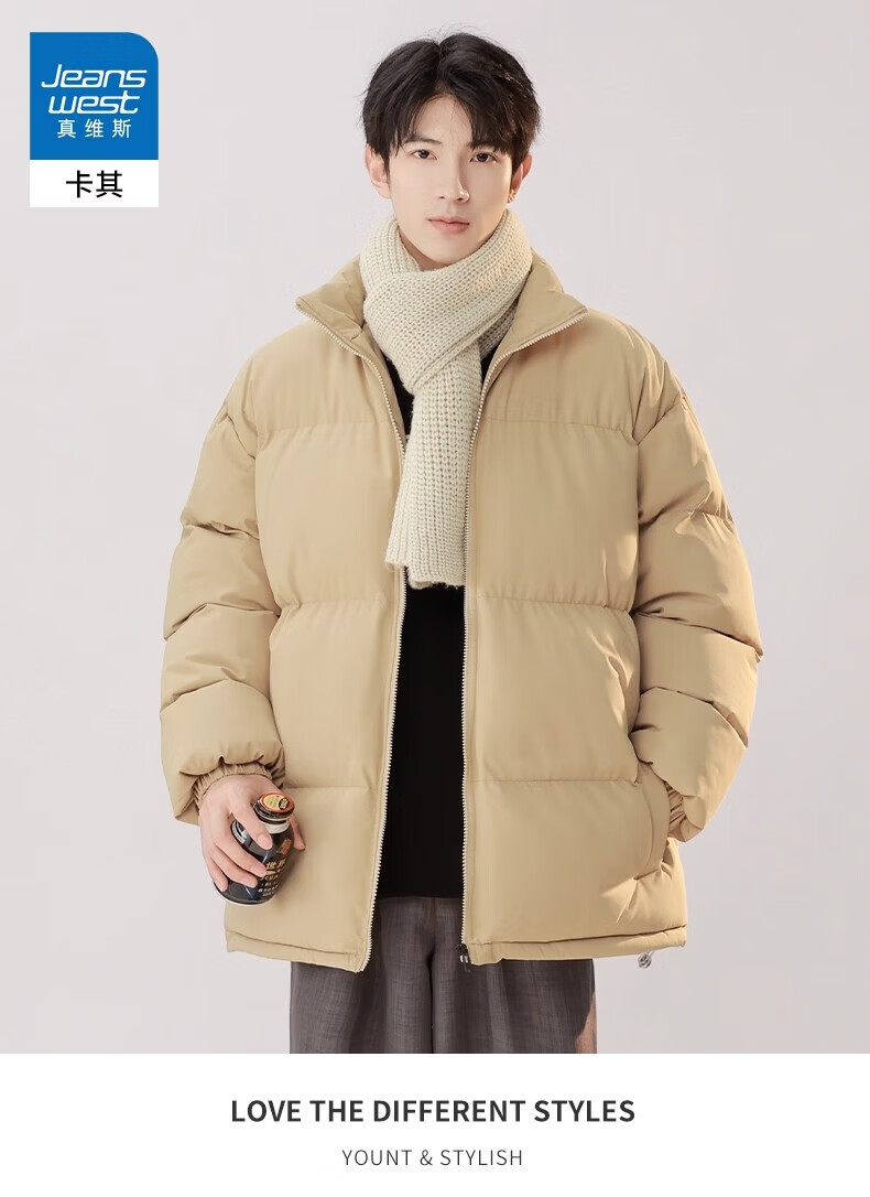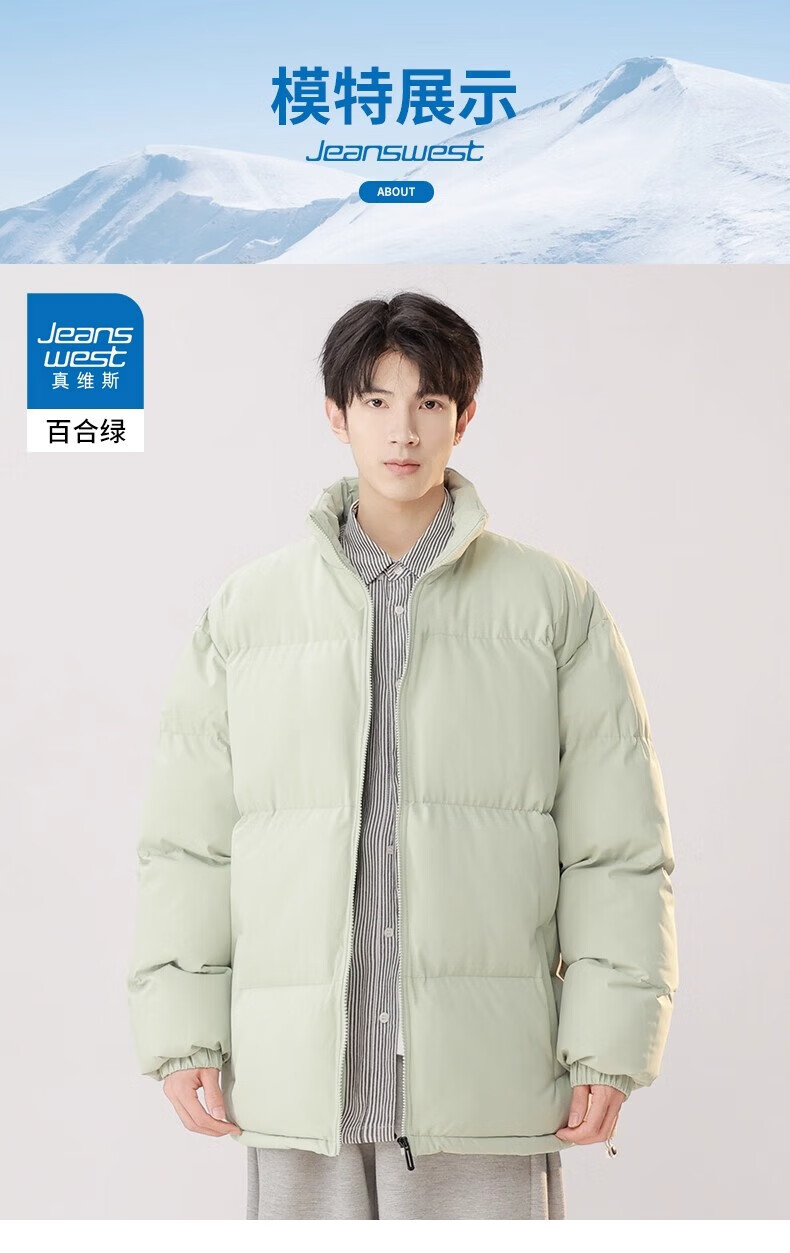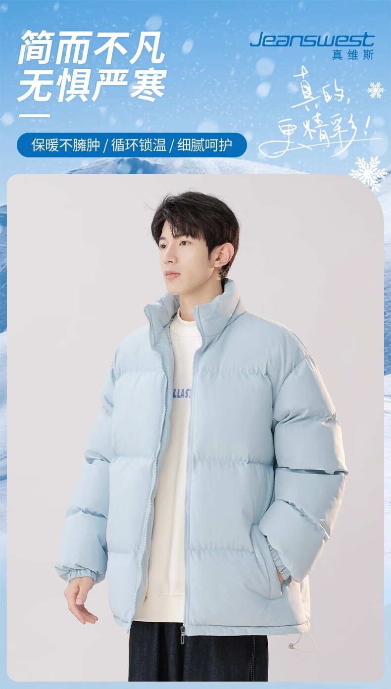 真维斯(Jeanswest)2026立领羽绒服男士加厚保暖外套冬季高蓬松90鸭绒休闲简约面包服 浅蓝【防风保暖】 S 【建议80-115斤】