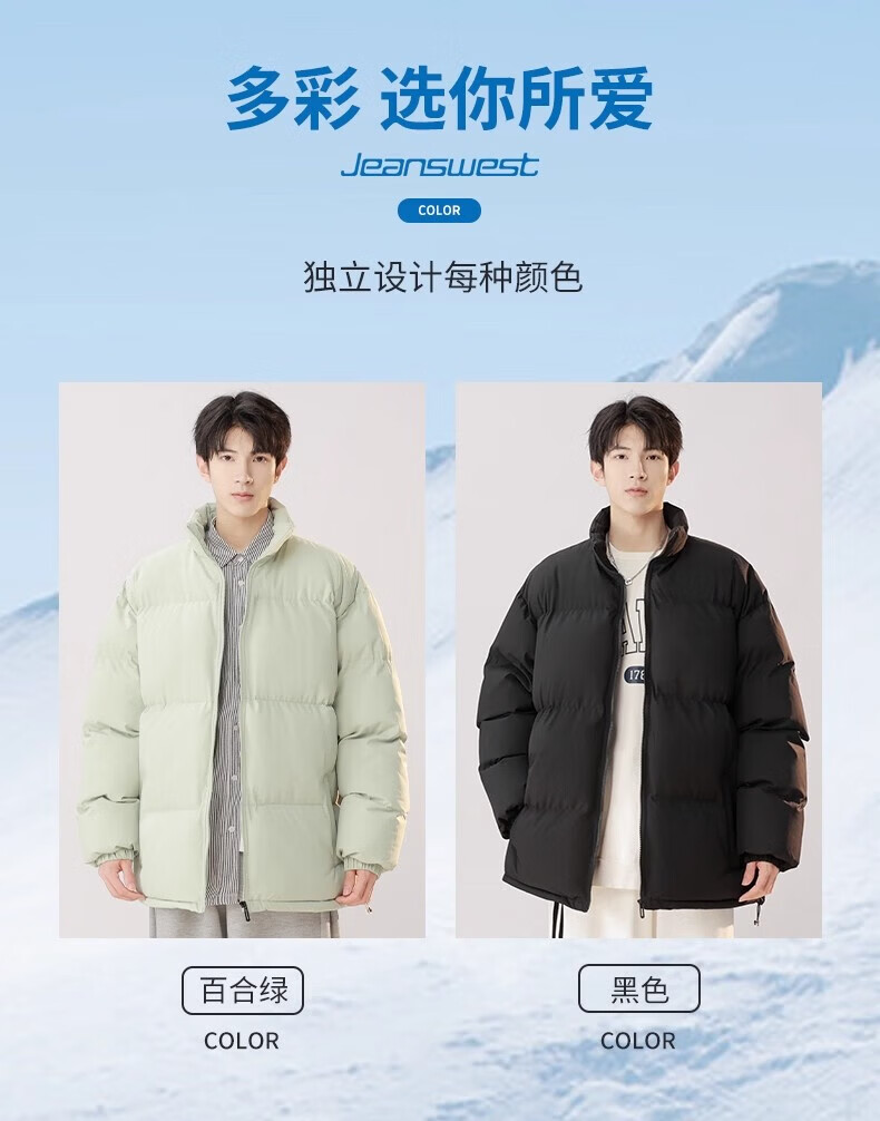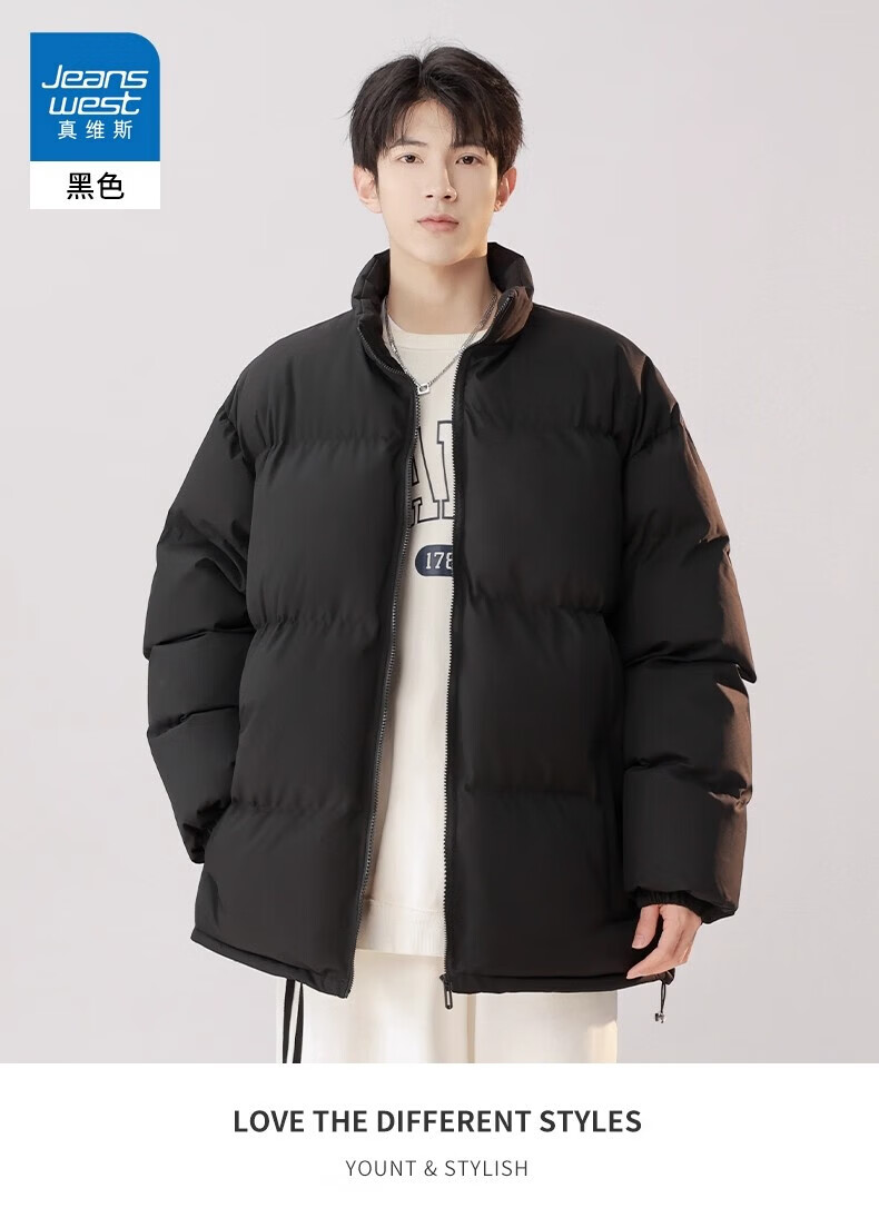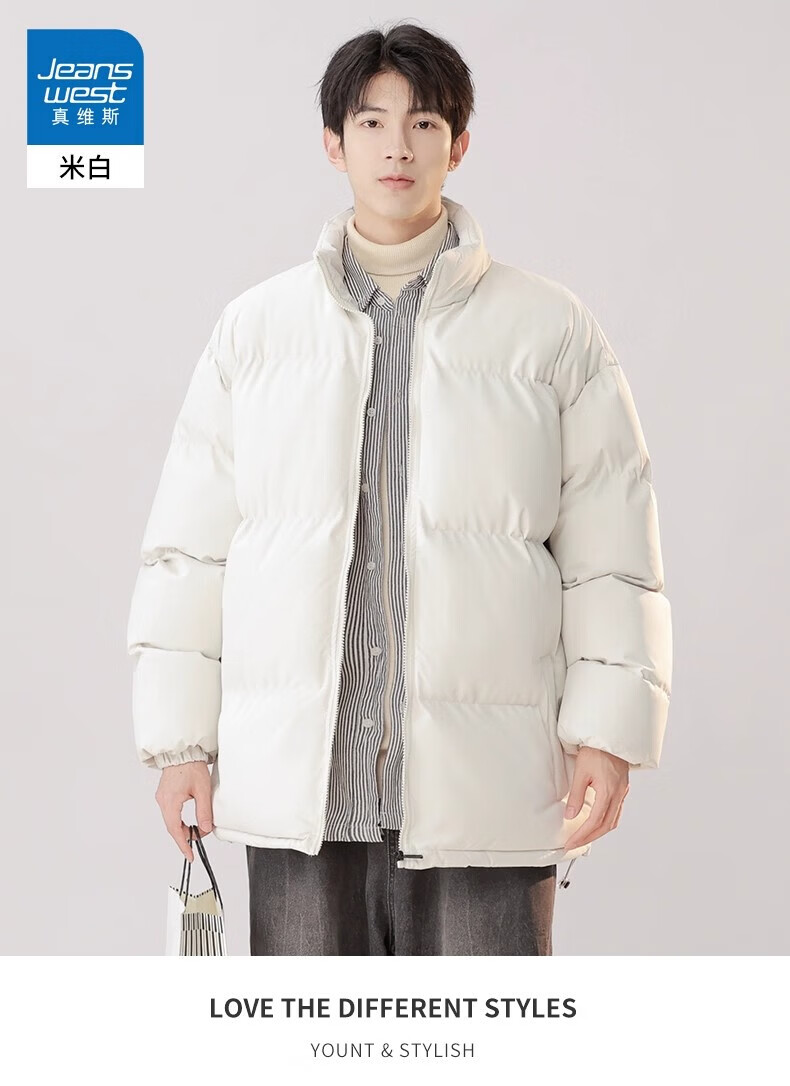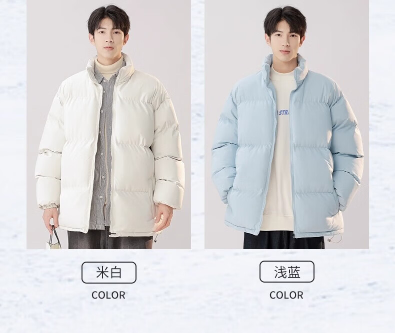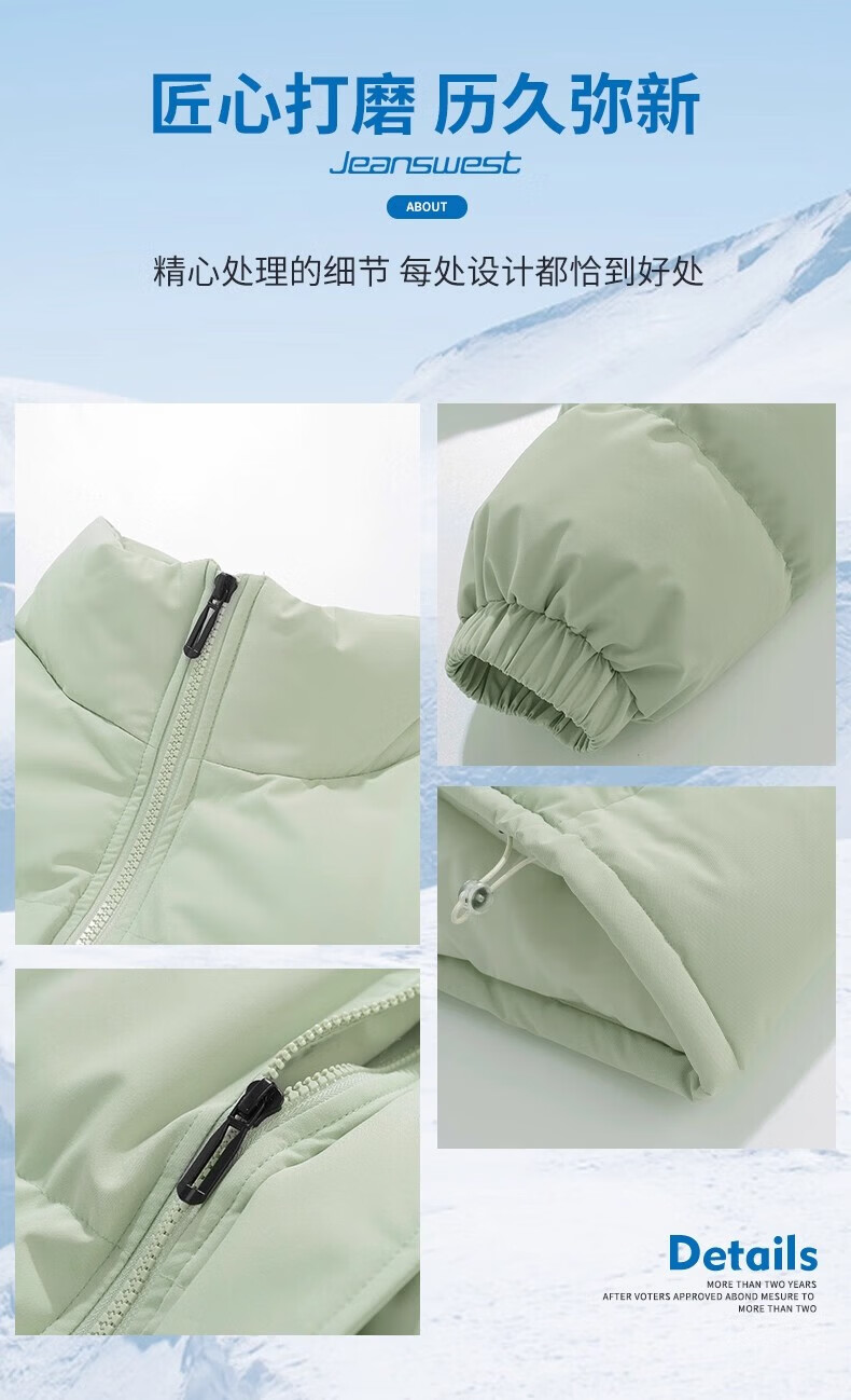 真维斯(Jeanswest)2026立领羽绒服男士加厚保暖外套冬季高蓬松90鸭绒休闲简约面包服 浅蓝【防风保暖】 S 【建议80-115斤】