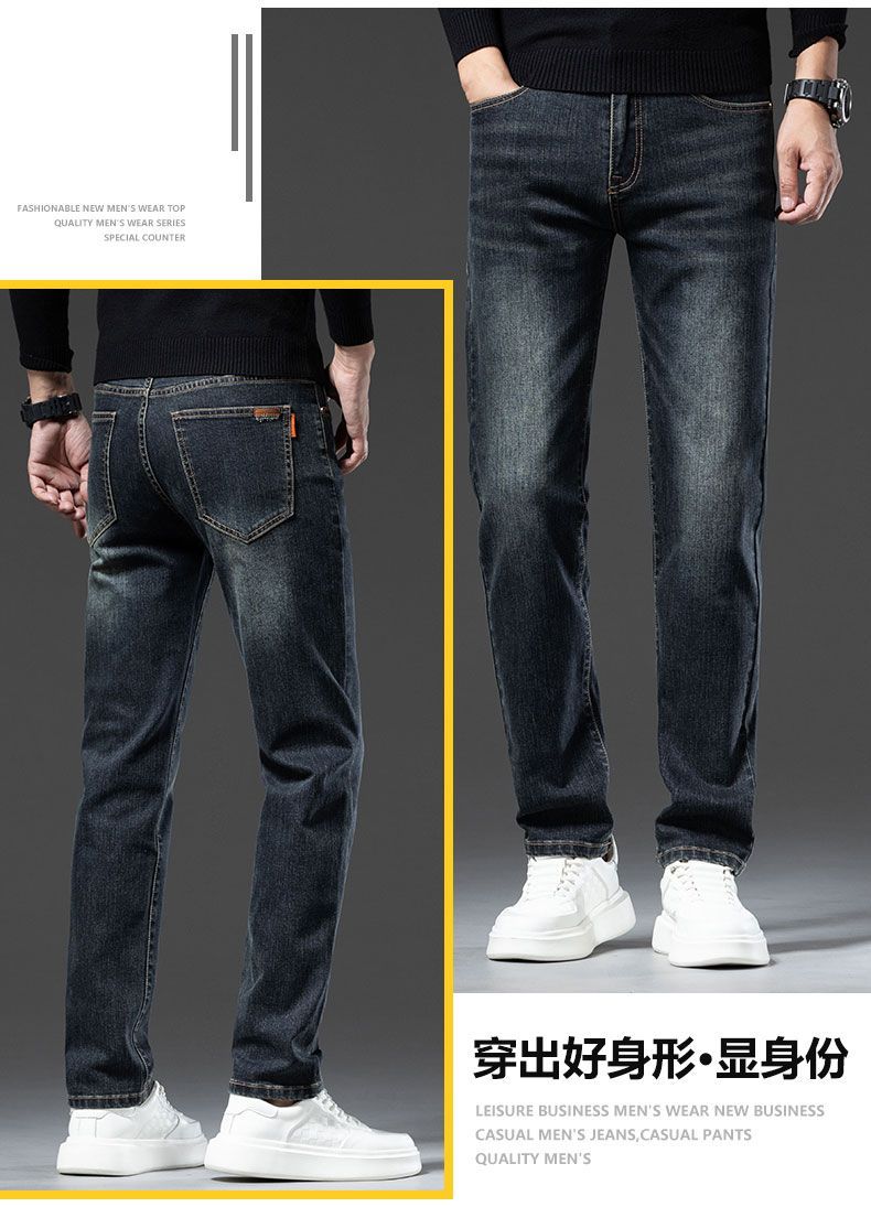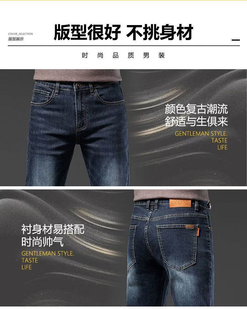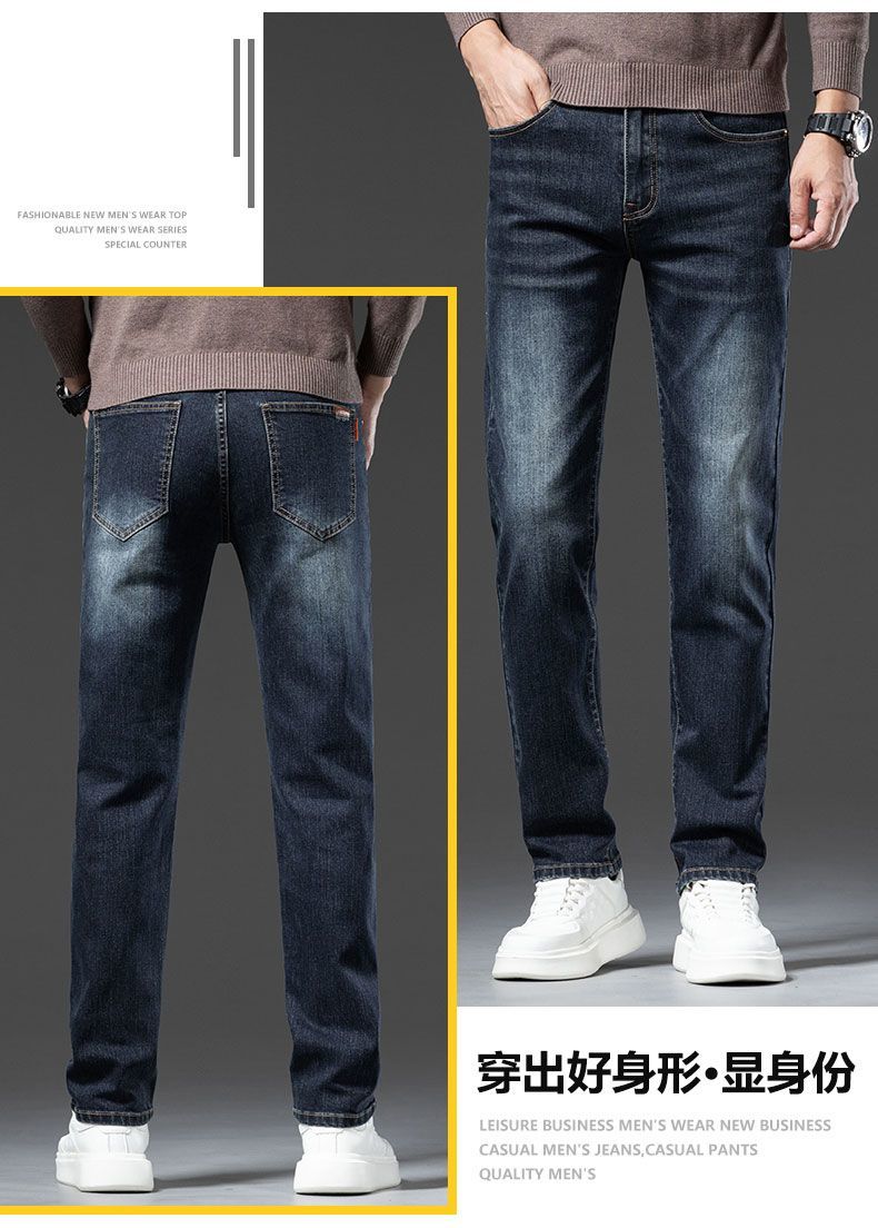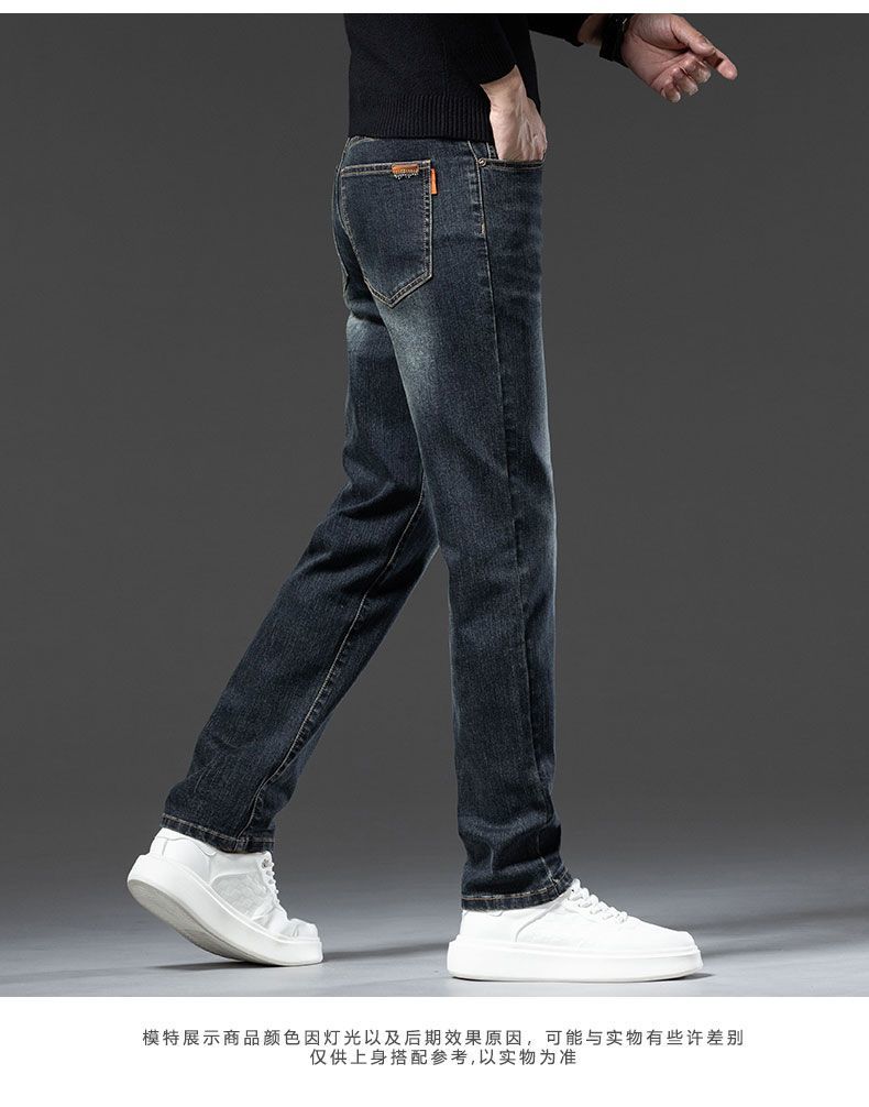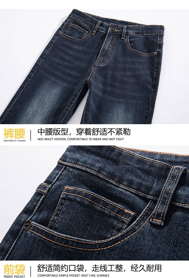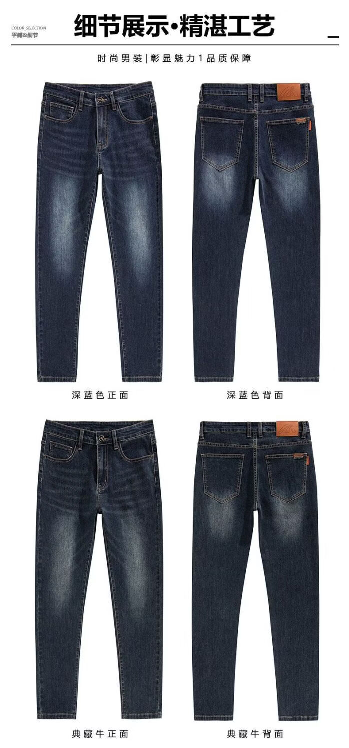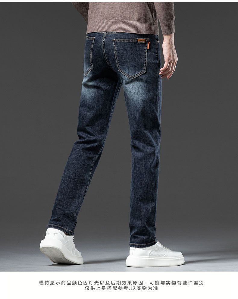 真维斯(Jeanswest)2026秋冬厚款加绒保暖弹力牛仔裤男潮牌修身百搭锥形直筒休闲长裤 深蓝色 28