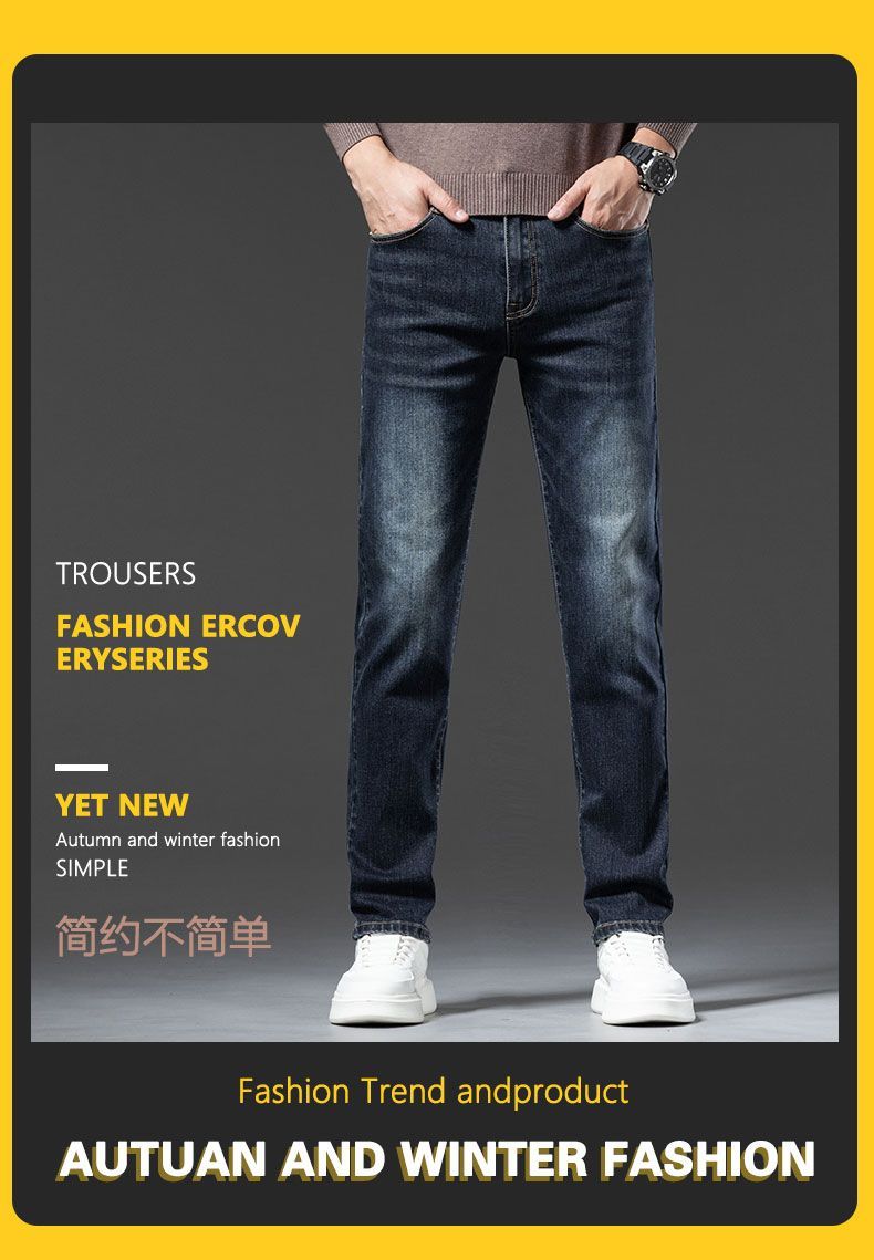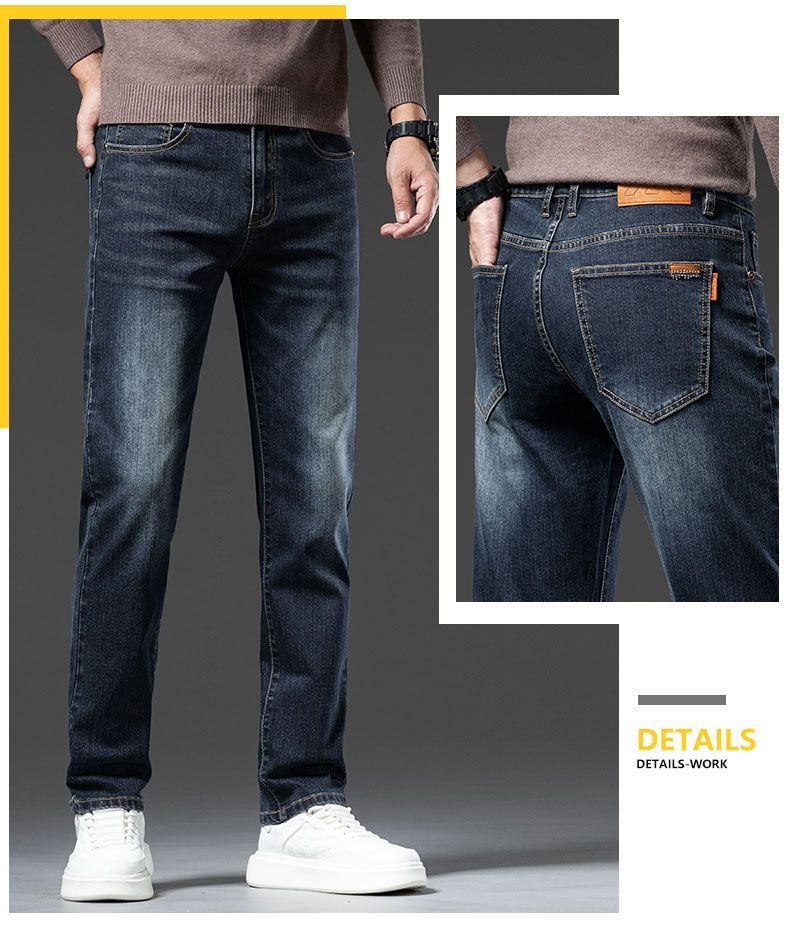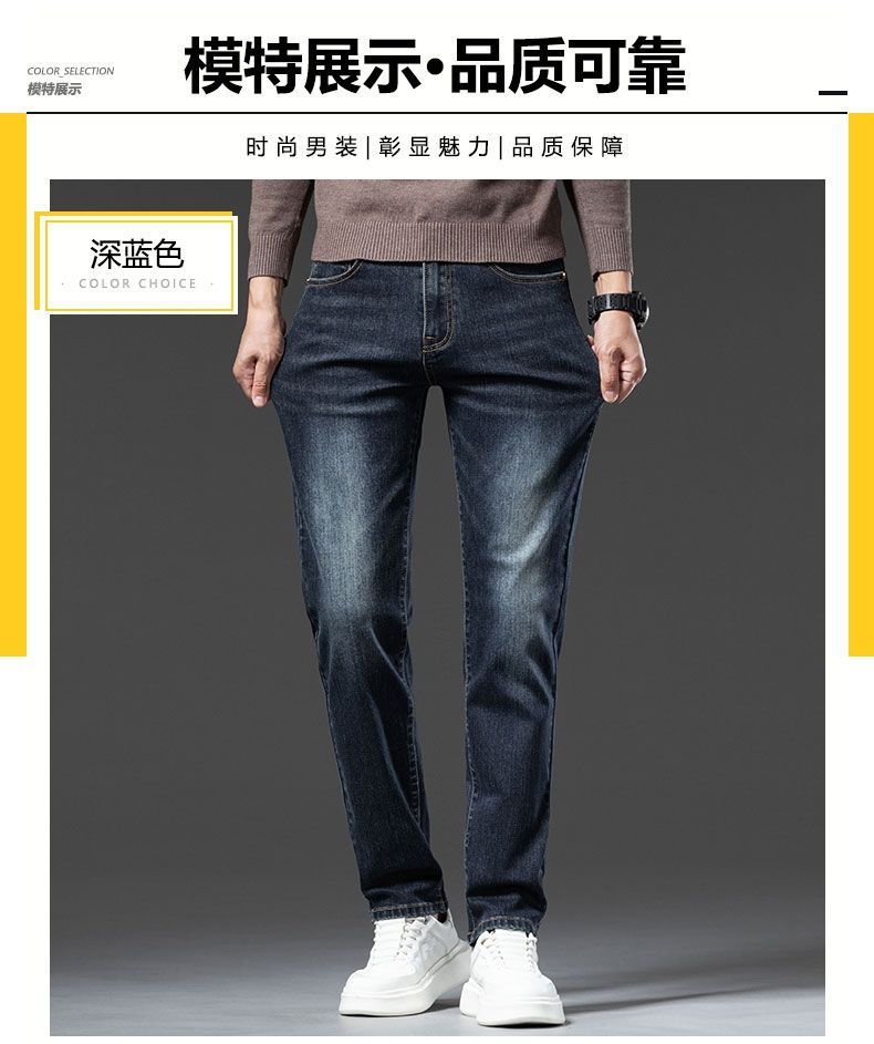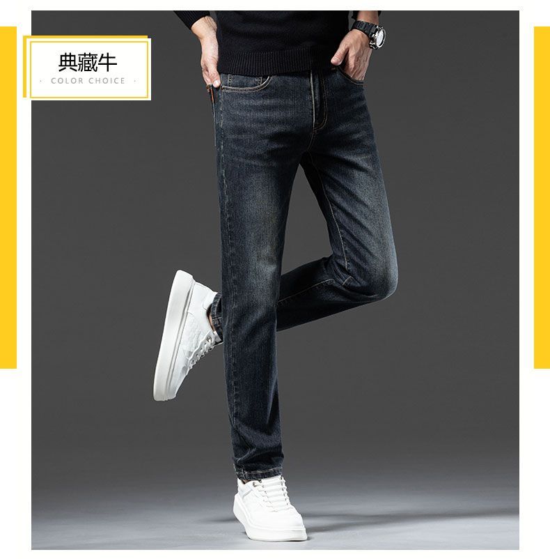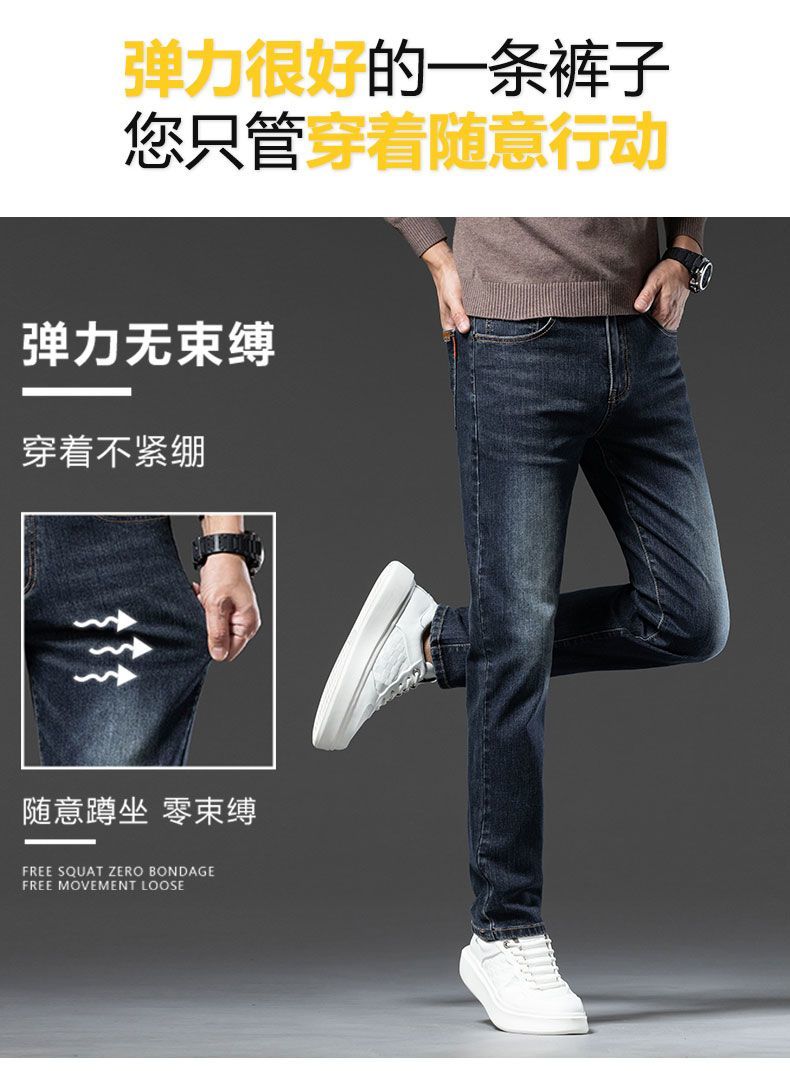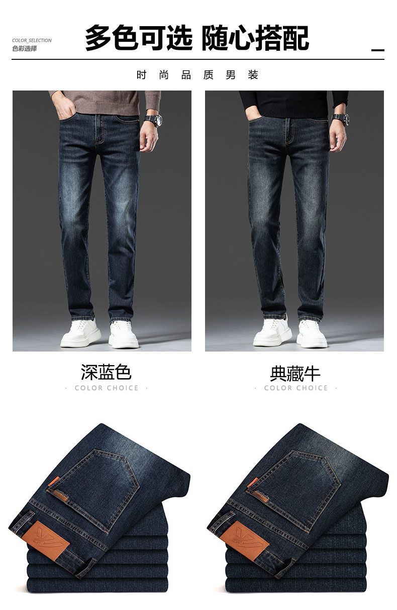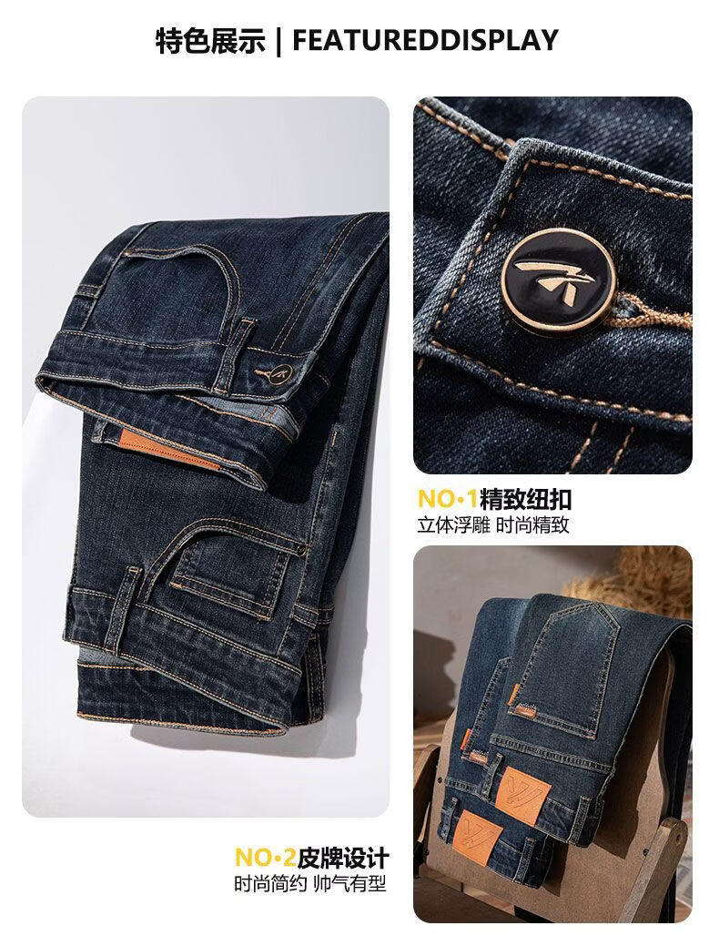 真维斯(Jeanswest)2026秋冬厚款加绒保暖弹力牛仔裤男潮牌修身百搭锥形直筒休闲长裤 深蓝色 28