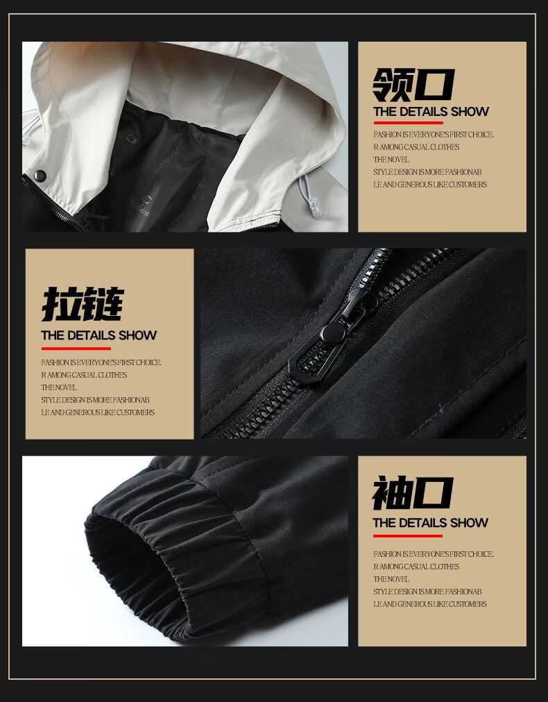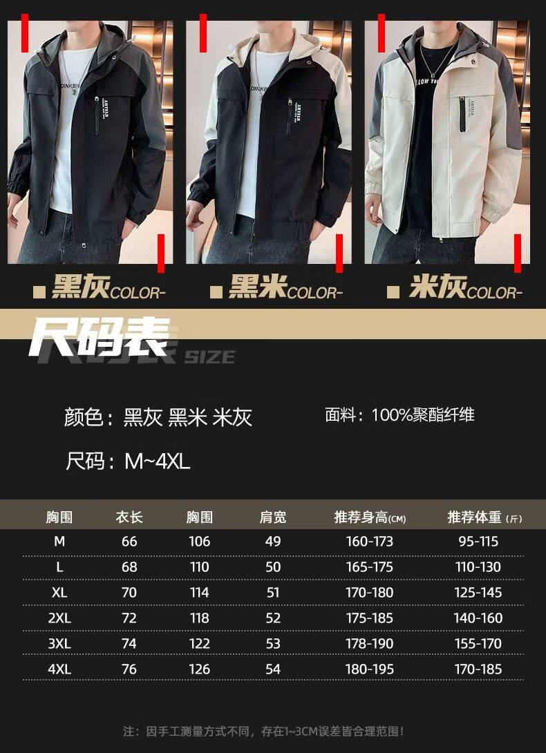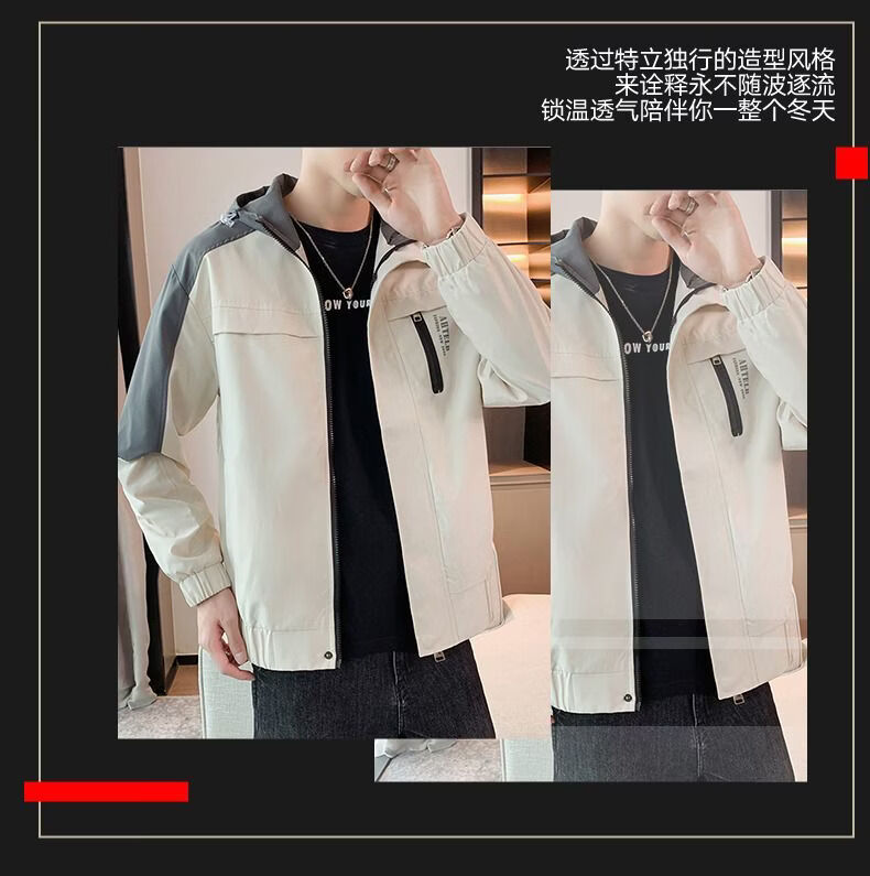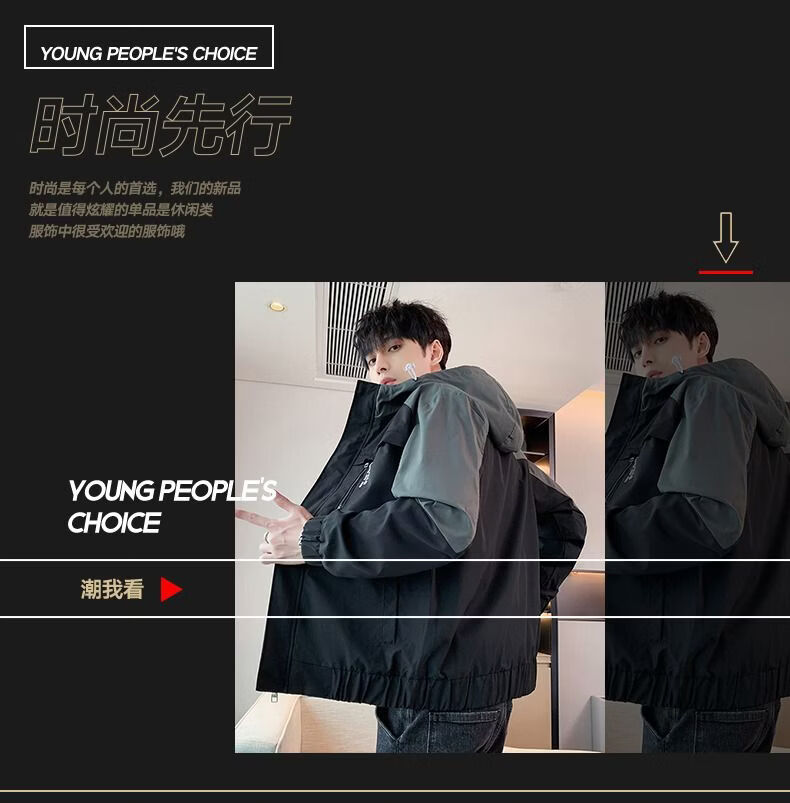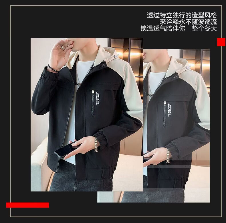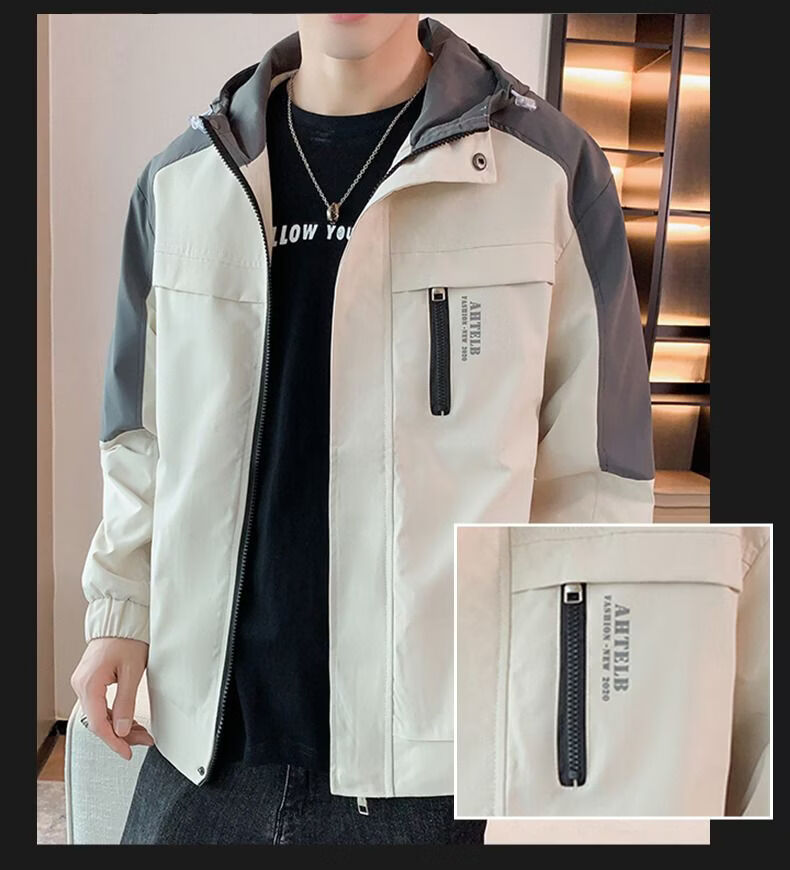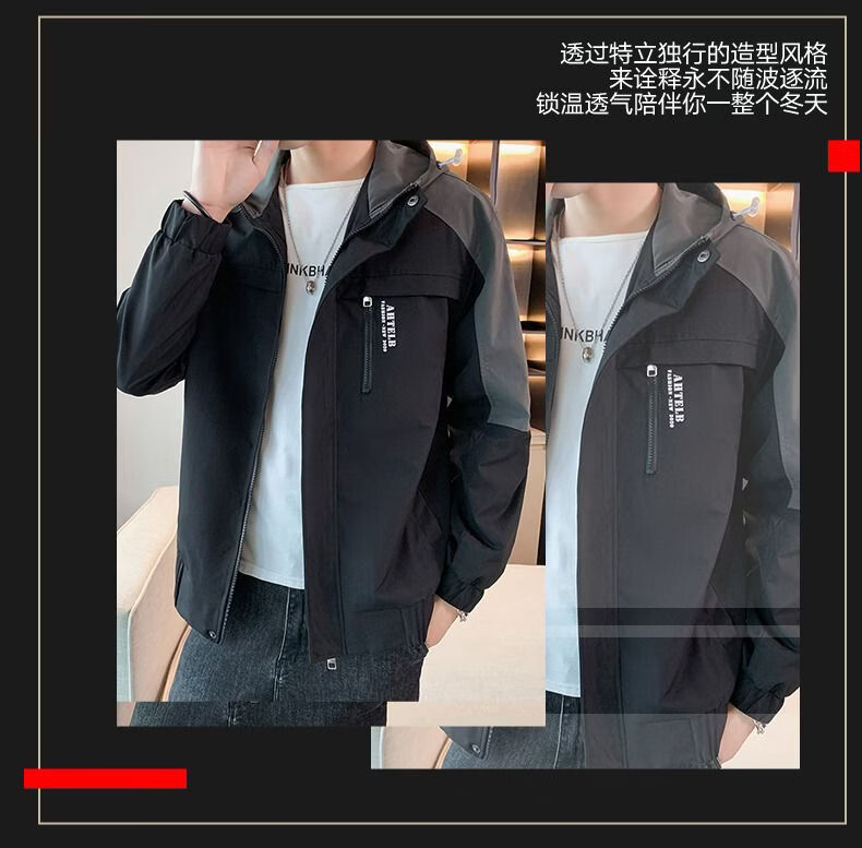 啄木鸟外套男春秋新款休闲夹克男生连帽上衣男潮流拼接夹克衫男衣服 黑灰色 M