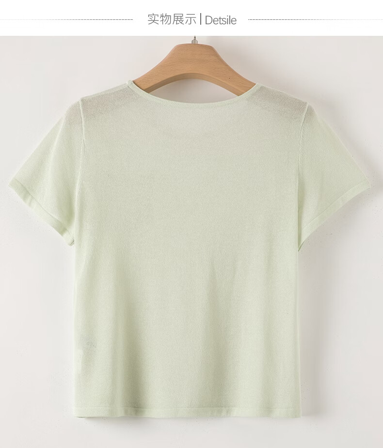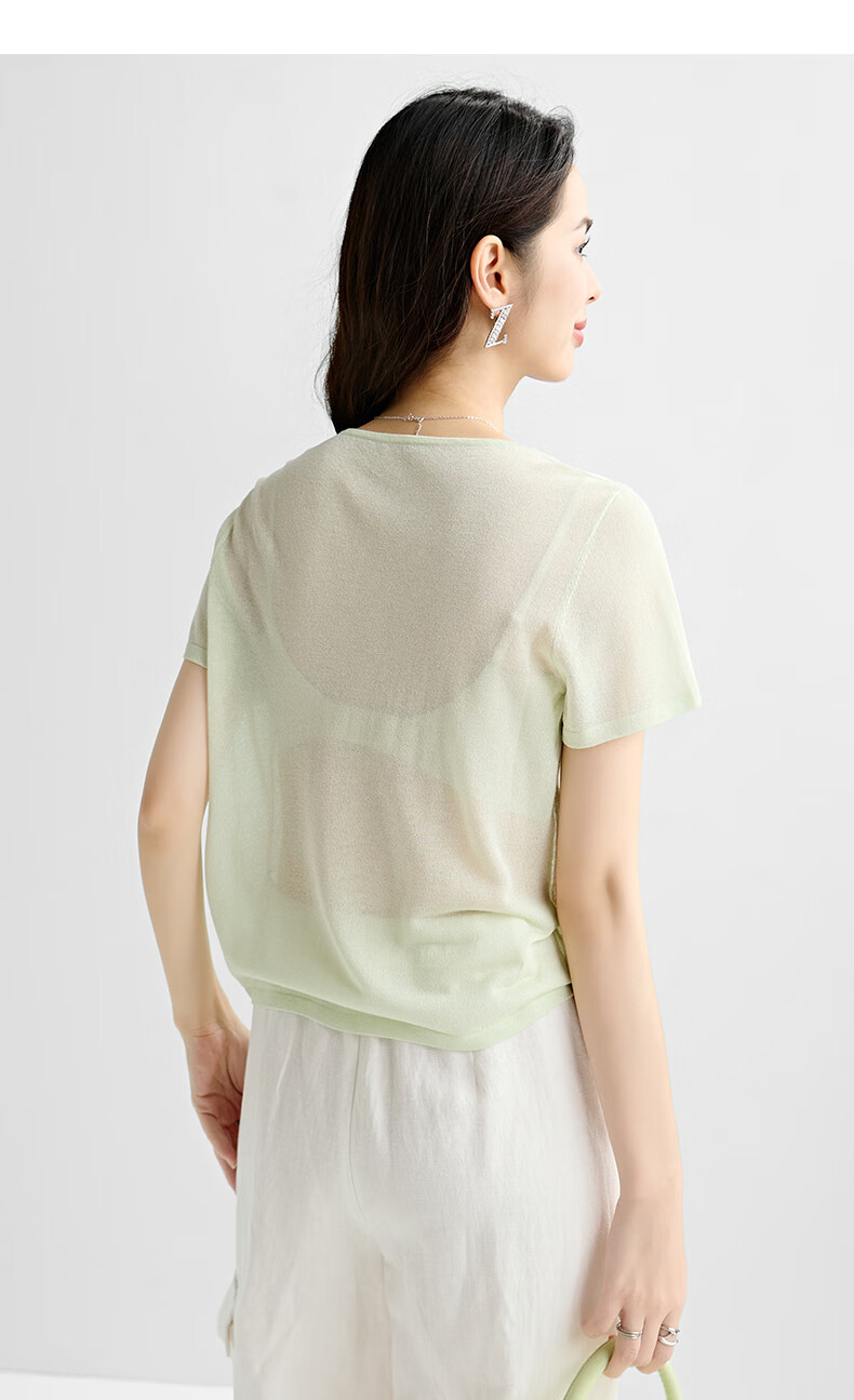 晚白【新品】2026年春款时尚圆领短袖轻薄透气日常休闲针织衫女 浅绿色 S