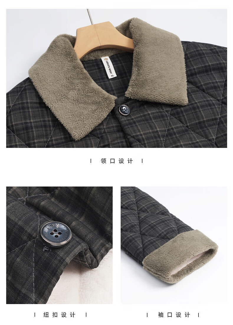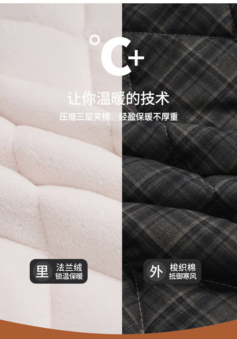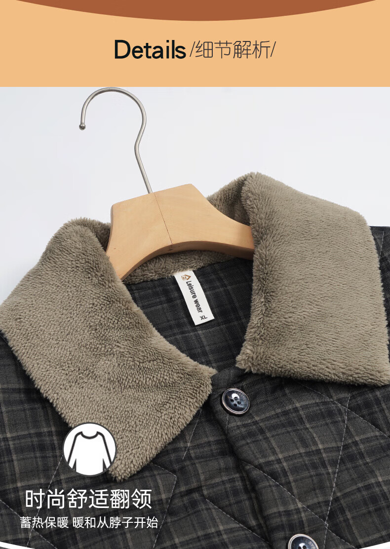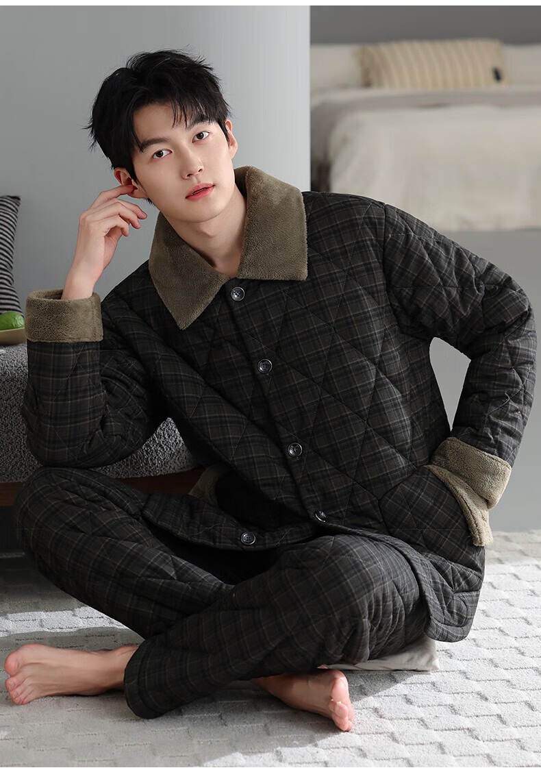 允织睡衣男士冬季三层加厚加绒梭织纯棉夹棉秋冬款珊瑚绒加大码家居服 68035-黑灰 L (170) :建议100-130斤穿着