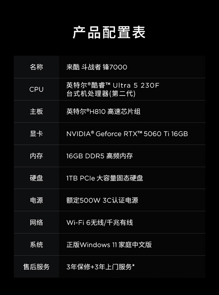 联想(Lenovo)来酷斗战者锋7000游戏主机台式电脑openclaw主机(U5-230F RTX5060TI 16G显卡 16G D5 1TB)国家补贴