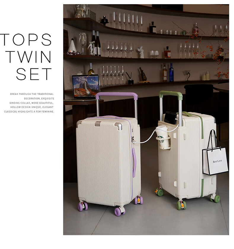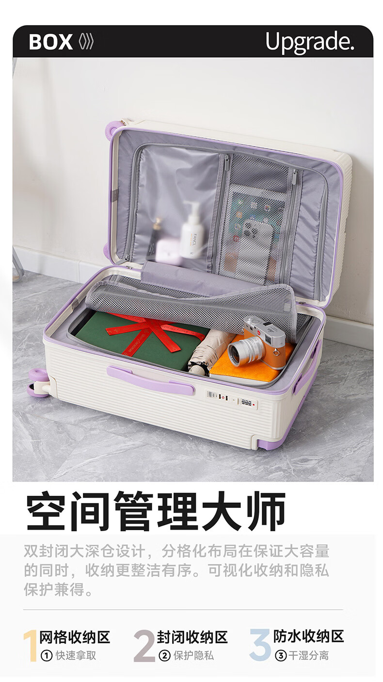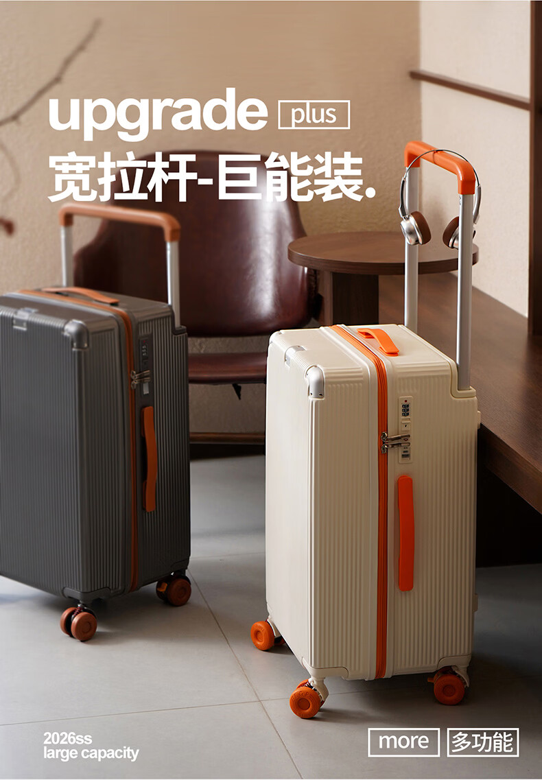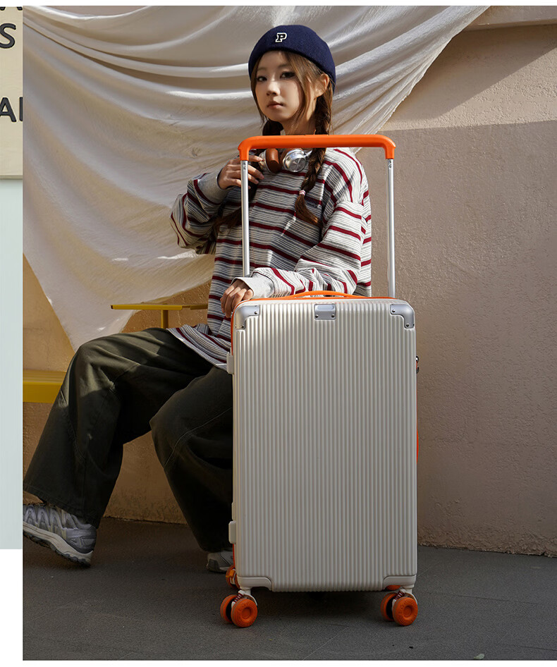 友胜保罗行李箱24寸材质万向轮耐磨旅行箱登机箱学生加厚拉杆箱干湿分离 落日橘 20英寸 【四轮五五开登机款】