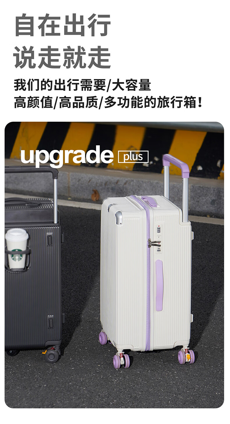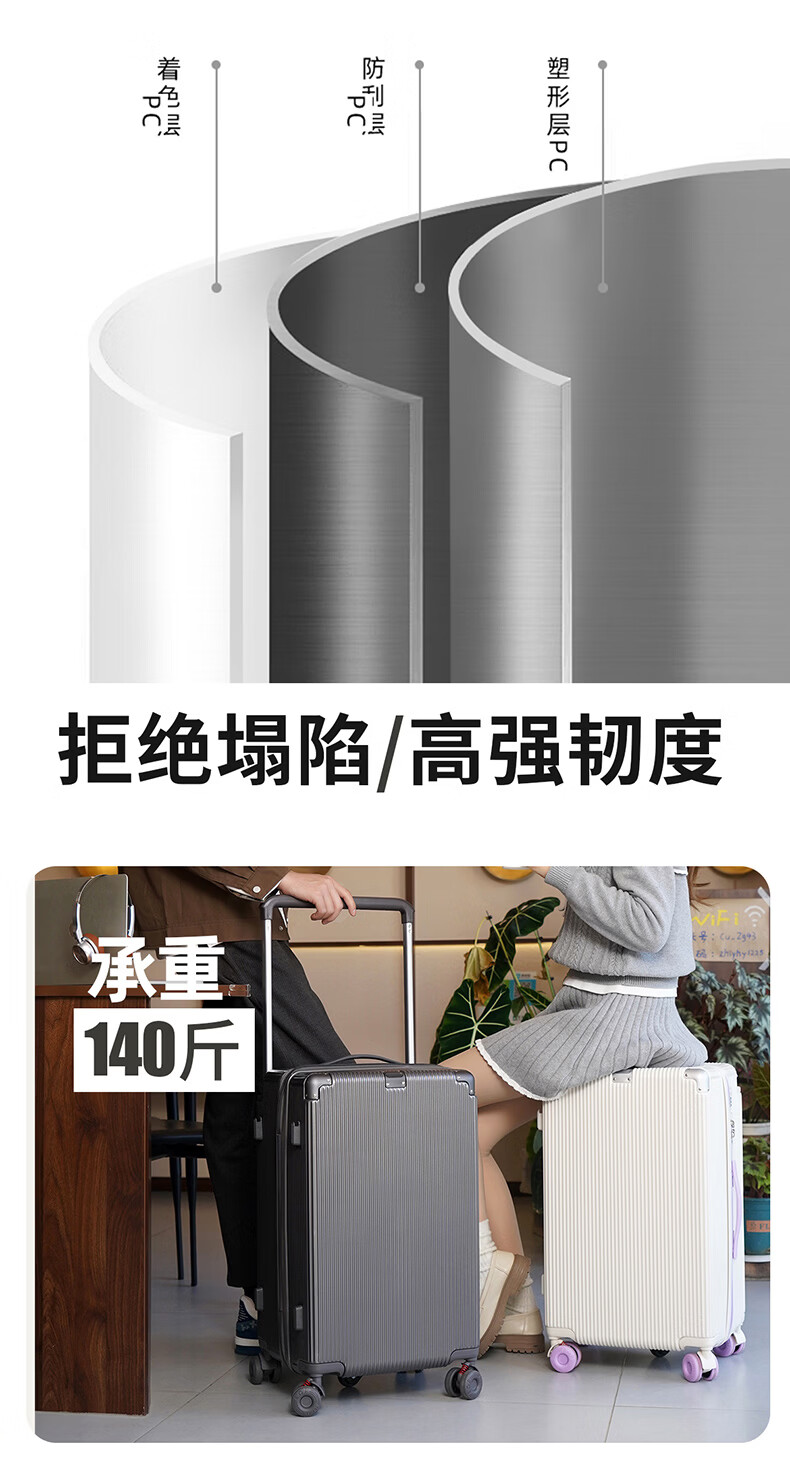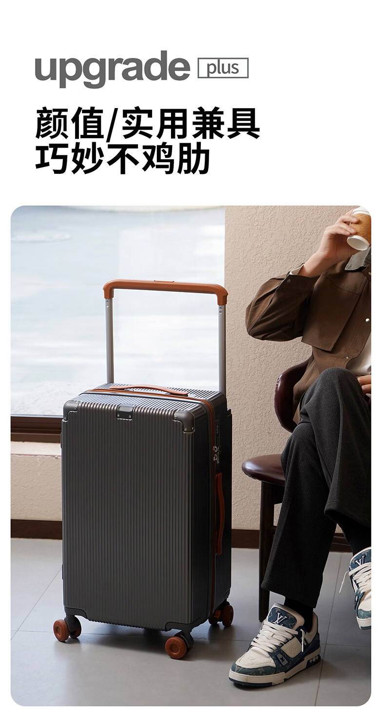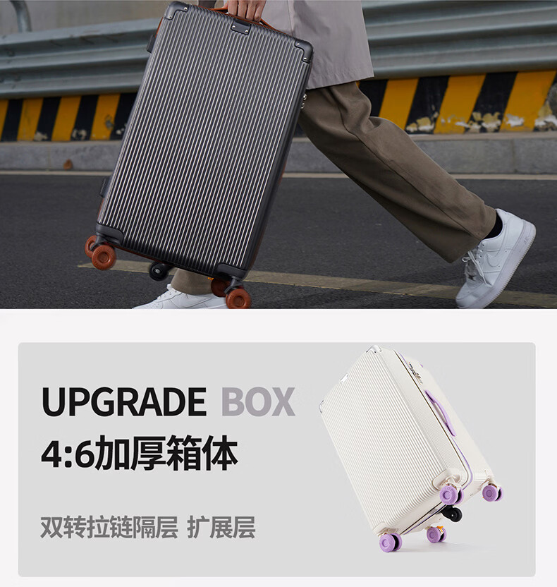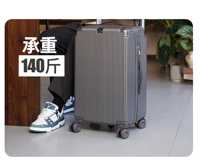 冇力新款行李箱铝框拉杆箱男女学生大容量密码箱高颜值旅行箱加厚皮箱 质感黑【加厚箱体+双密码锁扣】 30英寸 (超大容量出国搬家)