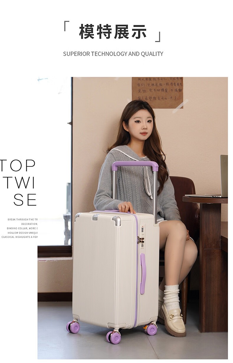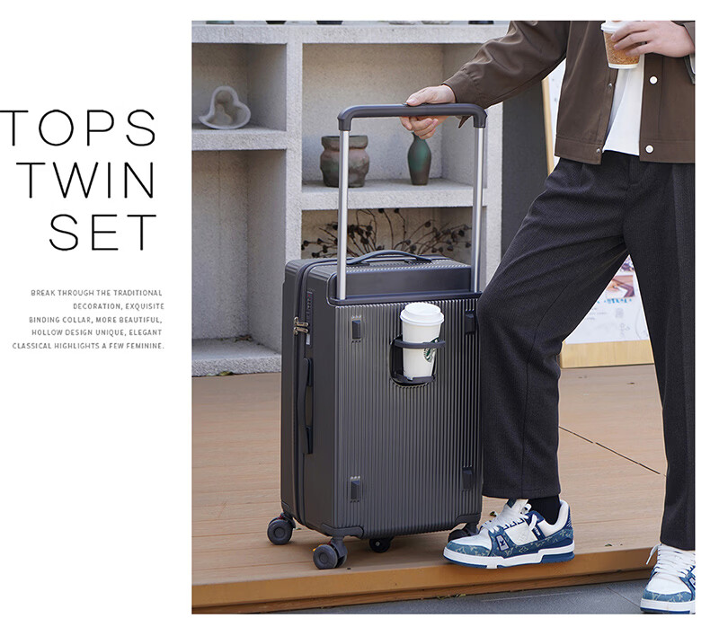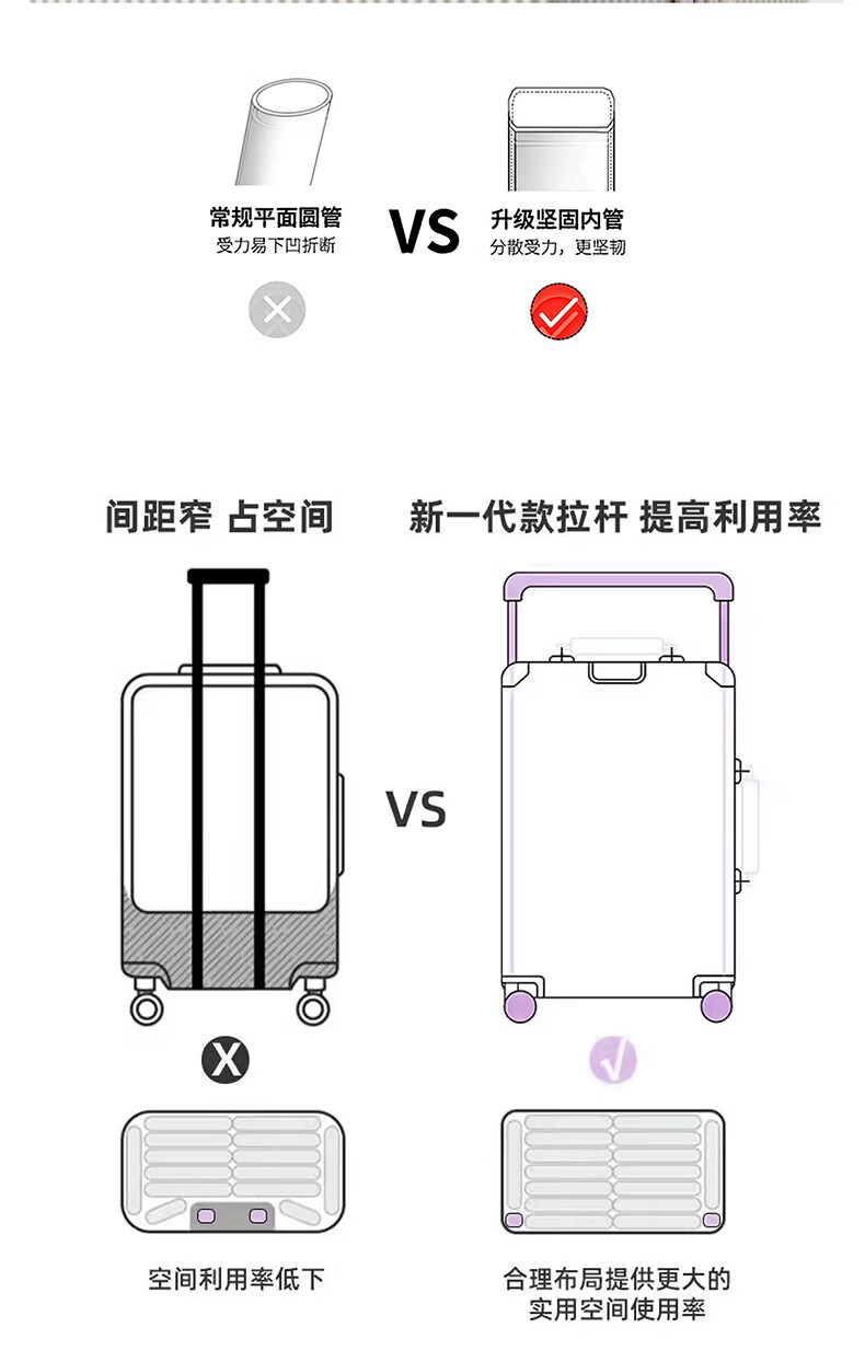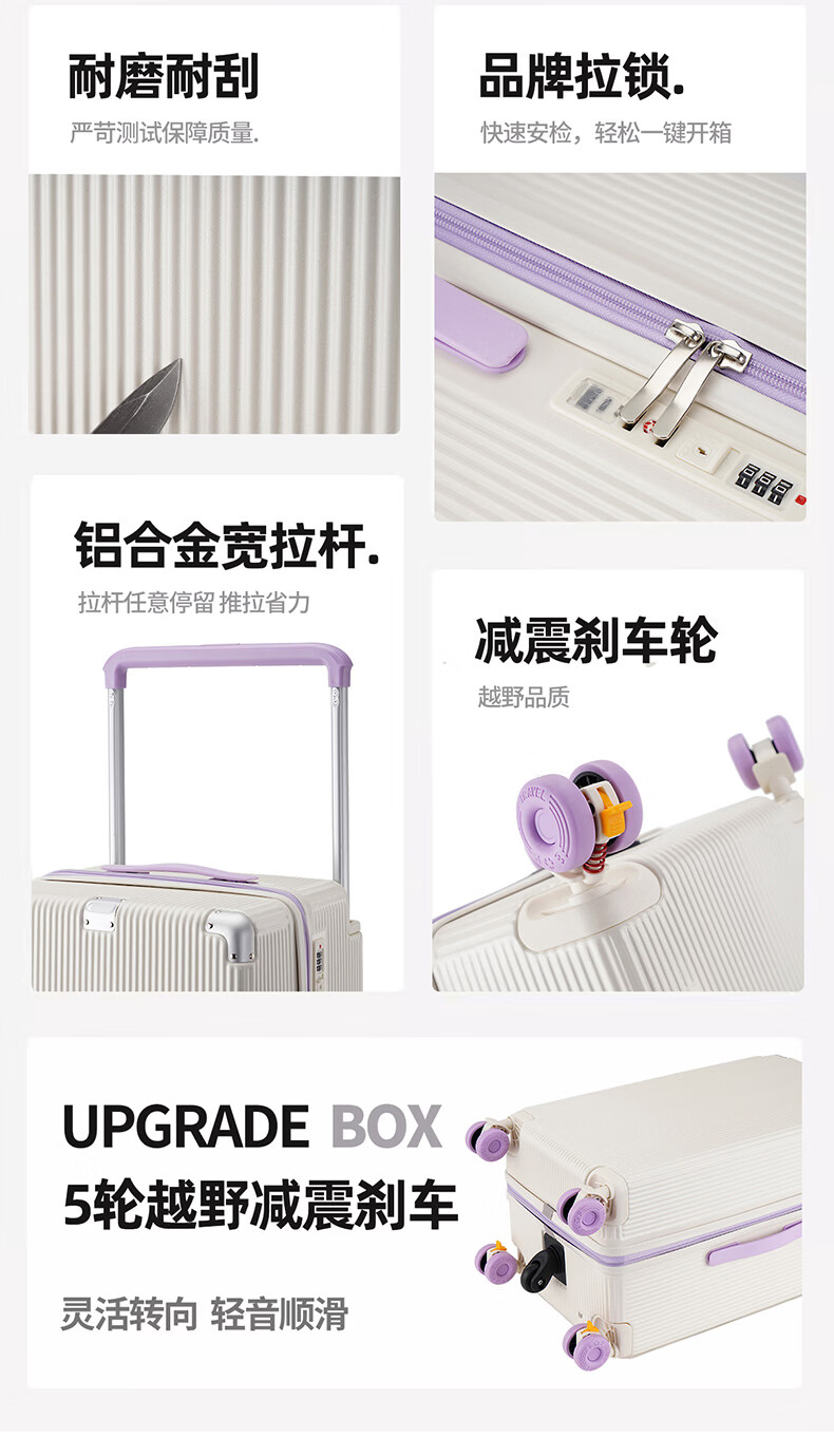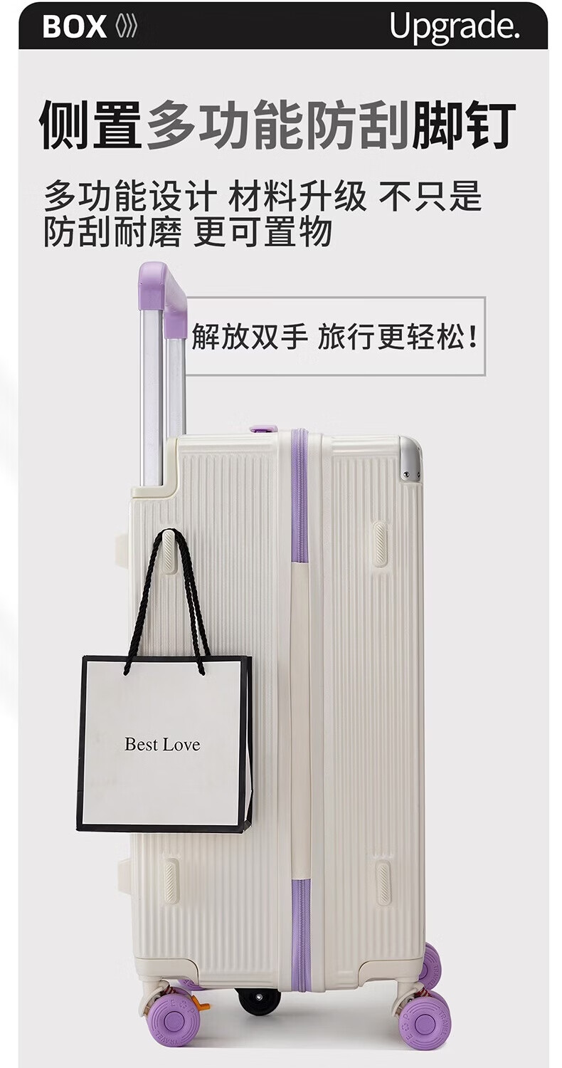 冇力新款行李箱铝框拉杆箱男女学生大容量密码箱高颜值旅行箱加厚皮箱 质感黑【加厚箱体+双密码锁扣】 30英寸 (超大容量出国搬家)