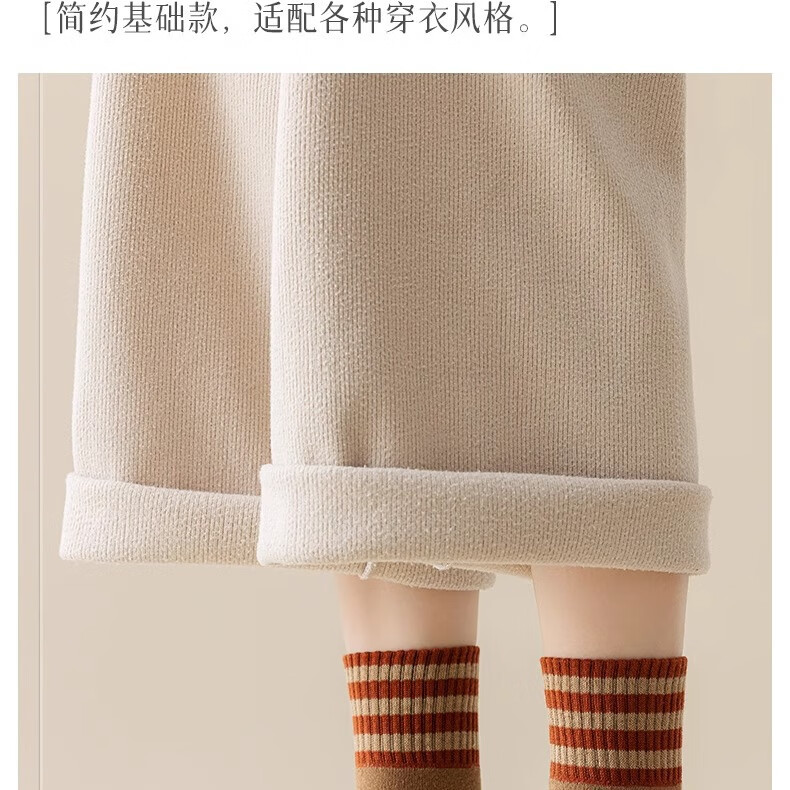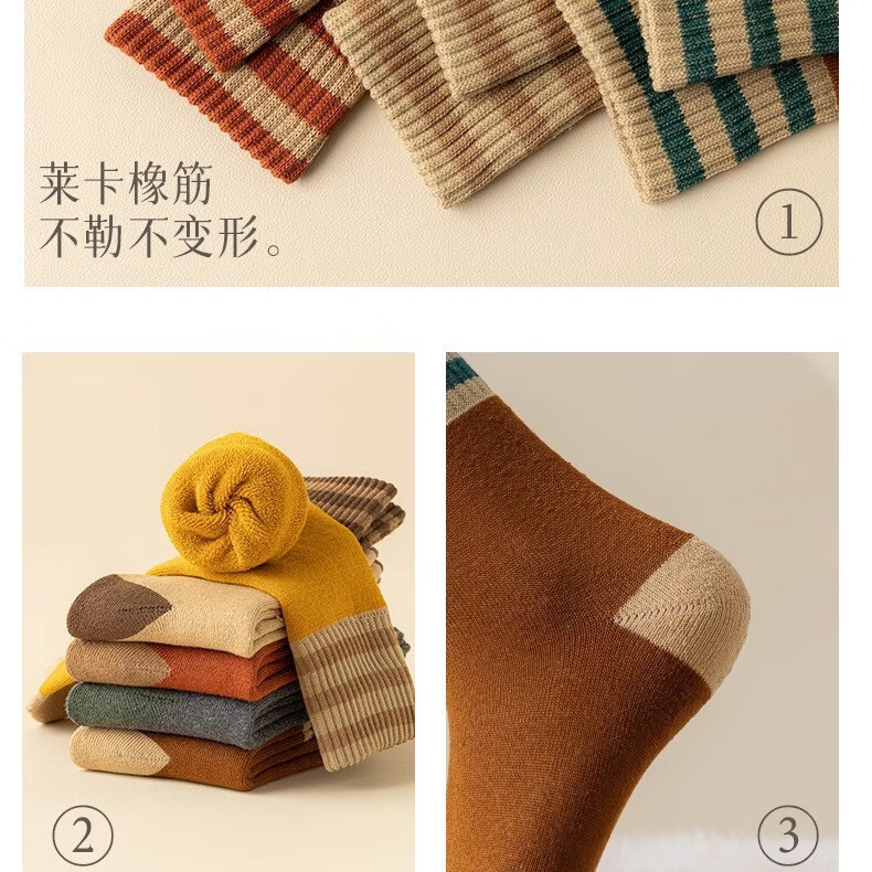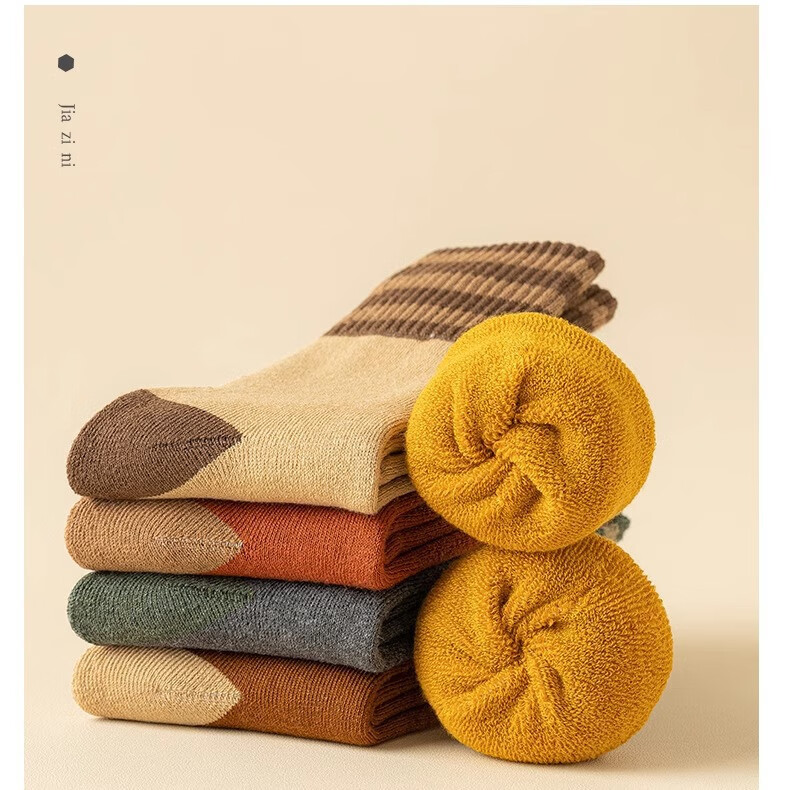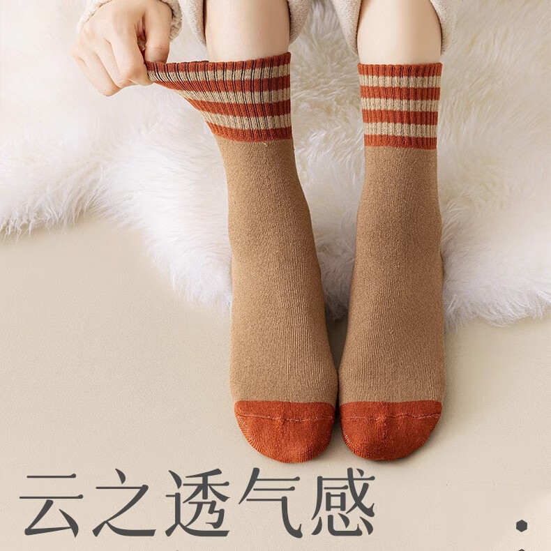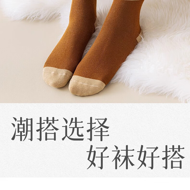 雅鹿袜子男女情侣袜中筒秋冬季加绒加厚底保暖毛圈袜潮流长冬天袜女士 颜色混搭 5双 均码