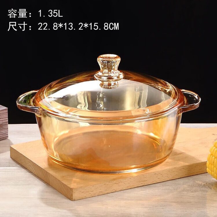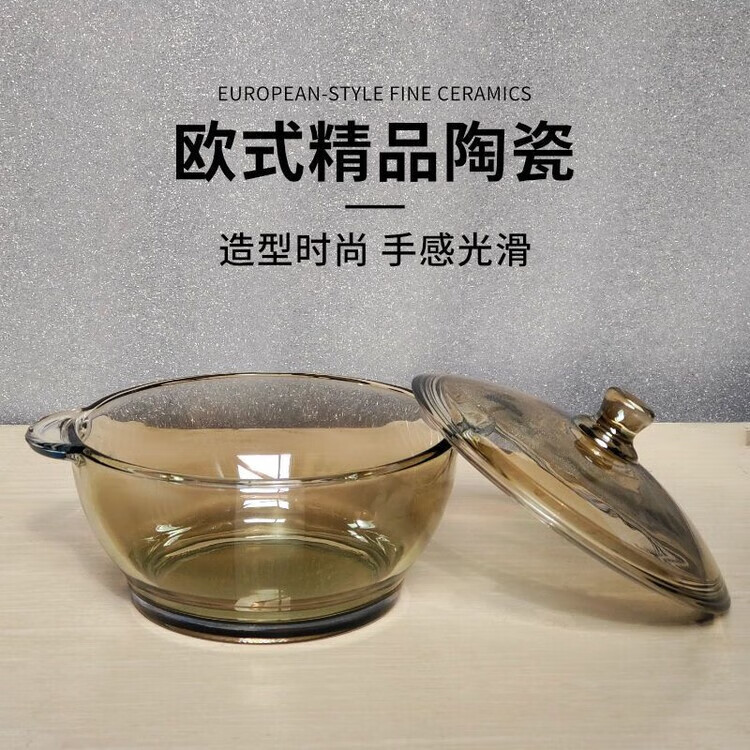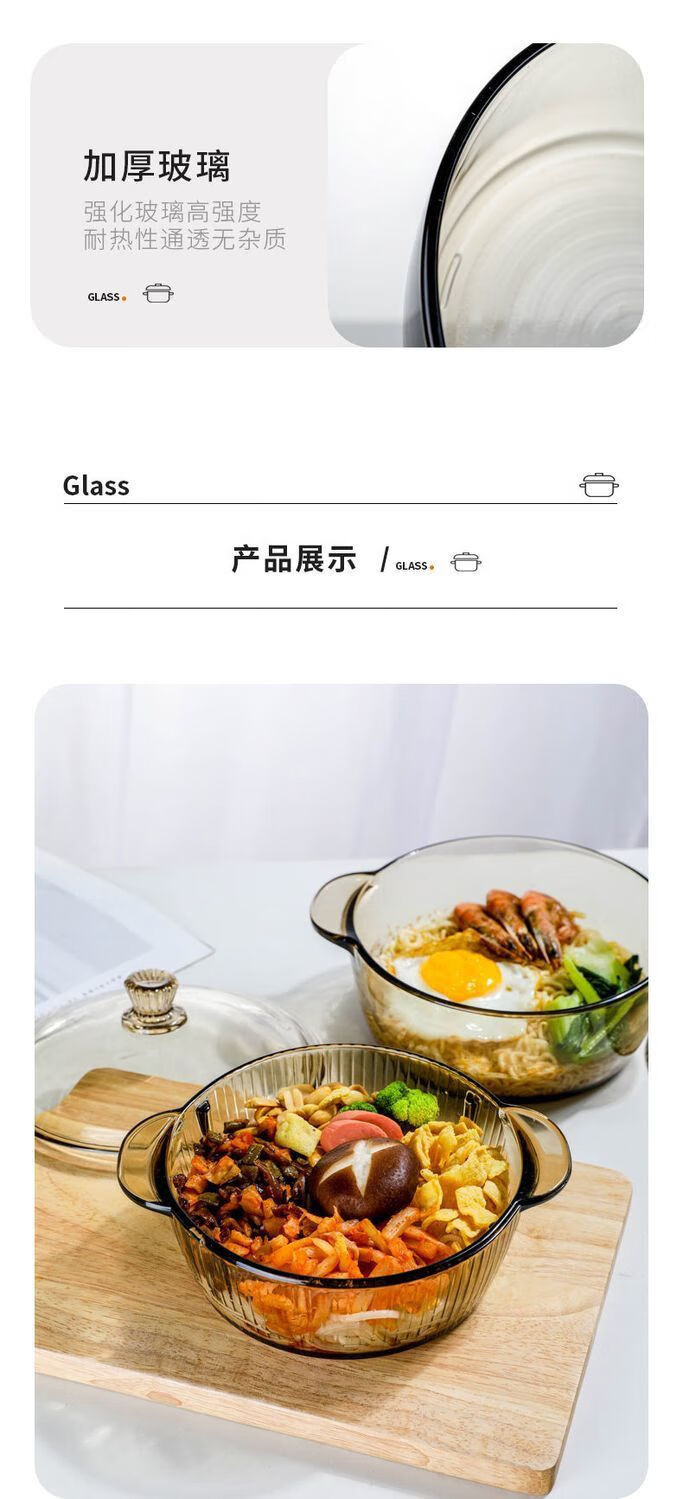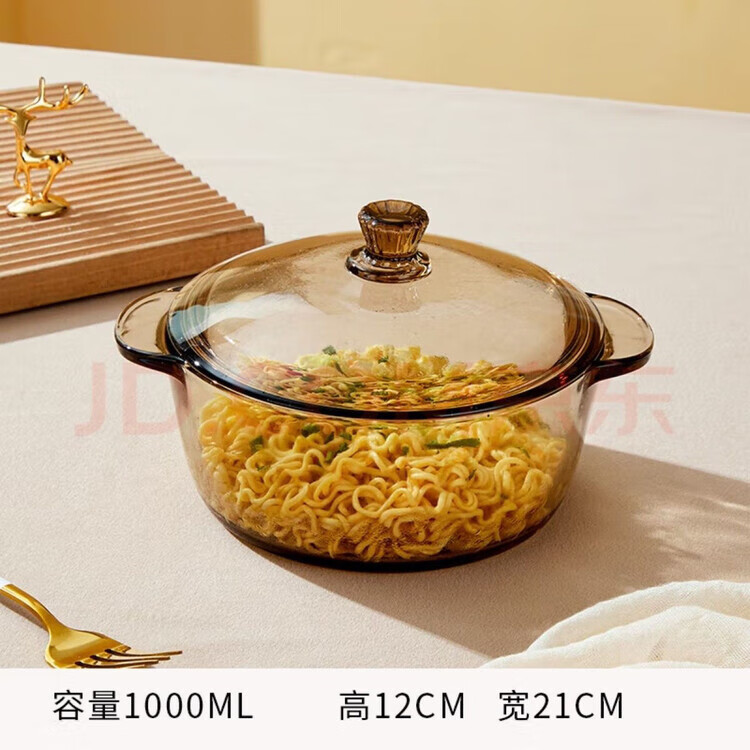 GIOIO食品级泡面碗带盖双耳碗高颜值网红玻璃碗玻璃碗带盖耐热家用茶色 1000ml泡面煲(不能明火)