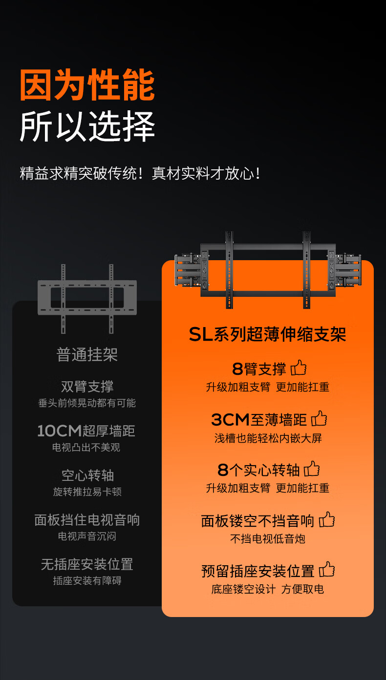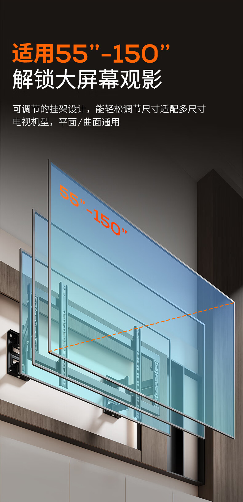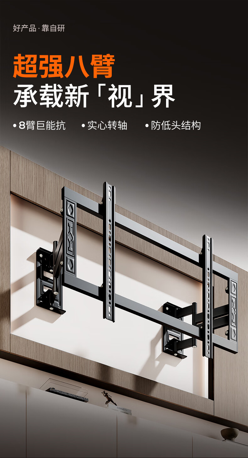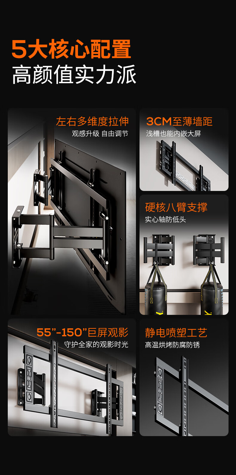 星凯仕电视挂架(50-150英寸)超薄大屏电视伸缩支架电视旋转支架可壁挂适用于小米海信电视85寸挂墙支架 六臂实心轴160斤承重【40-75英寸通用】