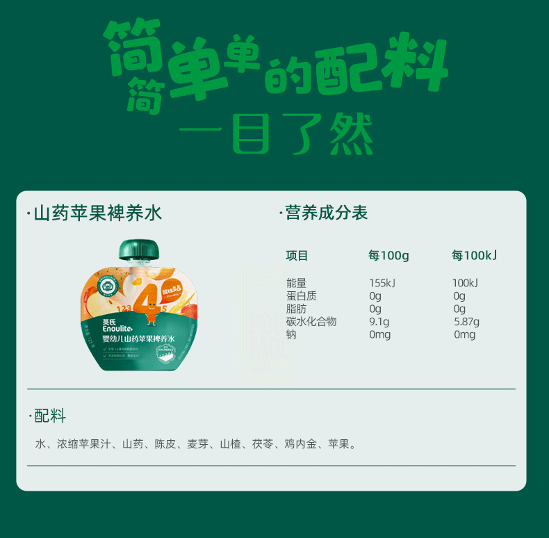 英氏(Engnice)山药苹果裨养水125g宝宝果汁婴儿辅食儿童饮料饮品小孩零食山楂汁