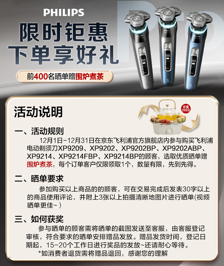 飞利浦(PHILIPS)电动剃须刀全新一代旋护式新9系pro -0.08mm皮下净剃刮胡刀 生日圣诞礼物送父亲男友老公国家补贴