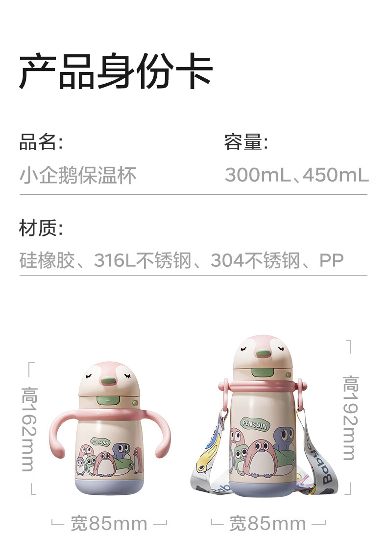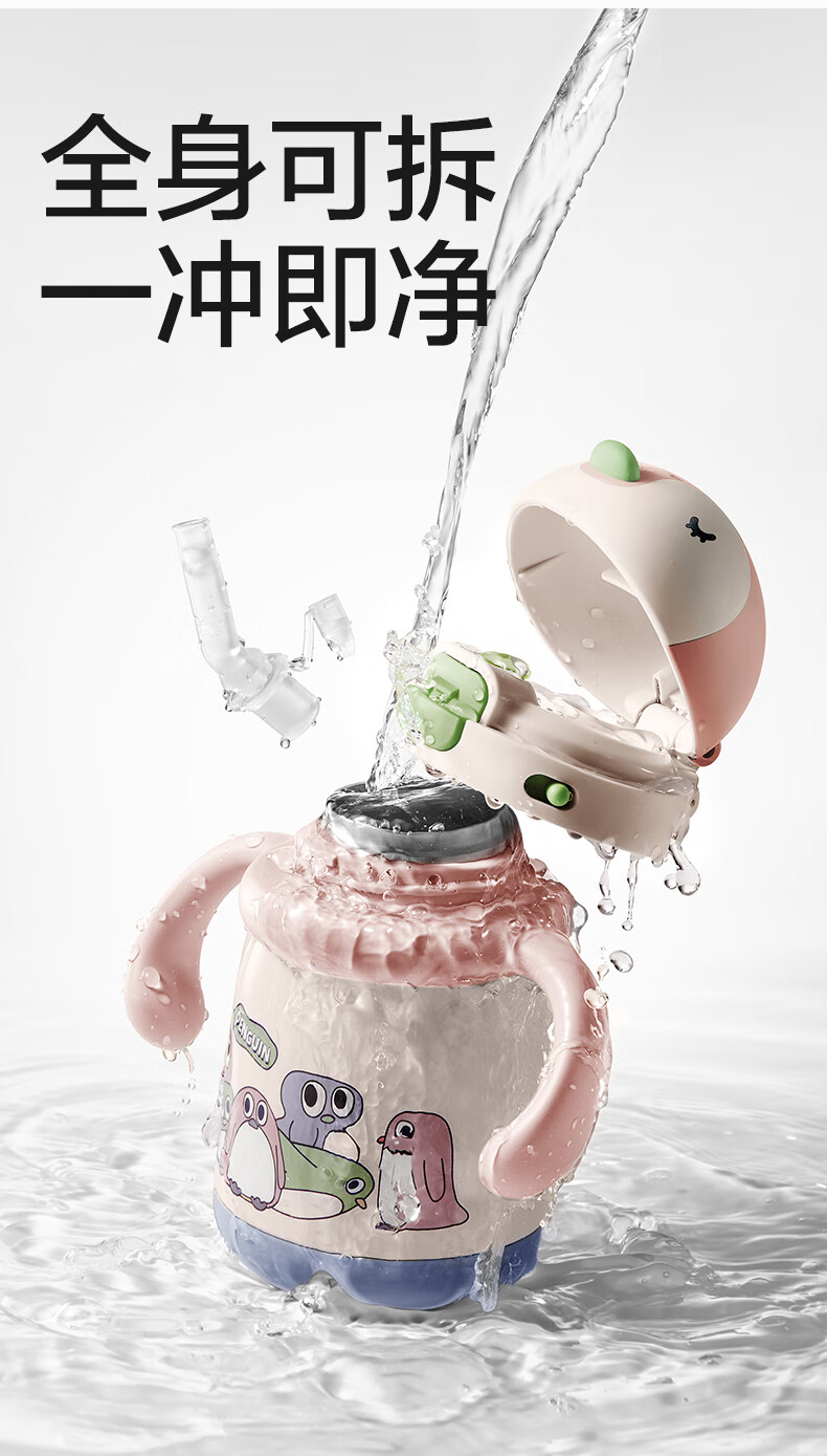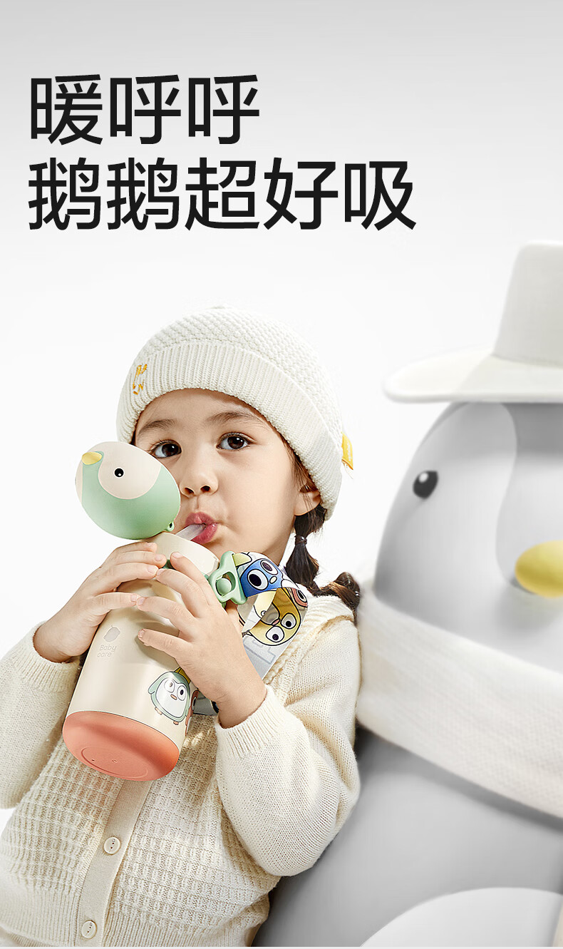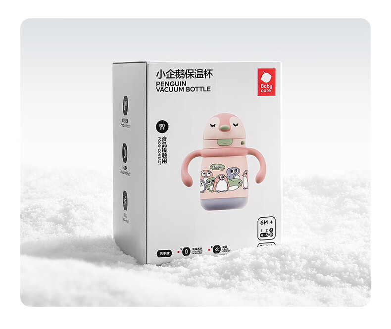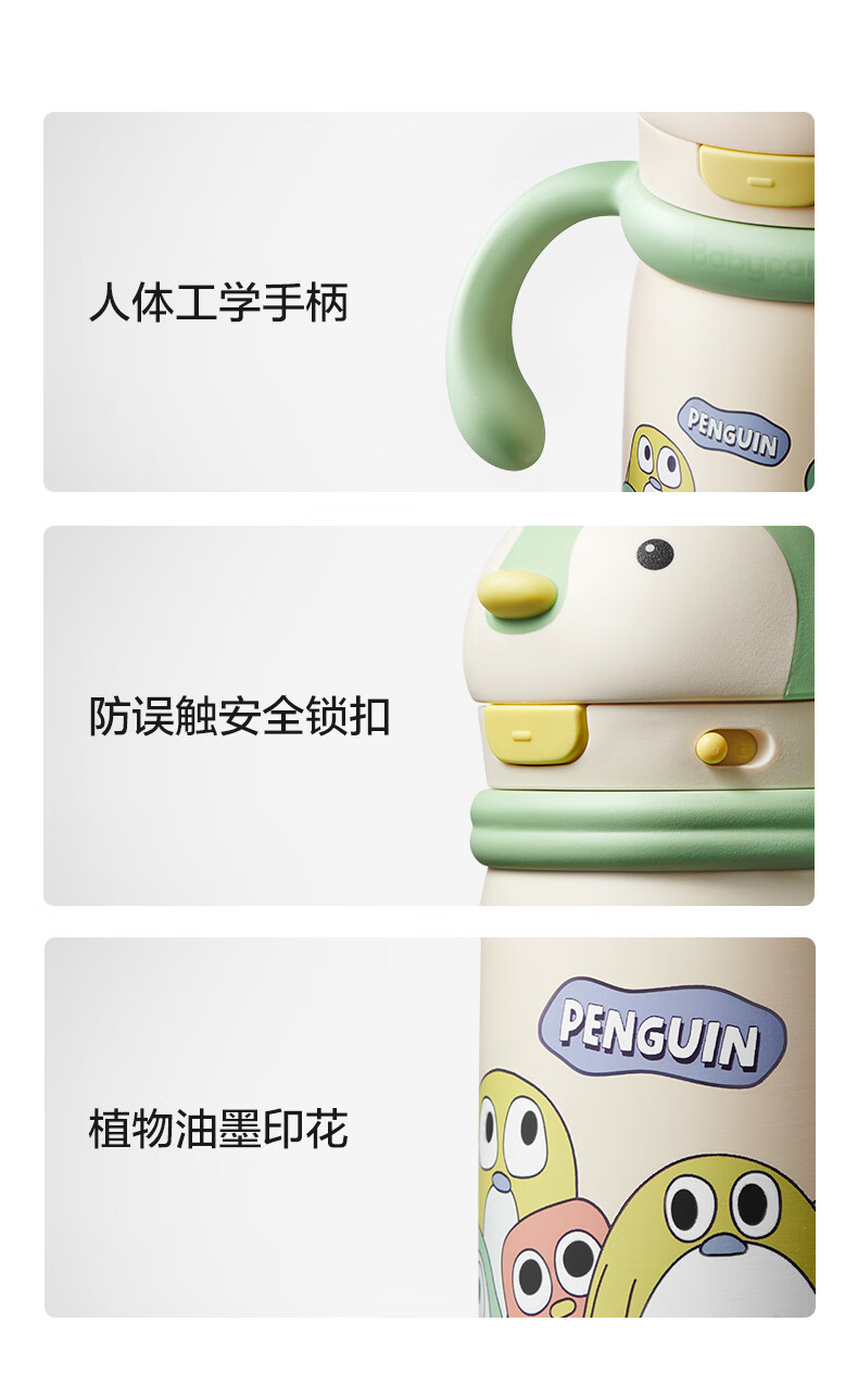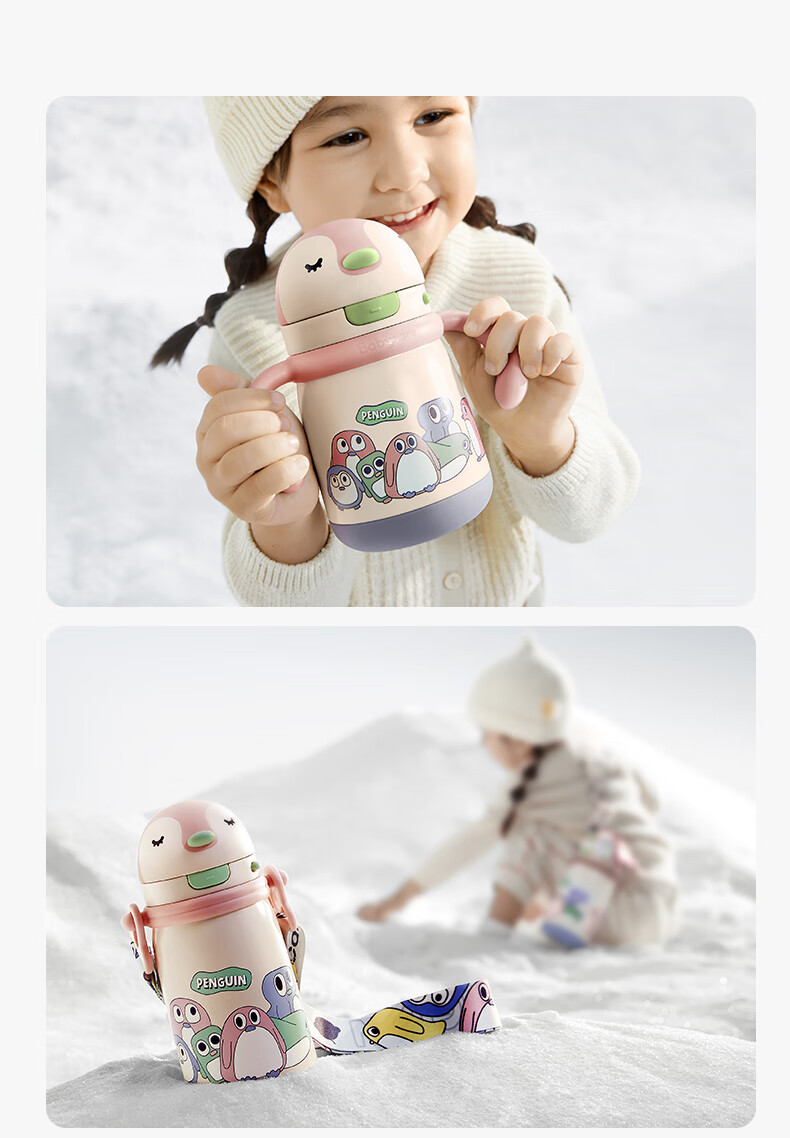 babycare小企鹅儿童保温杯婴幼儿宝宝保温奶瓶水壶学饮直饮吸管杯儿童1 赠直通吸嘴- 把手款莱莎粉 300ml