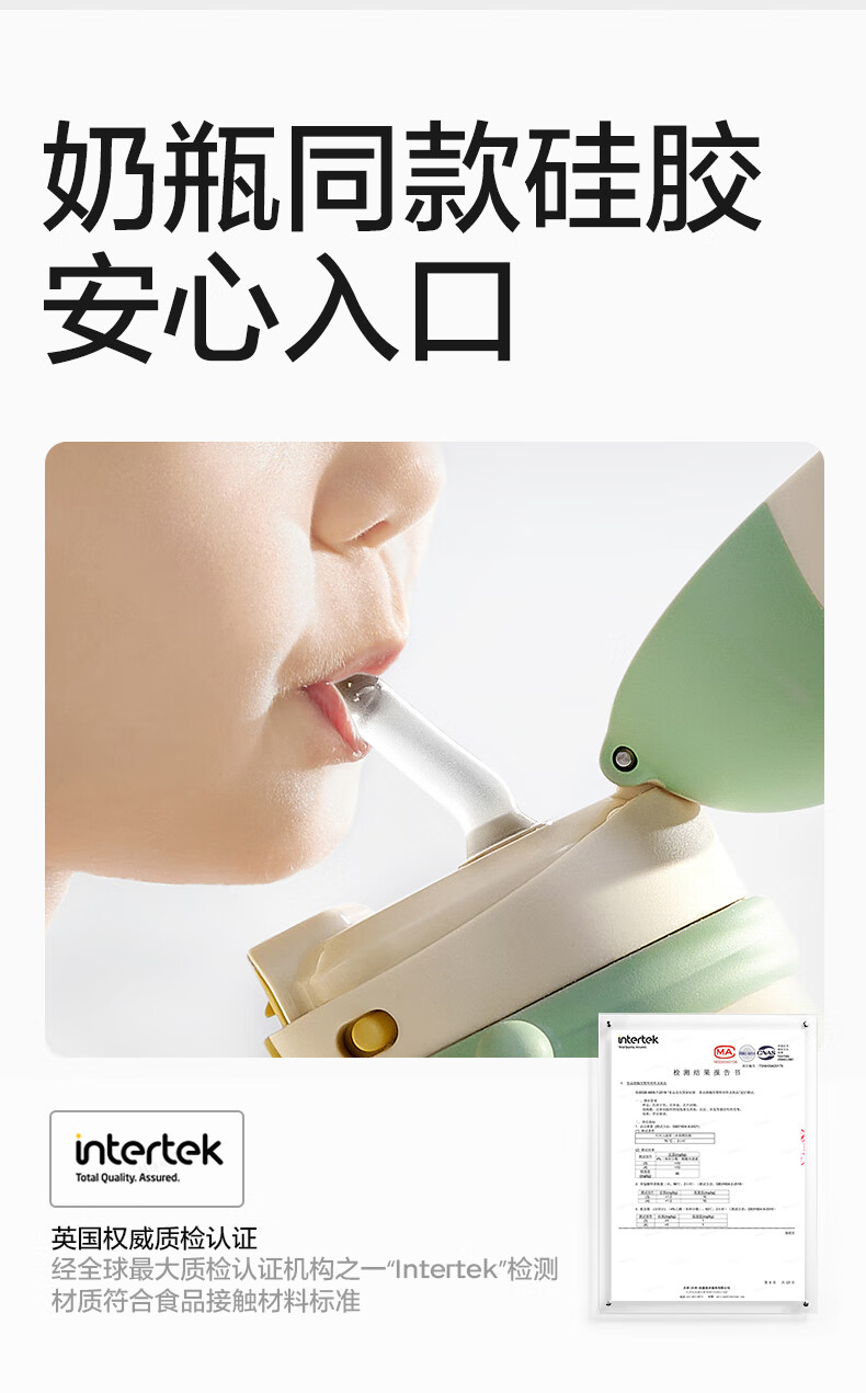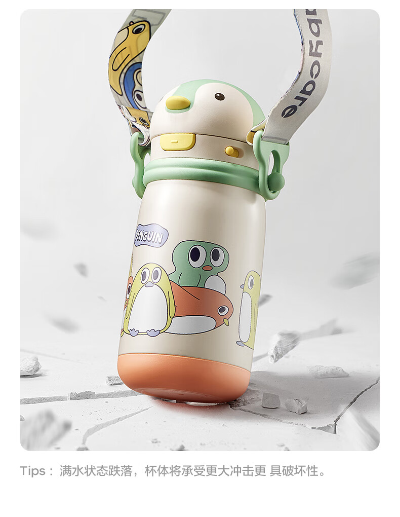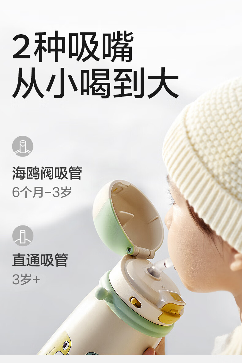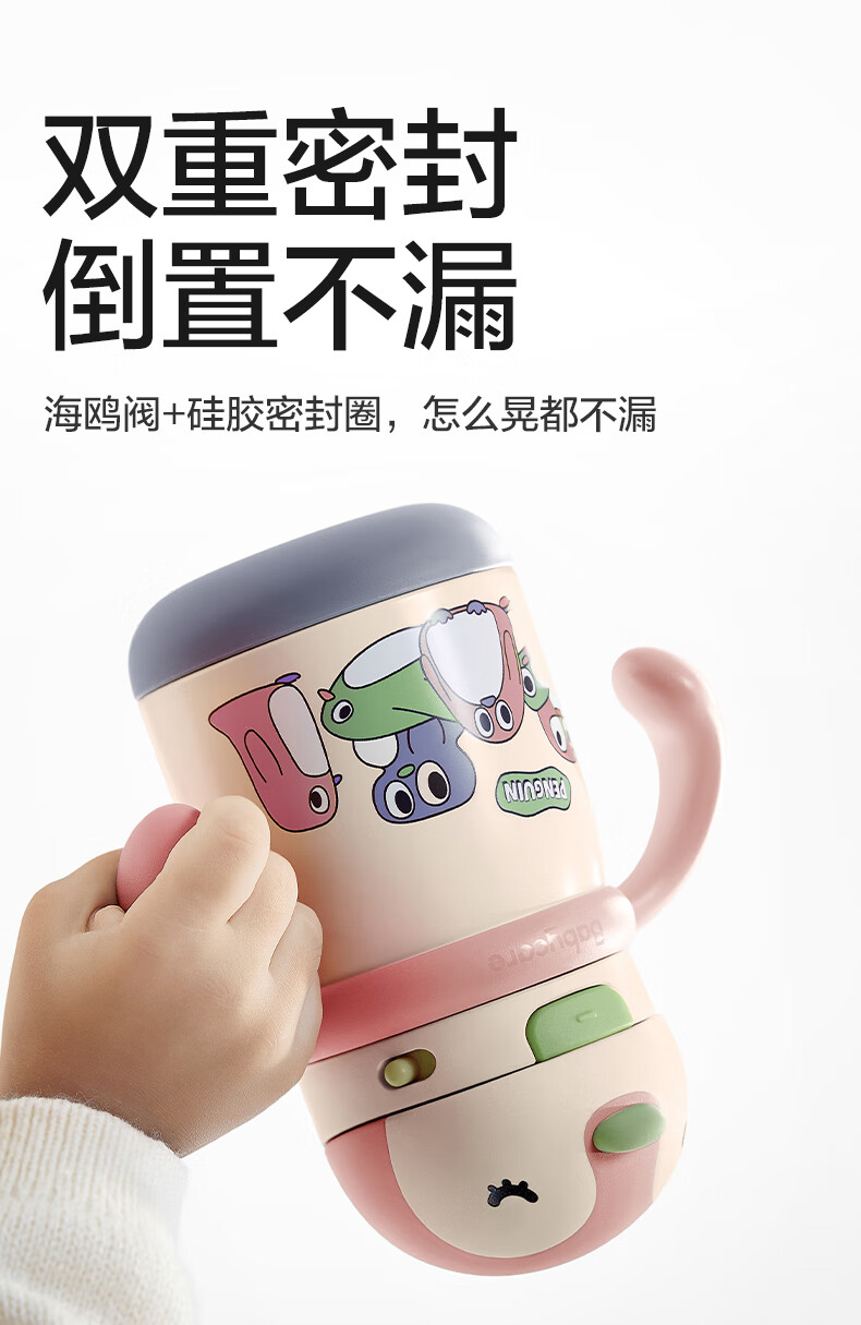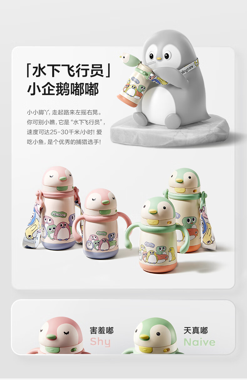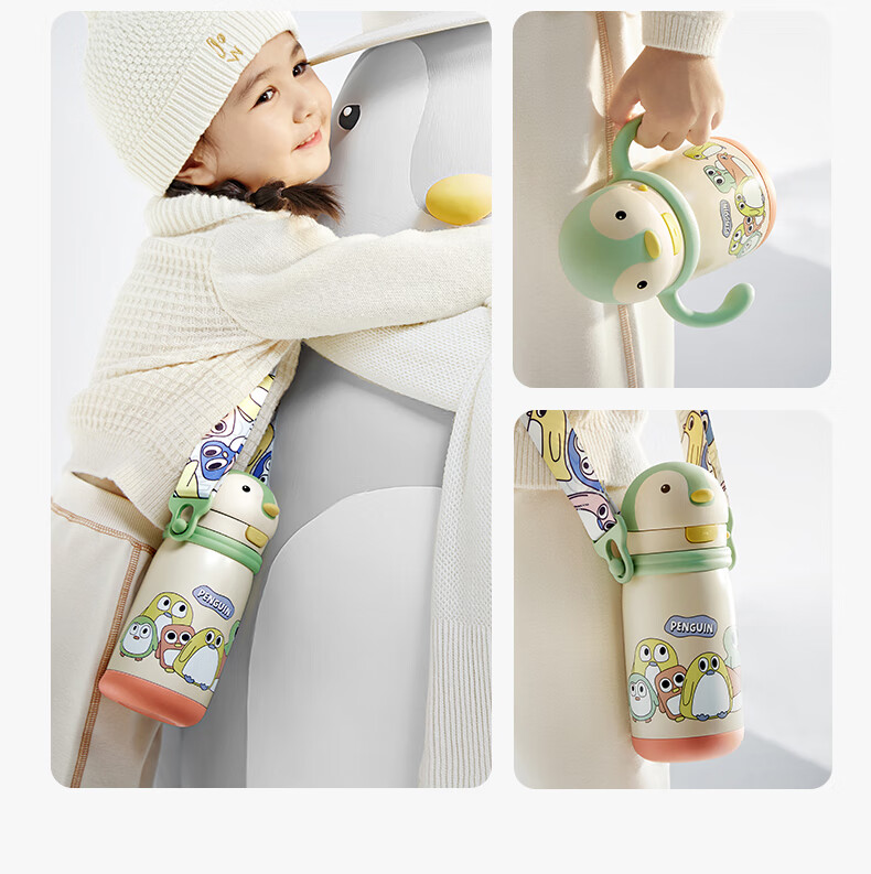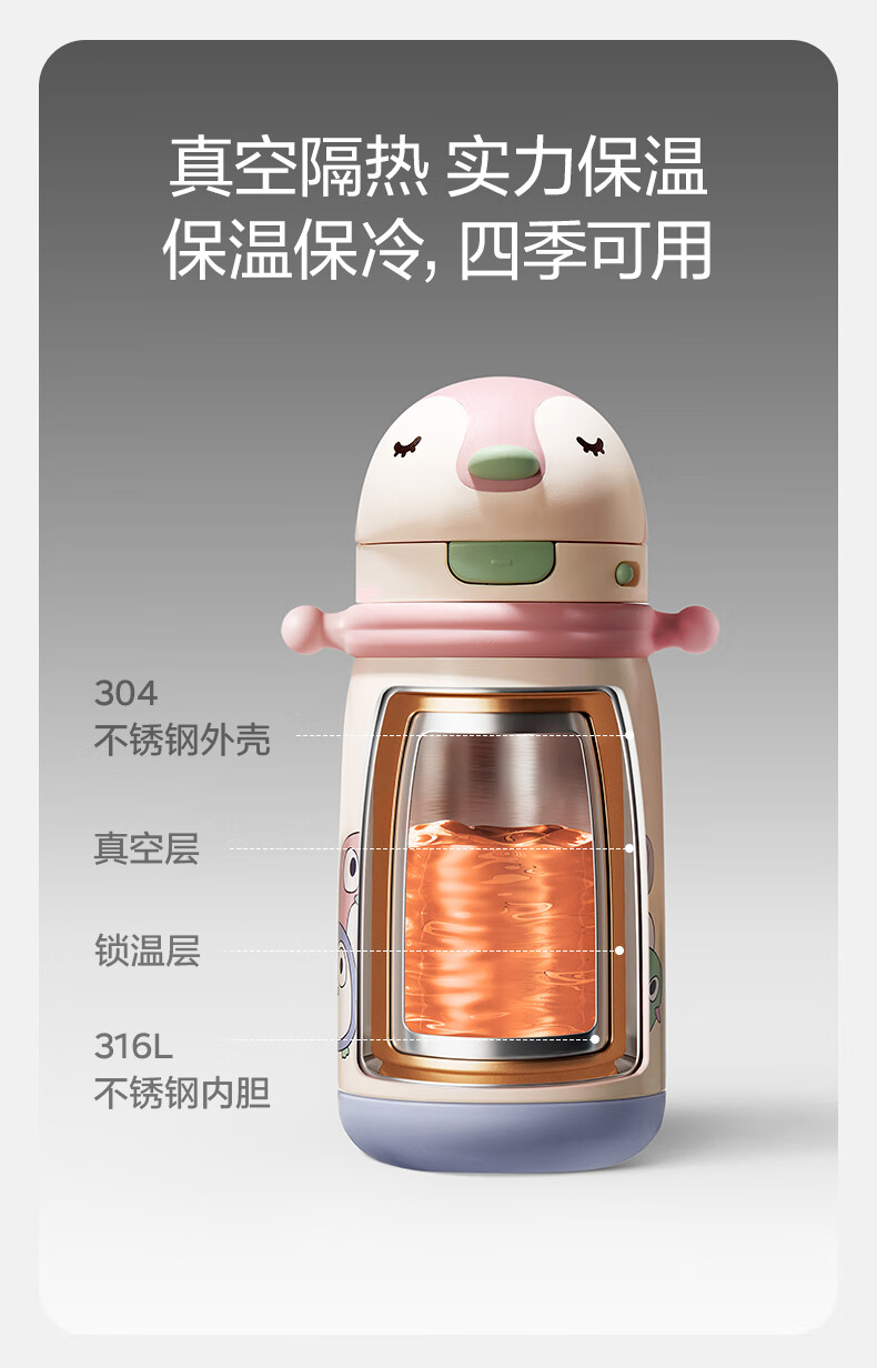 babycare小企鹅儿童保温杯婴幼儿宝宝保温奶瓶水壶学饮直饮吸管杯儿童1 赠直通吸嘴- 把手款莱莎粉 300ml