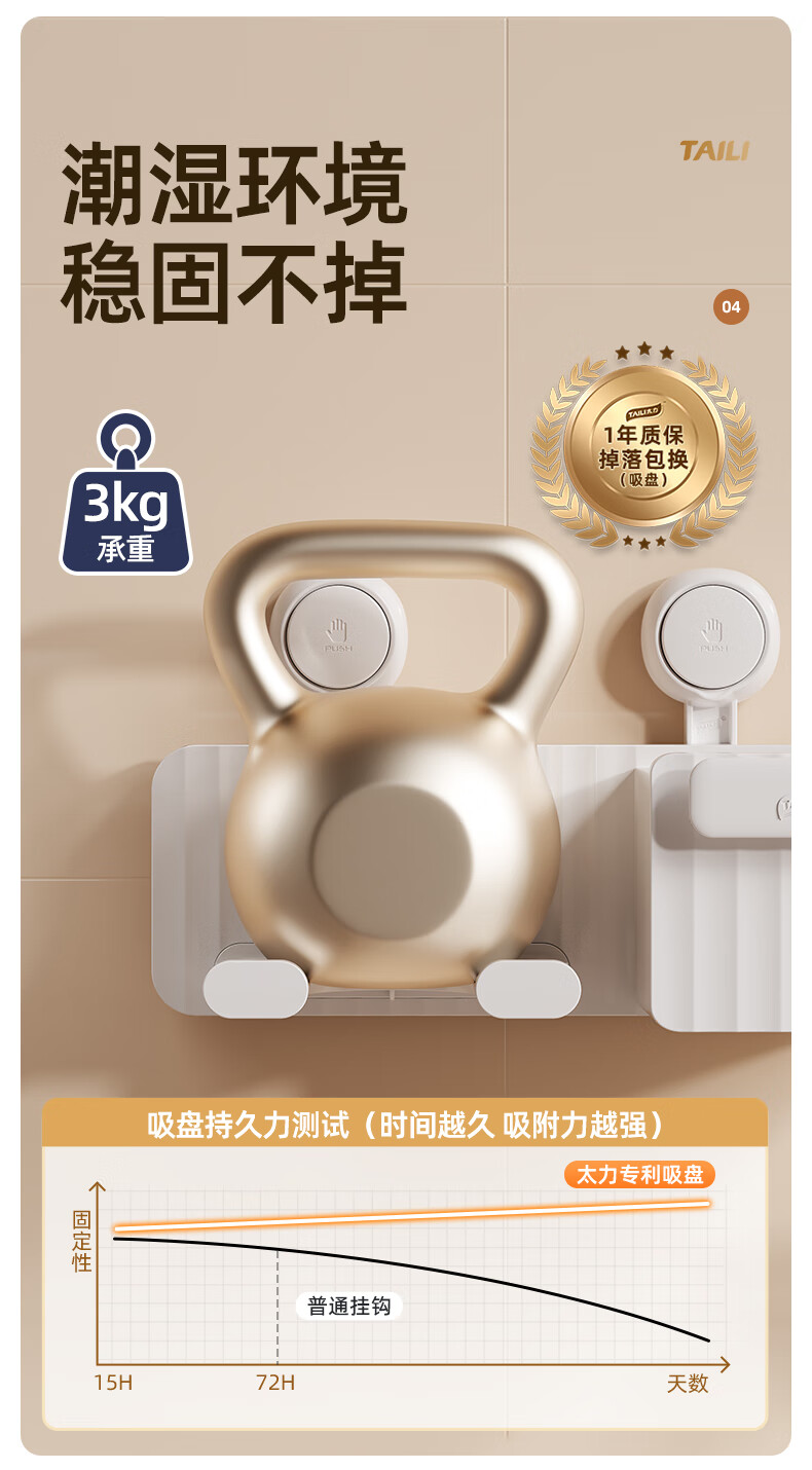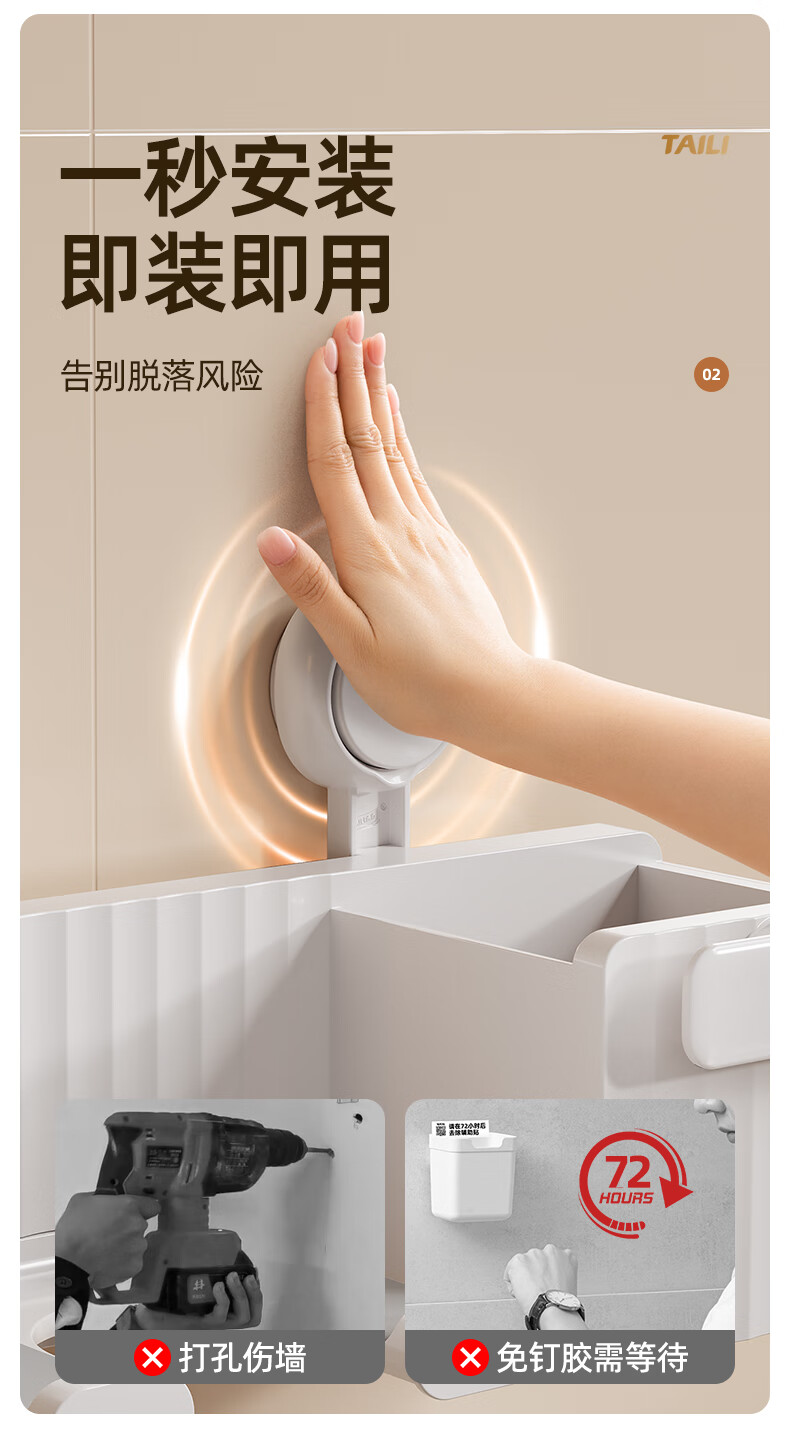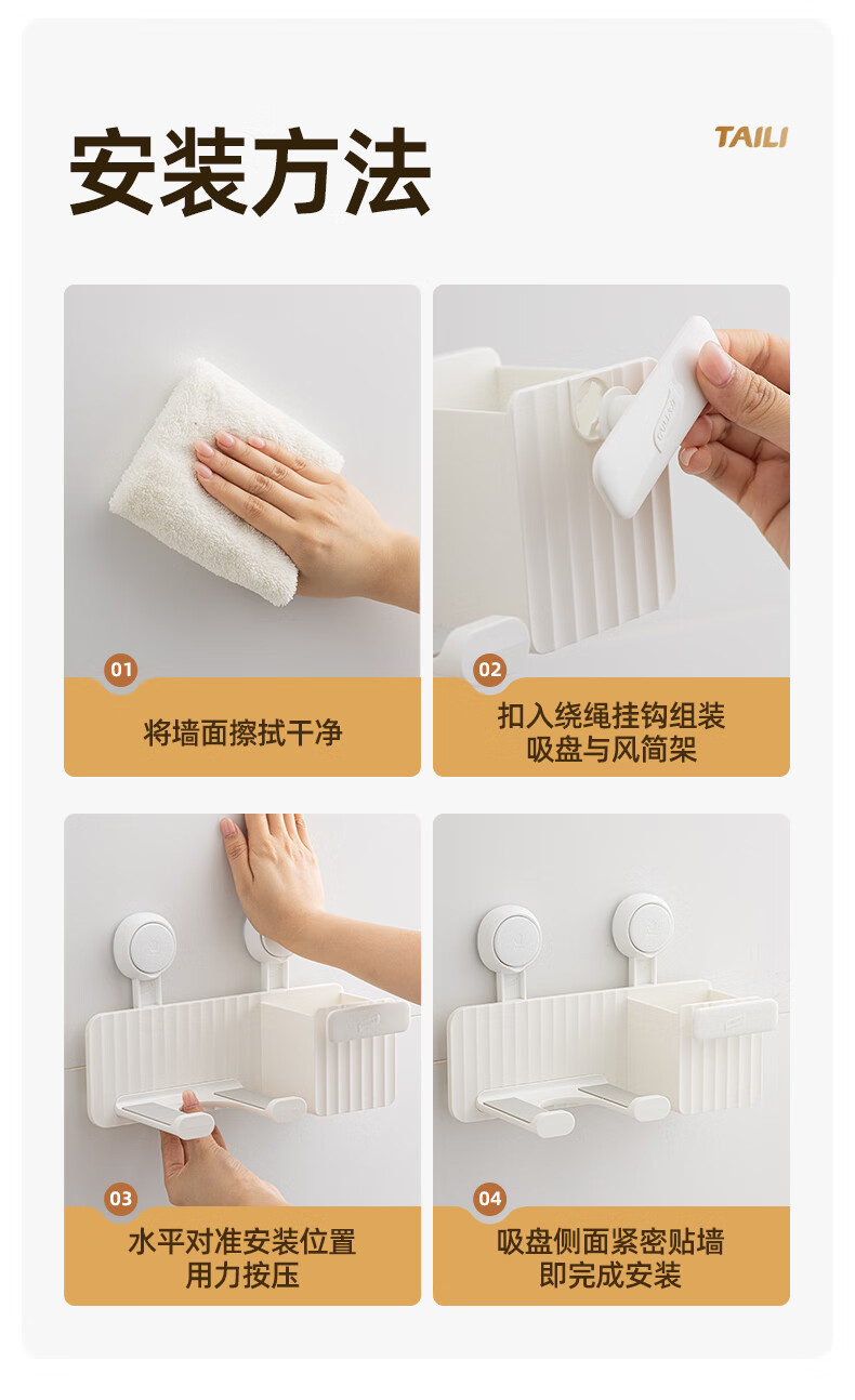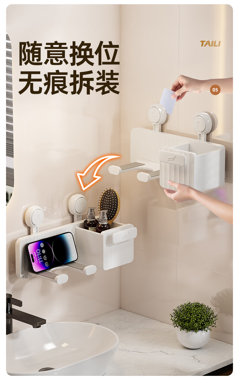 太力免打孔卫生间吹风机置物架浴室壁挂支架洗漱台挂架徕芬戴森通用 奶油白吸盘风筒架【带收纳筒】