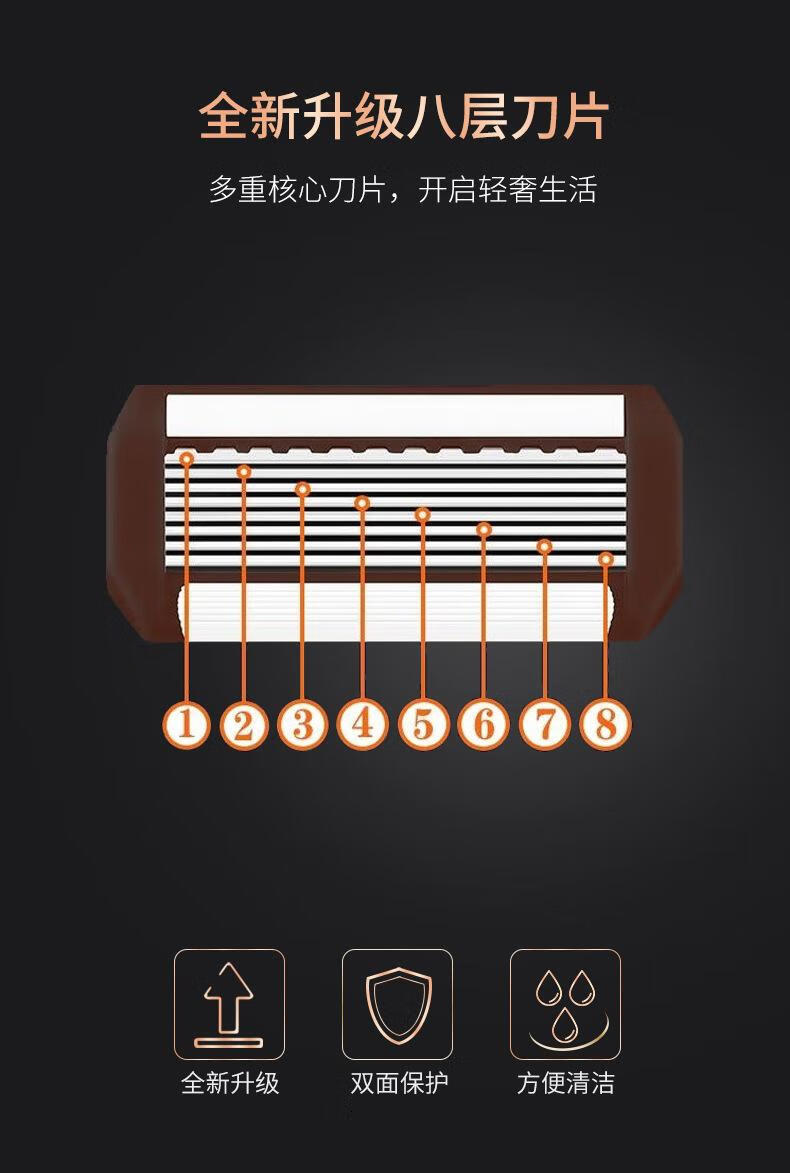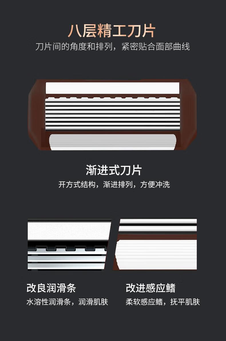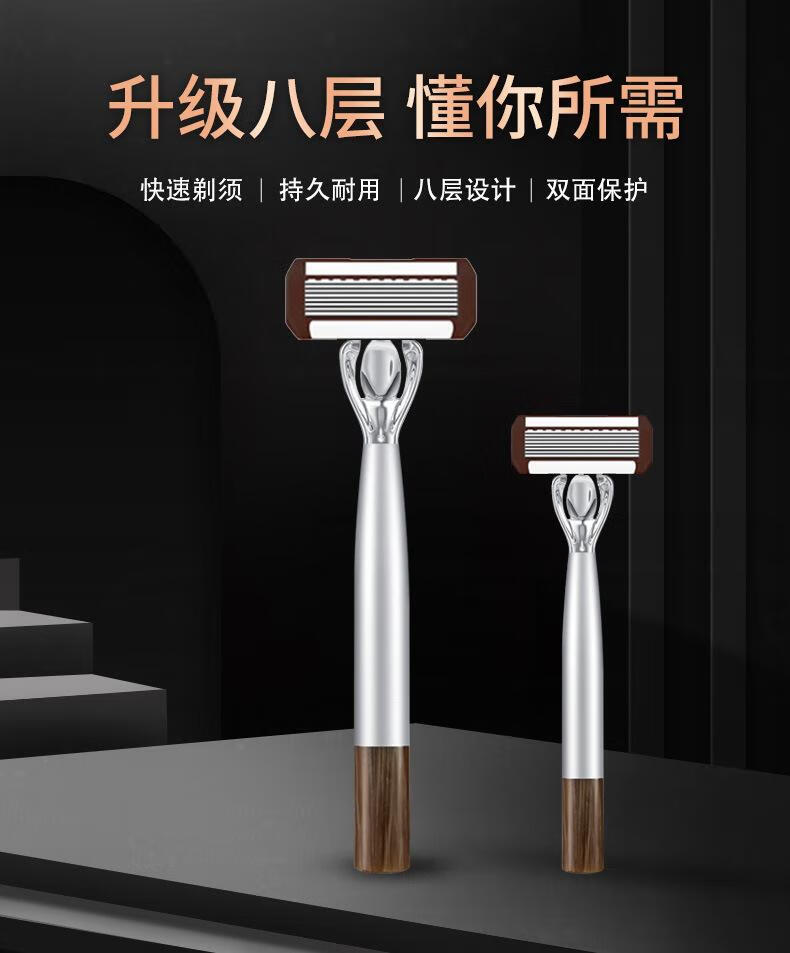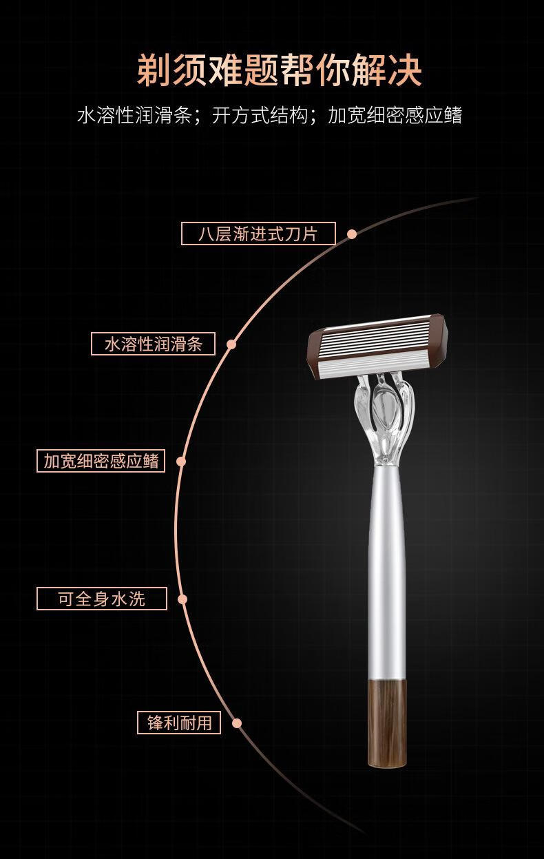 嘉之寇德国精工】八层刀片手动刮胡刀手动剃须刀不锈钢刀柄8层保护刀头 1手柄+12刀片+盒子+须膏+清洁刷