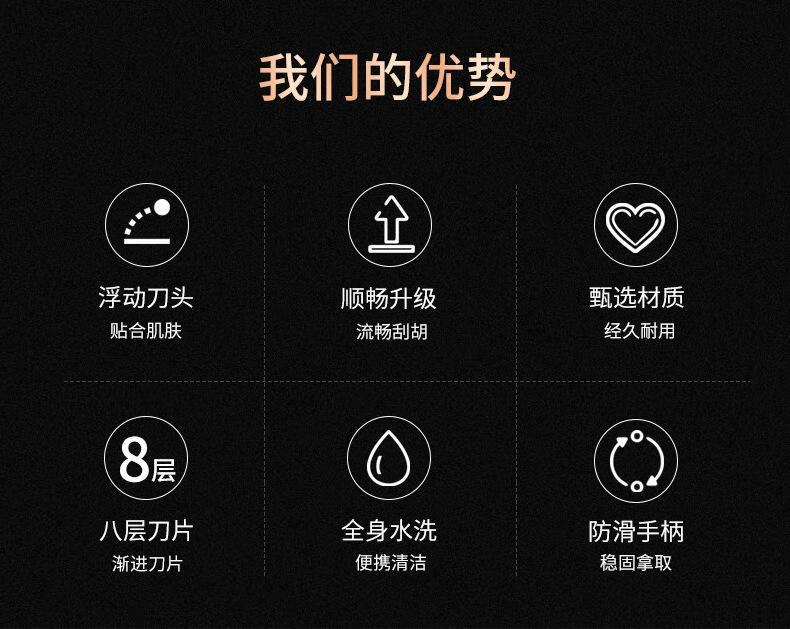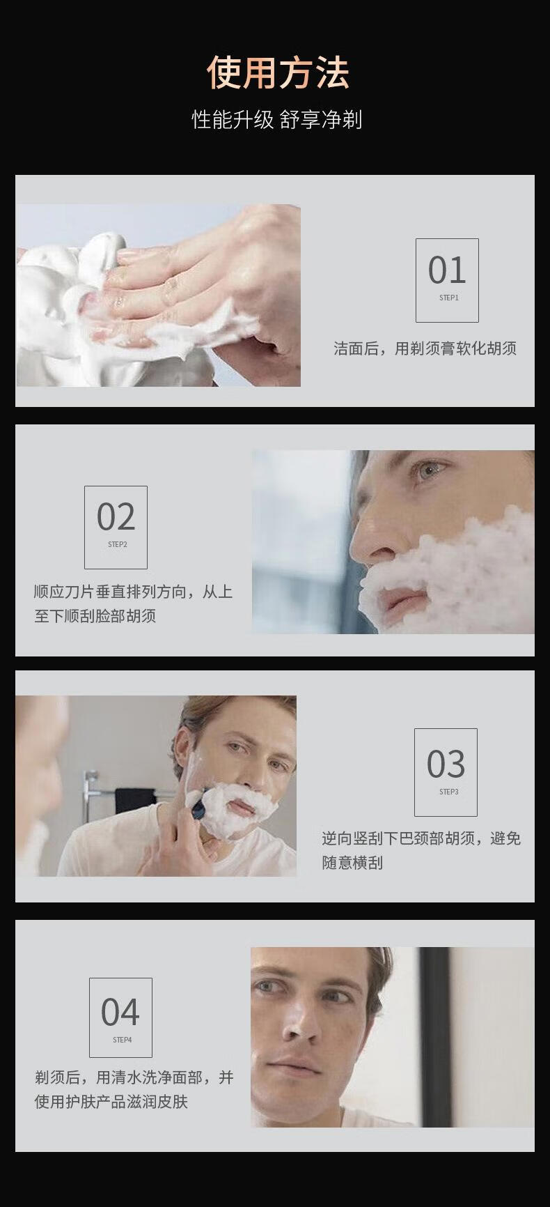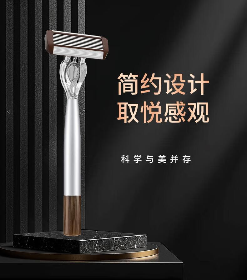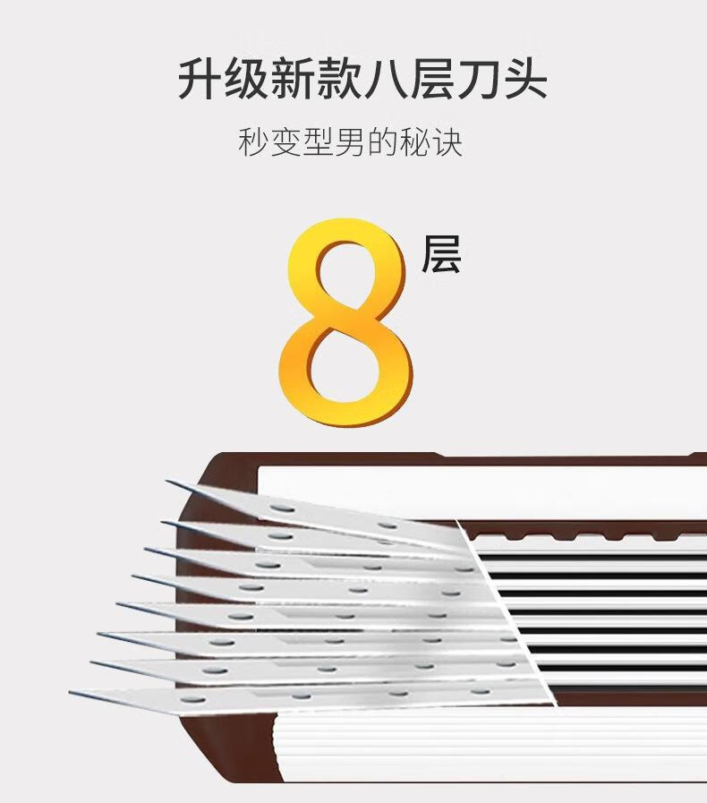 嘉之寇德国精工】八层刀片手动刮胡刀手动剃须刀不锈钢刀柄8层保护刀头 1手柄+12刀片+盒子+须膏+清洁刷