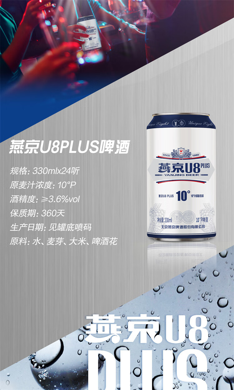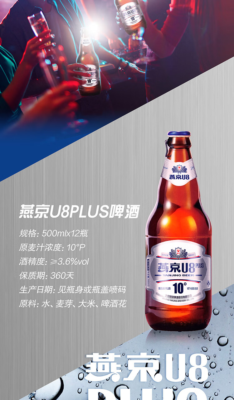 燕京U8 PLUS 10度啤酒送货上门 500mL 12瓶