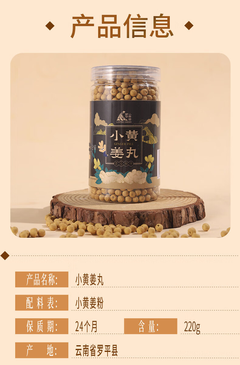 彝小姜罗平地标保护小黄姜纯姜丸即食干姜丸220g