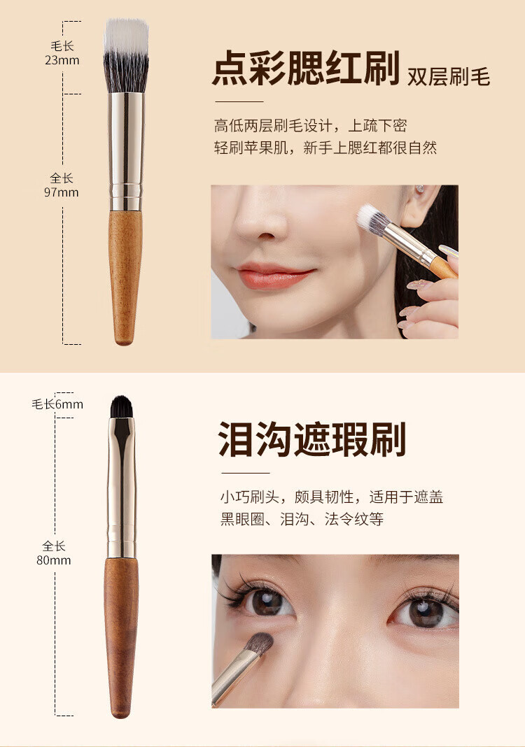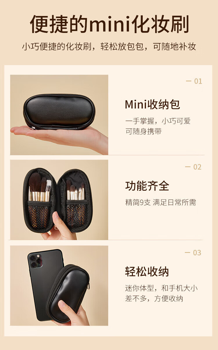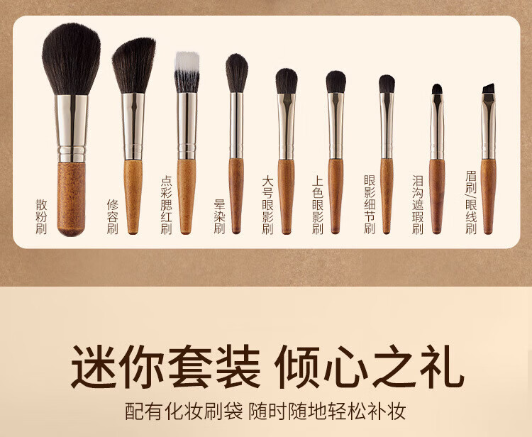 YAHLIGS新款迷你化妆刷9支套装MINI随身便携旅行套装新手初学者化妆刷 9支黑色实木化妆刷 1件