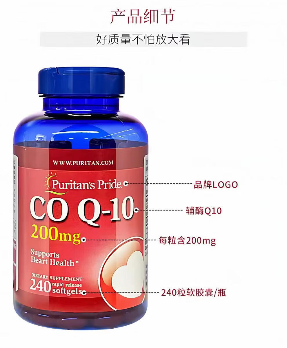 普丽普莱(Puritan's Pride)普丽普莱辅酶q10护心辅酶高含量200mg保护心脏心肌美国进口 默认规格1 240粒*2瓶