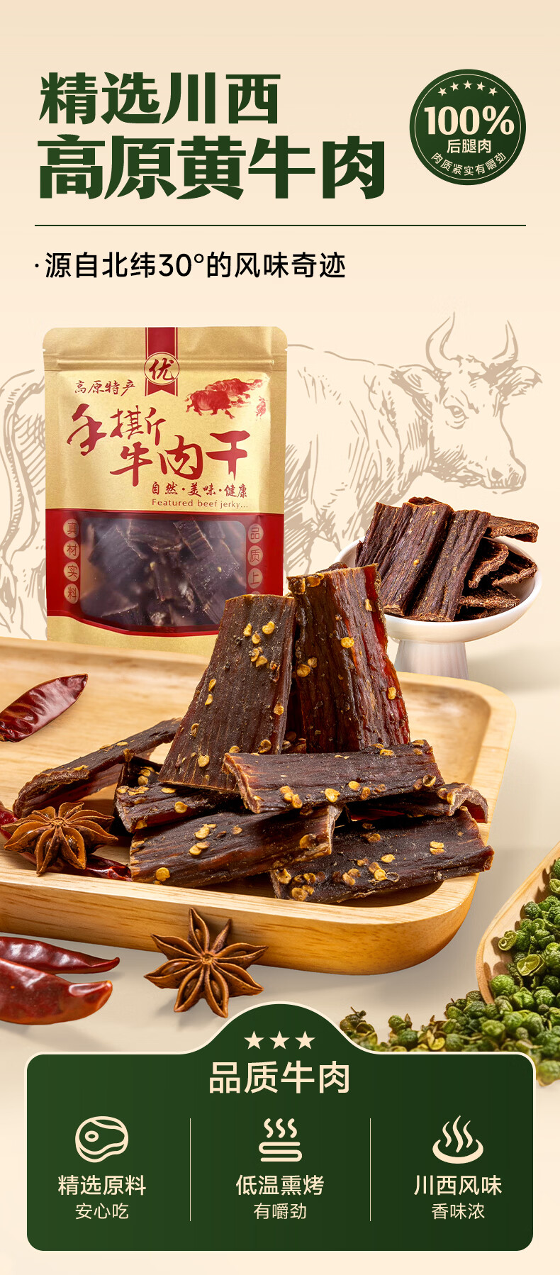 汉牦生四川特产正宗手撕风干牛肉干川西风味牛肉解馋熟食零食年货送礼 四川麻辣味【410g】