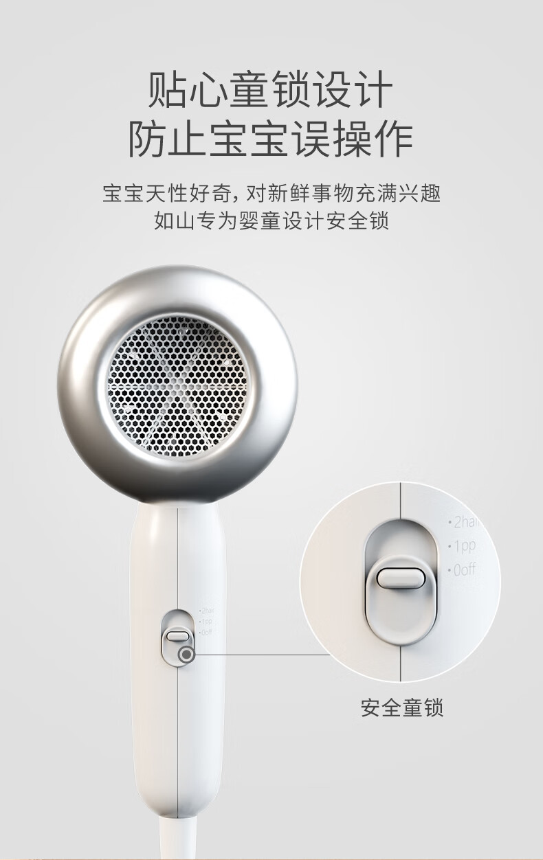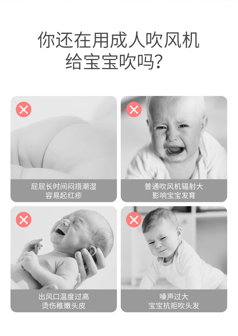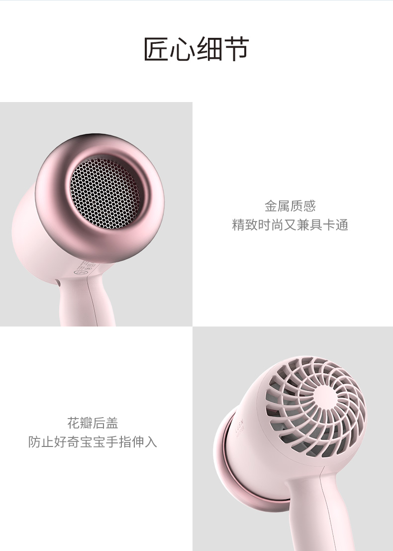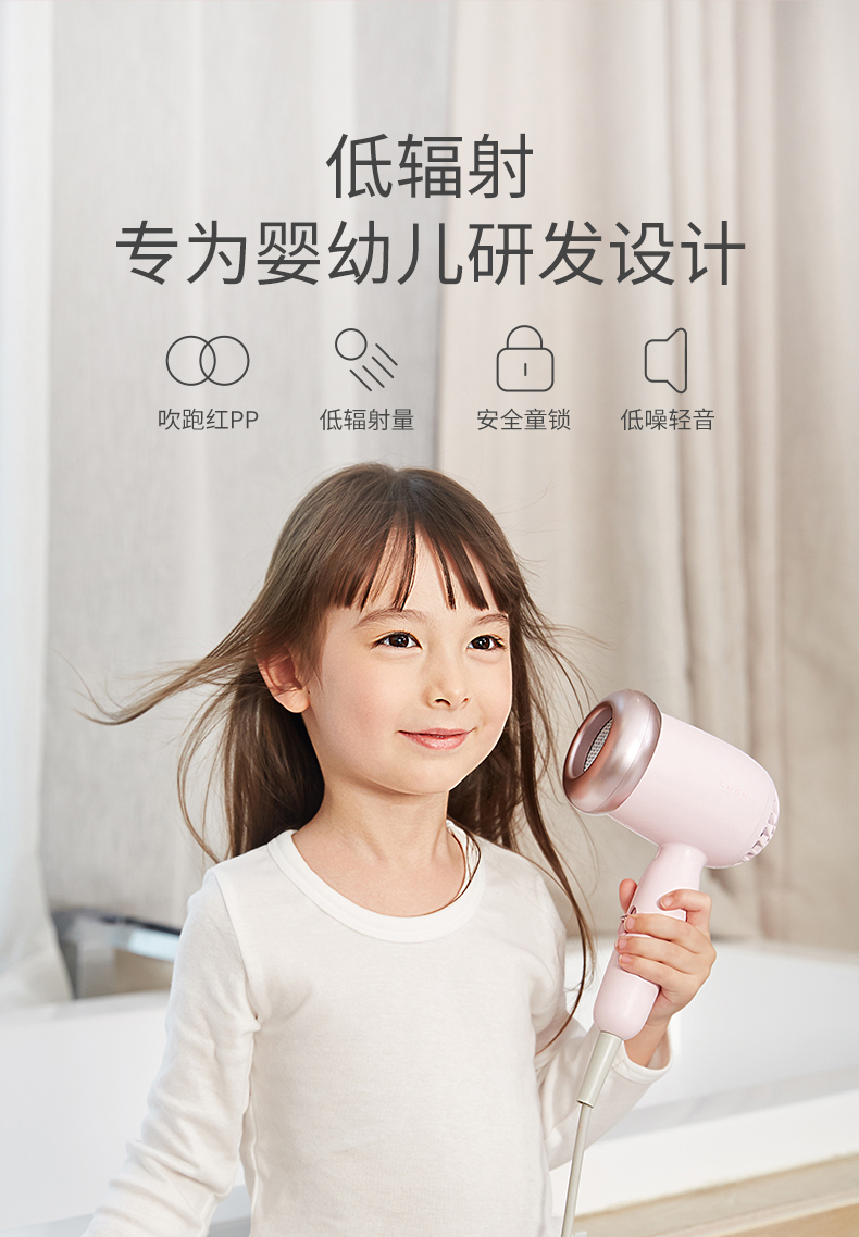 如山(LUSN)婴儿吹风机宝宝专用吹屁屁股低音低辐射吹头发迷你风筒粉色款