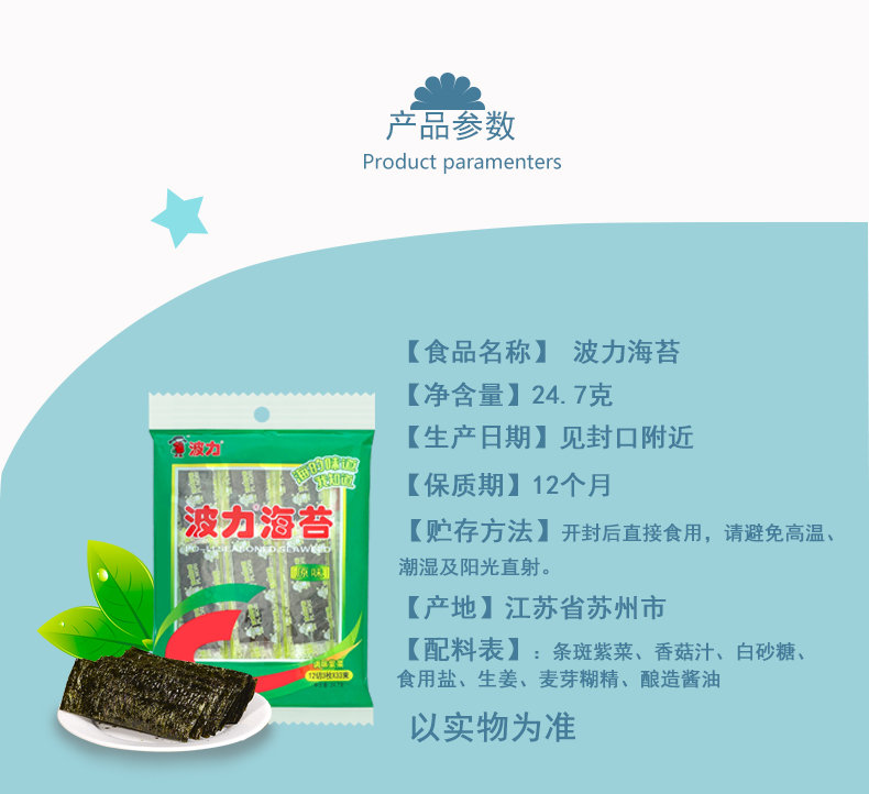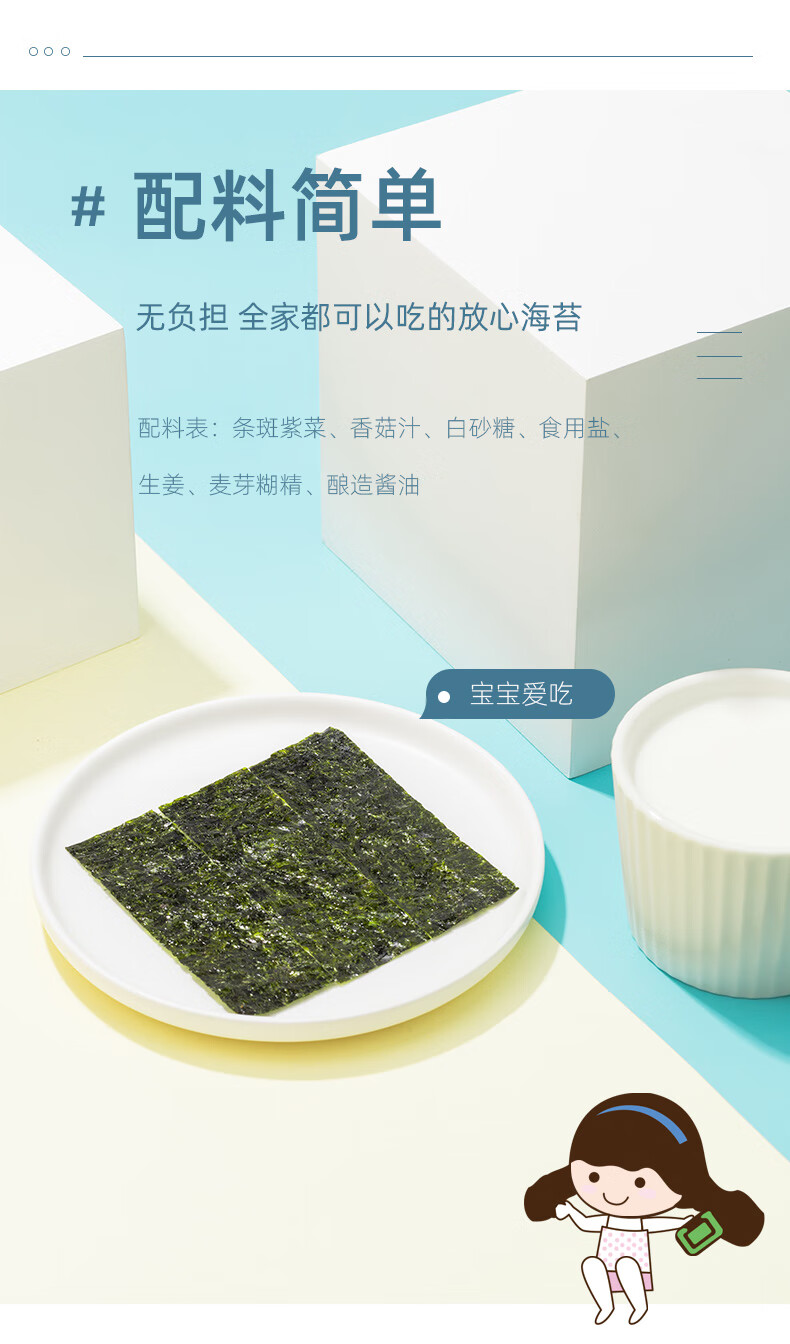 波力海苔片休闲零食 儿童零食 网红小吃 即食条斑紫菜原味24.7g约33包