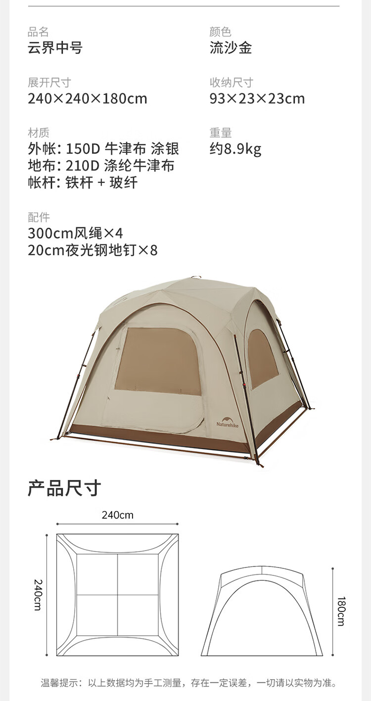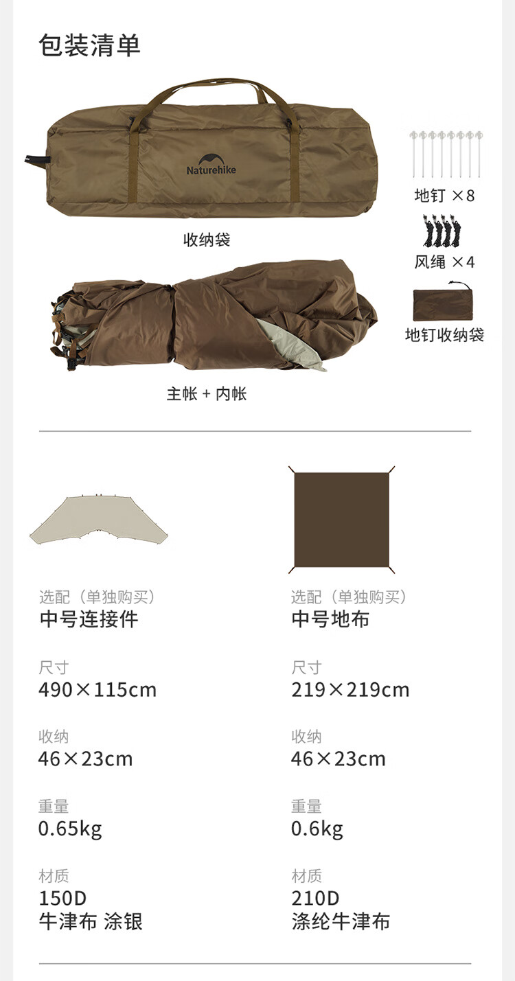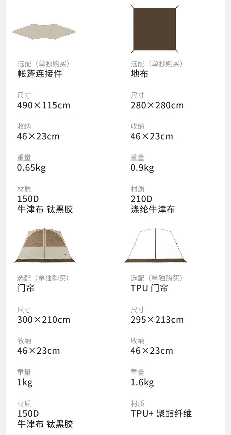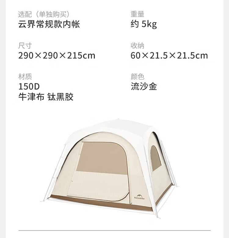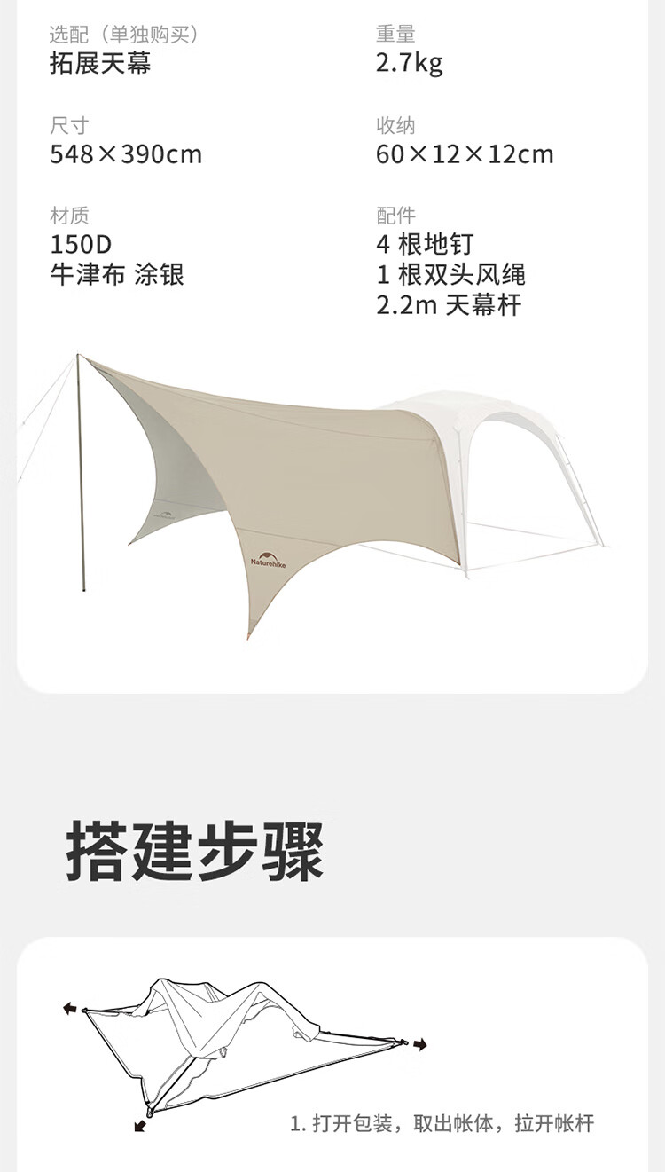 Naturehike挪客云界自立速开天幕帐篷秋冬户外露营防风防雨穹顶遮阳棚 配件-门帘【大号】