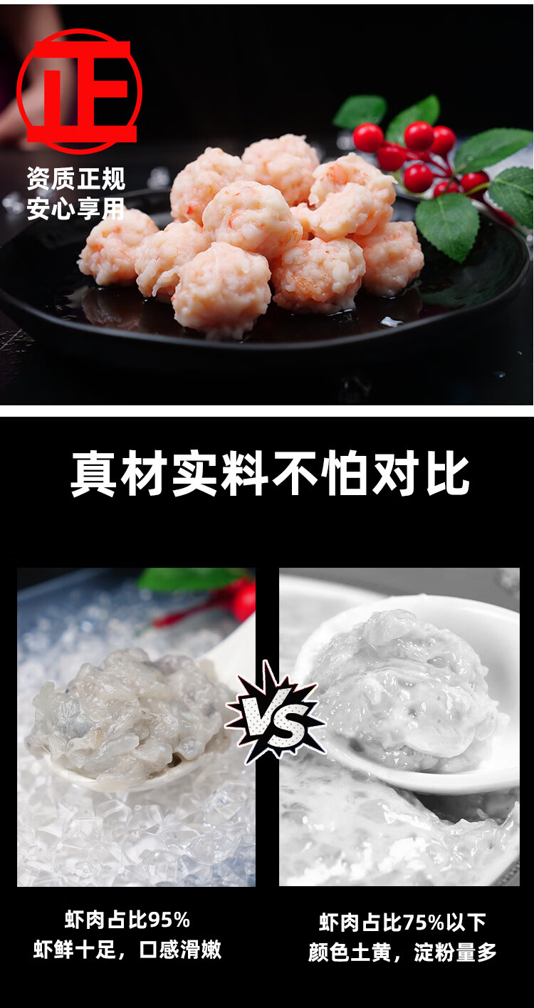 天纵良材黑虎虾滑95%含虾量 海鲜礼品 生鲜火锅食材虾肉虾仁虾丸子涮锅丸 【黑虎虾滑】7包 700g(净重) 每包100g