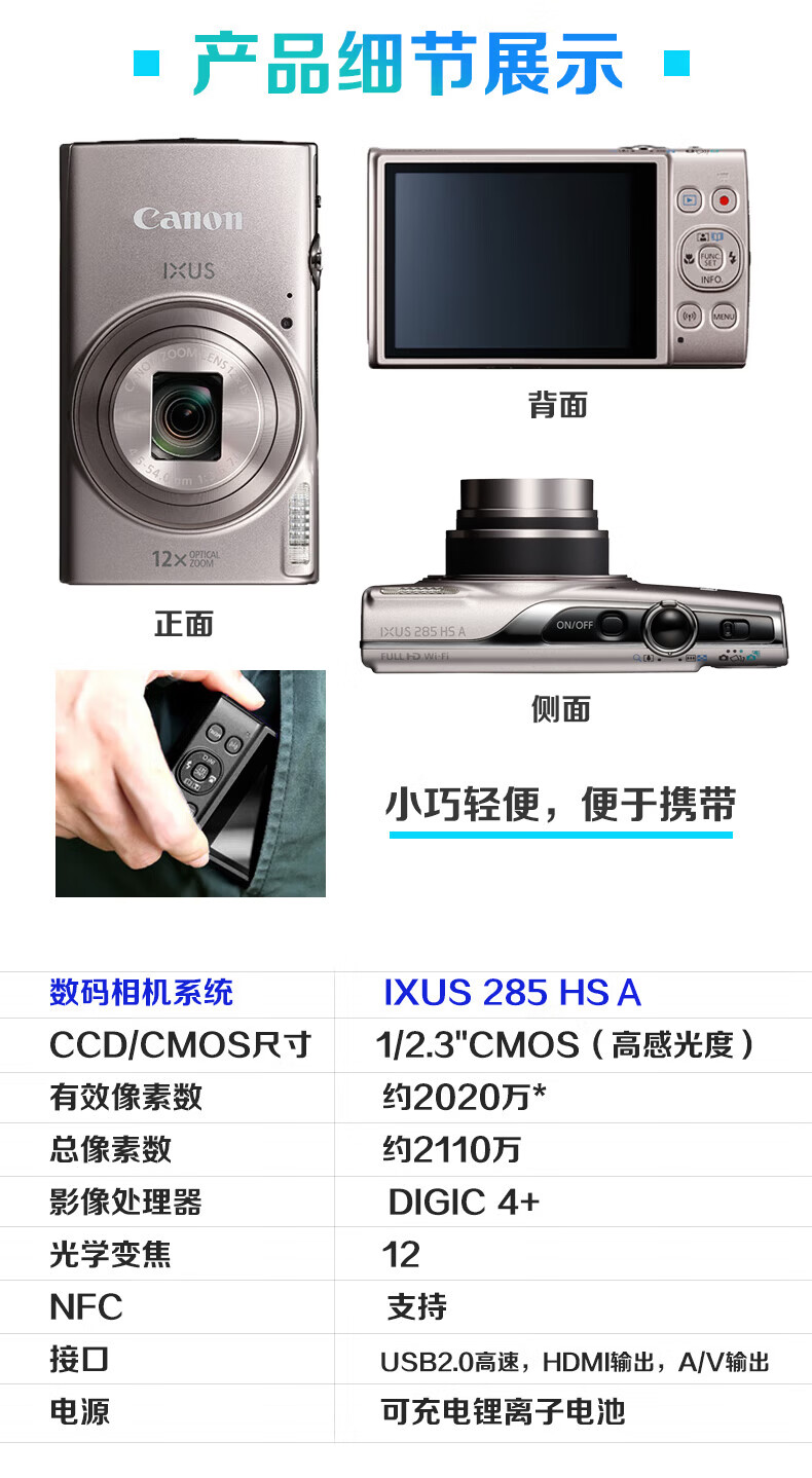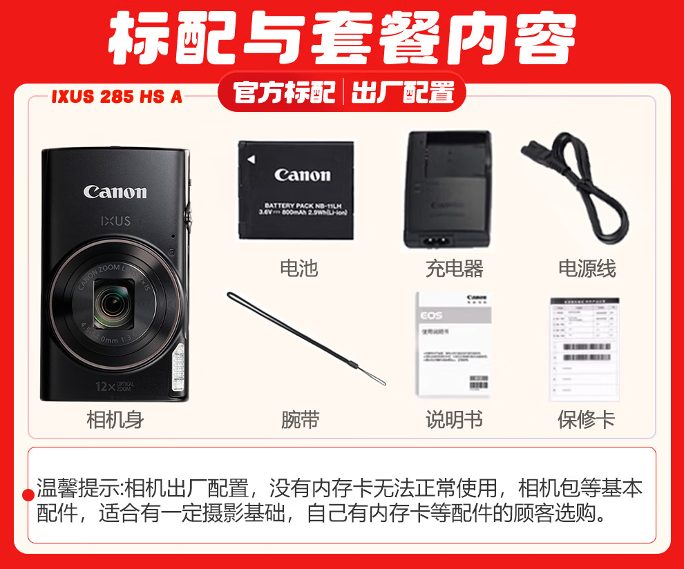 佳能(Canon) 佳能相机 ixus285A 数码相机 卡片机 照相机 学生入门小巧便携式家用照像机 佳能IXUS285 HS A黑色 官方标配【不含内存卡,相机包,摄影礼包等】