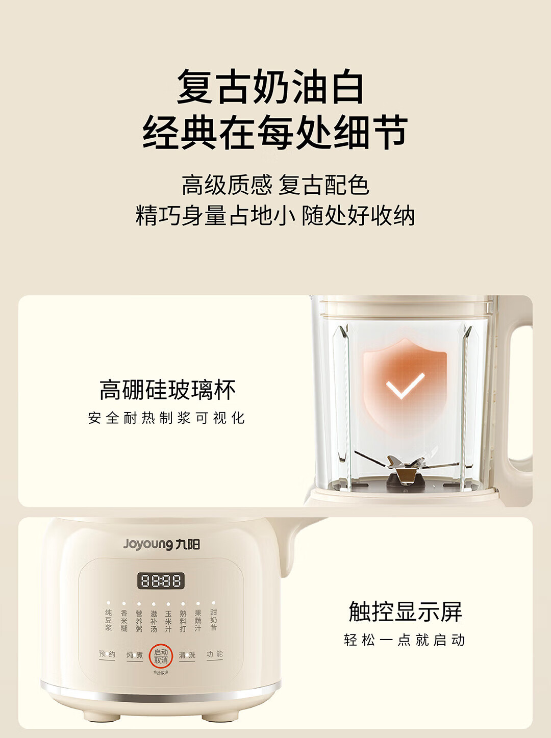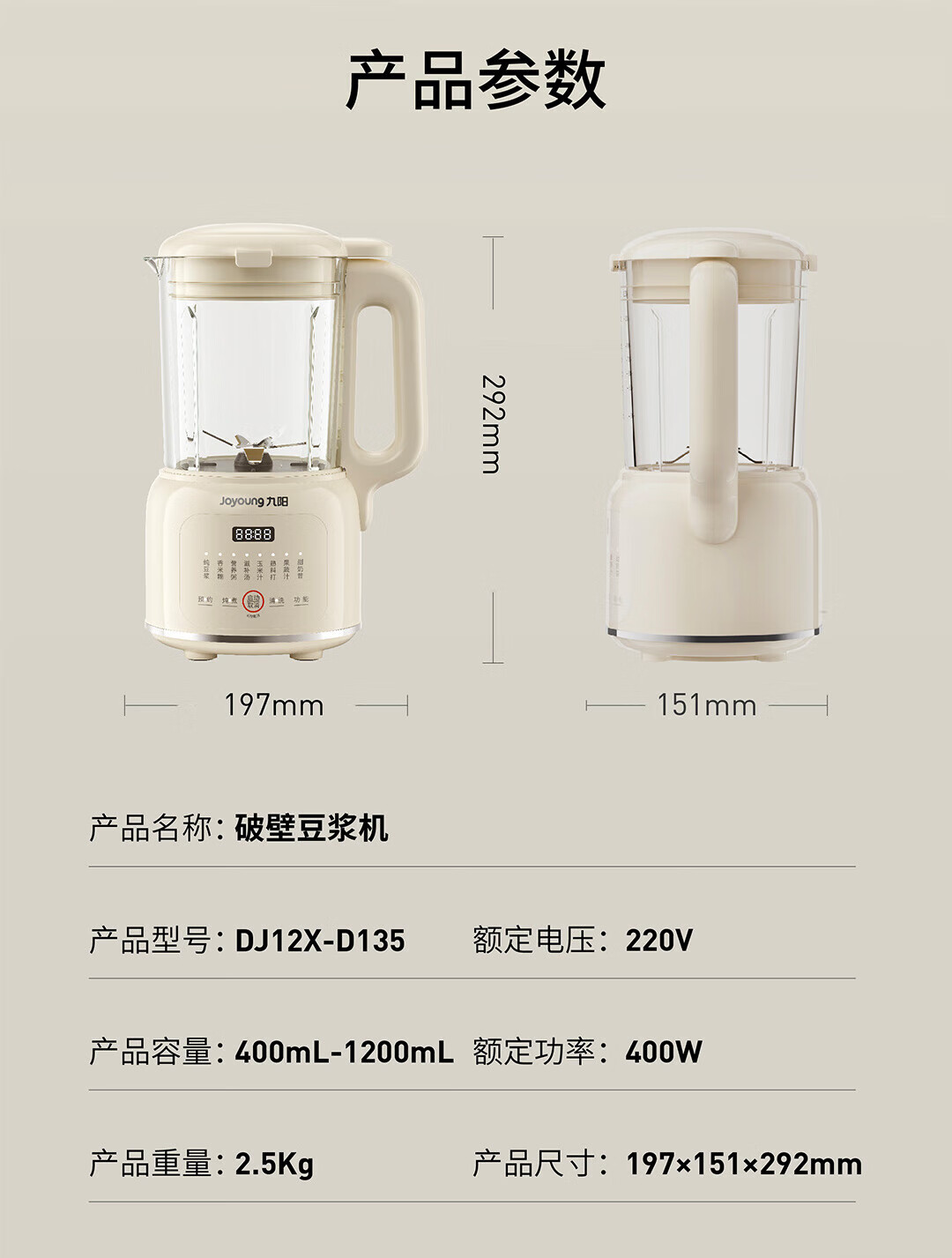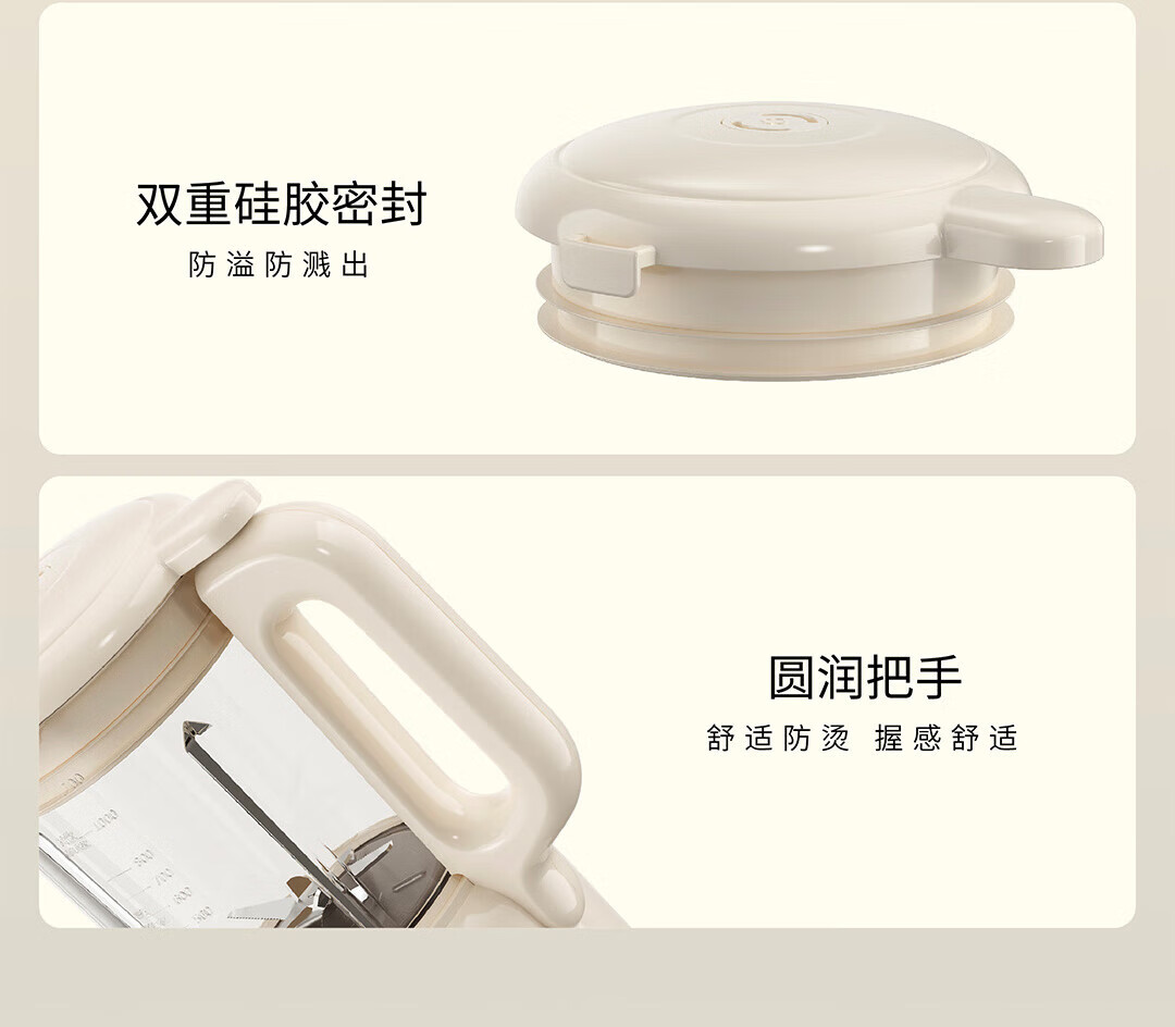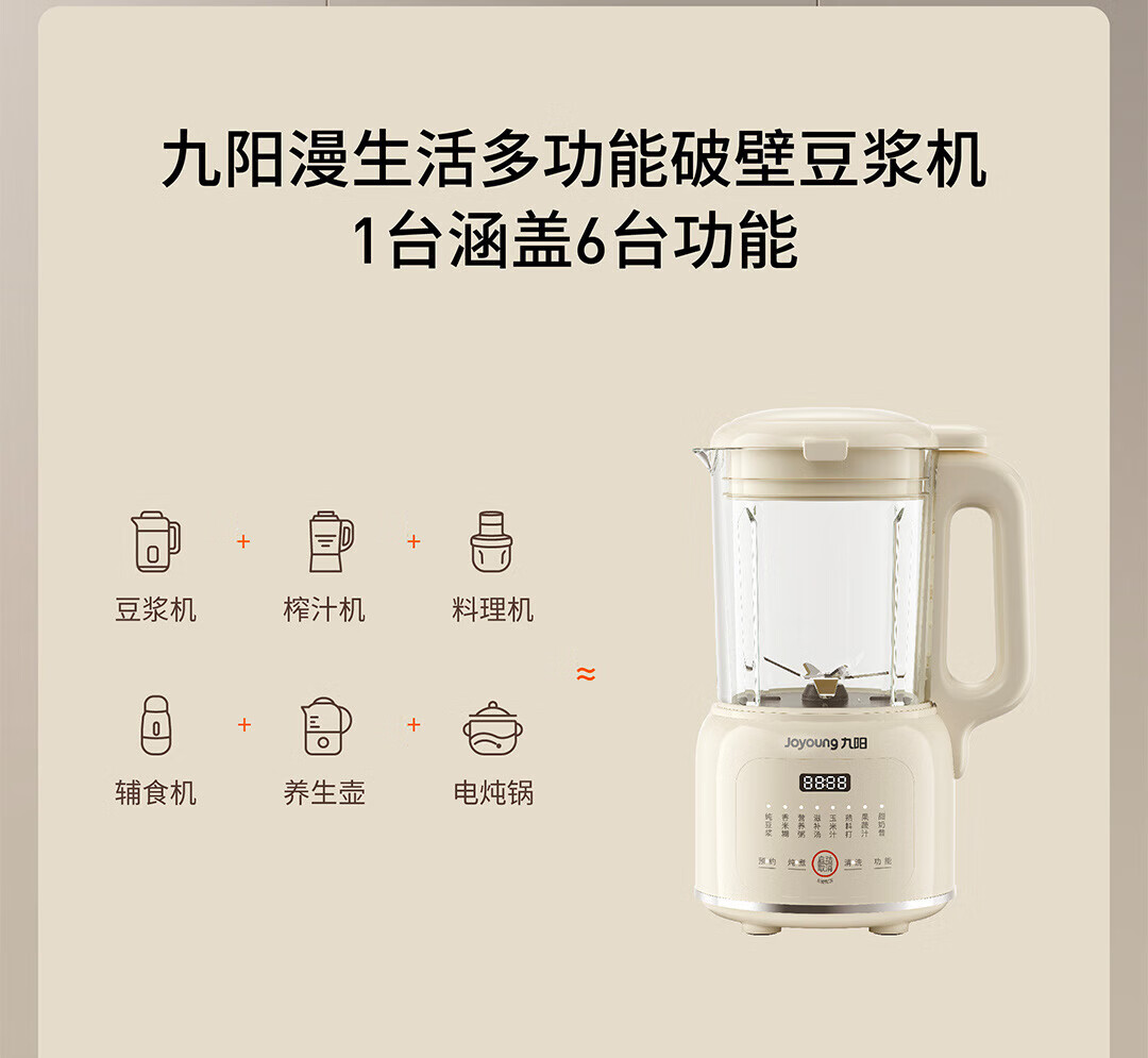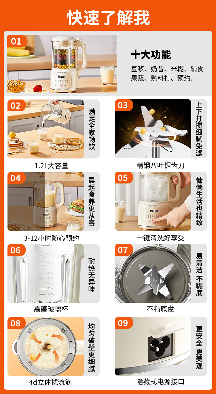 九阳豆浆机家用破壁机1.2L小型料理机多功能榨汁机米糊辅食机一键自清洁可预约细腻免滤 【奶油白】D135 1.2L
