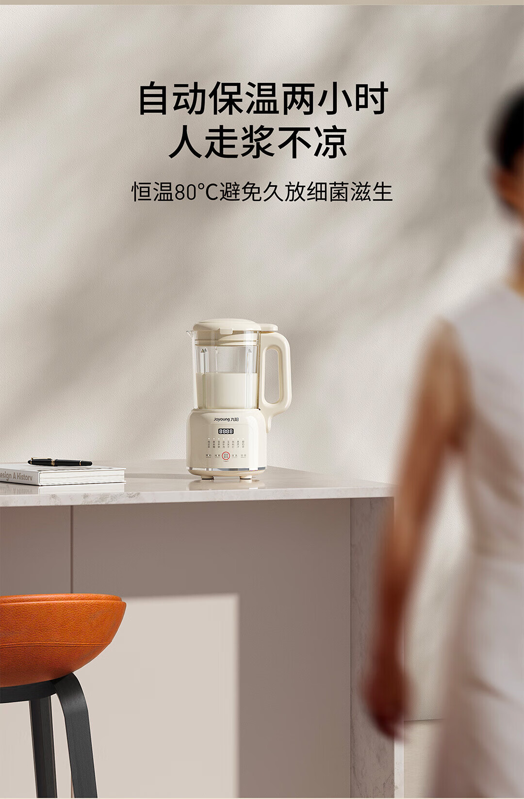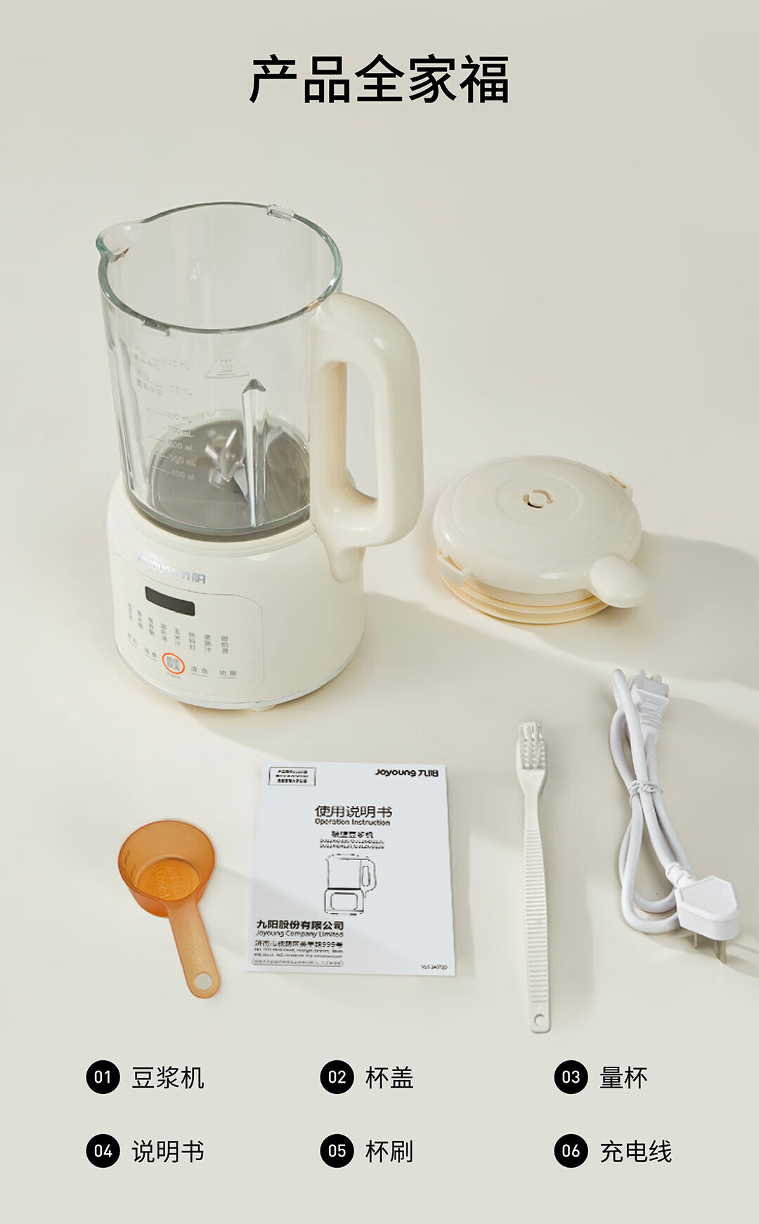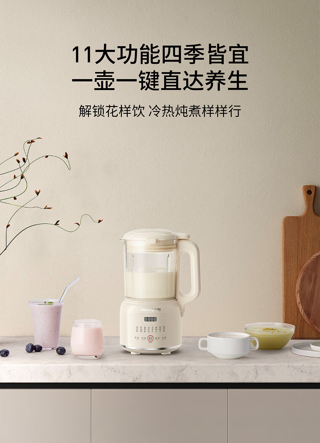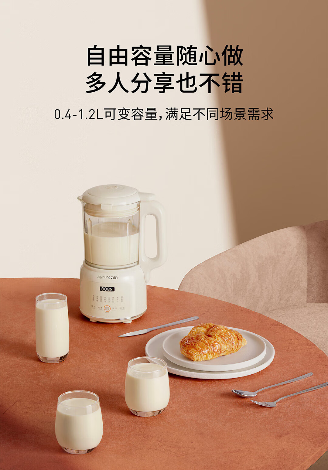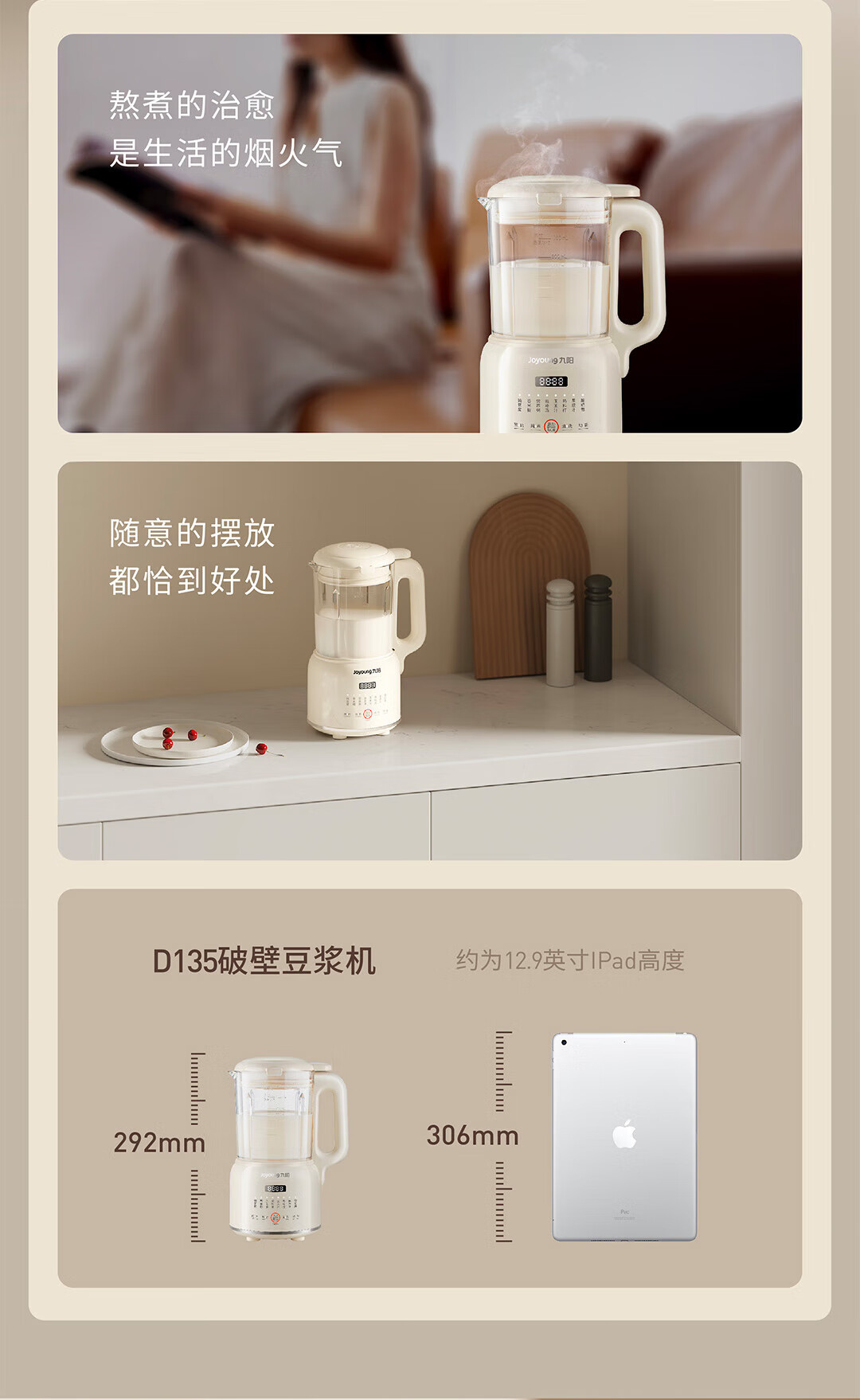 九阳豆浆机家用破壁机1.2L小型料理机多功能榨汁机米糊辅食机一键自清洁可预约细腻免滤 【奶油白】D135 1.2L