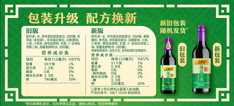 李锦记 薄盐系列 薄盐生抽500ml【减盐 一级】0添加防腐剂 酱油