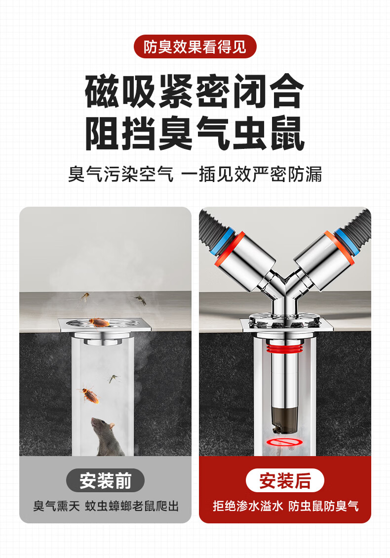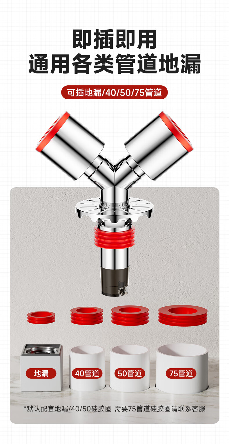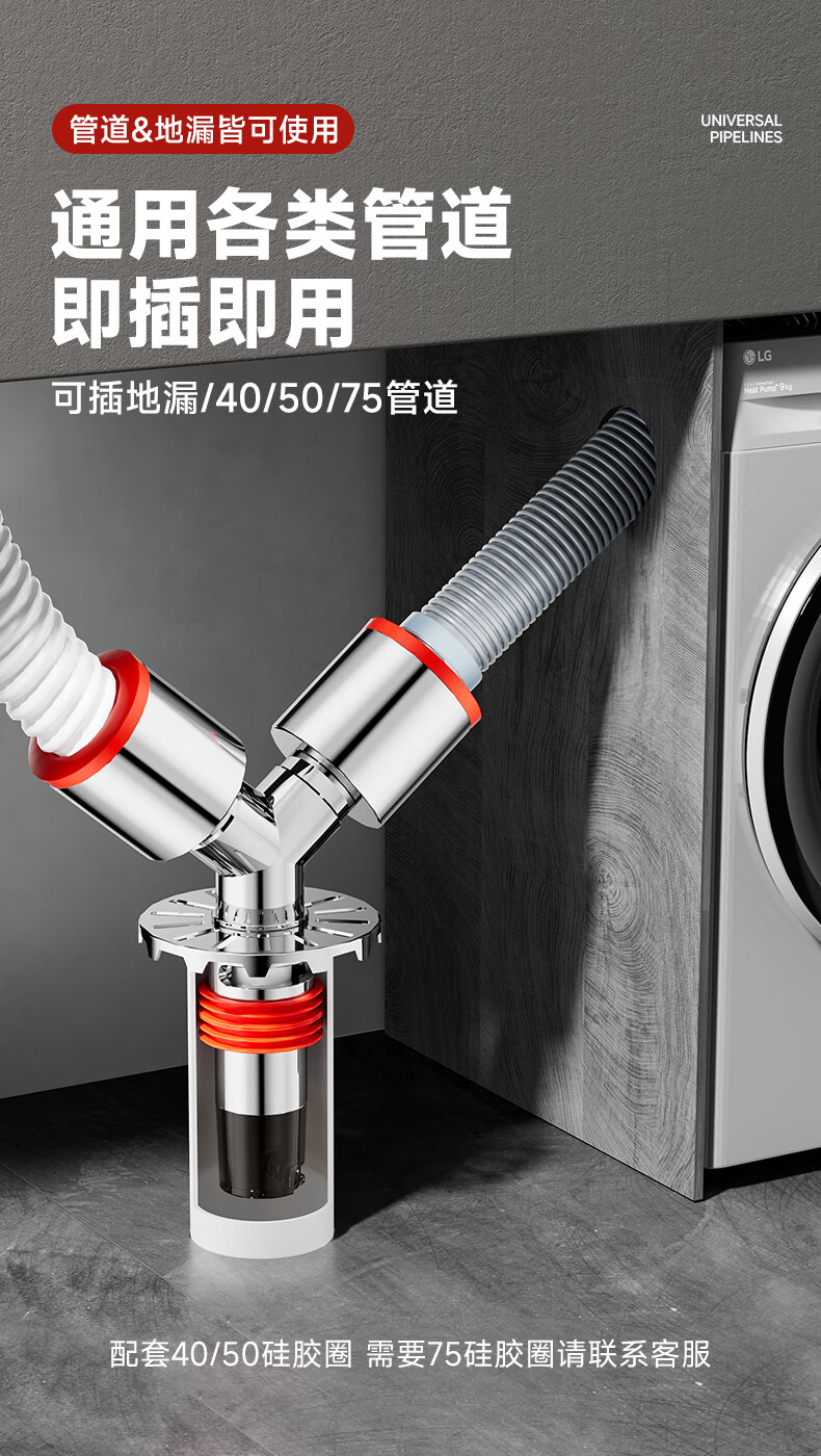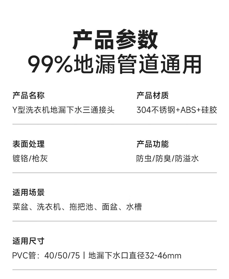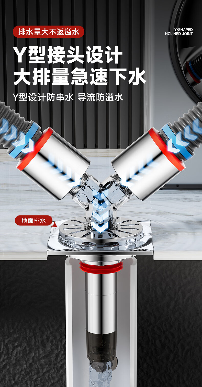 Jeonestan洗衣机下水三通二合一排水管地漏接头分水器防虫防潮地漏断层可用 【斜三通】接2根下水管