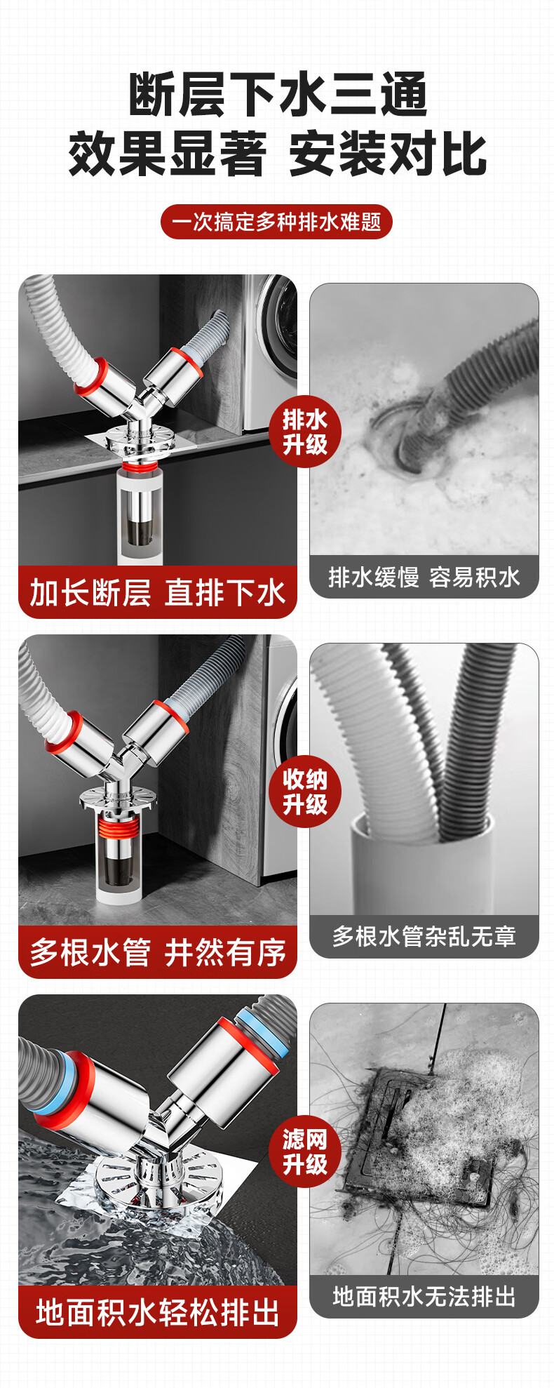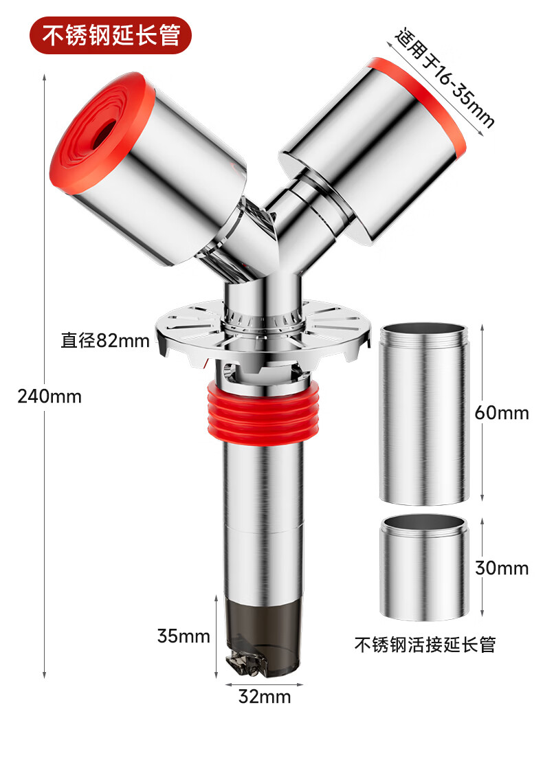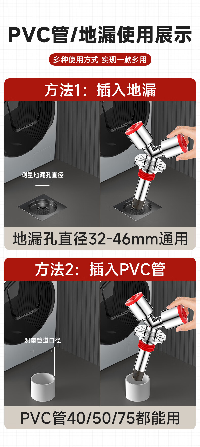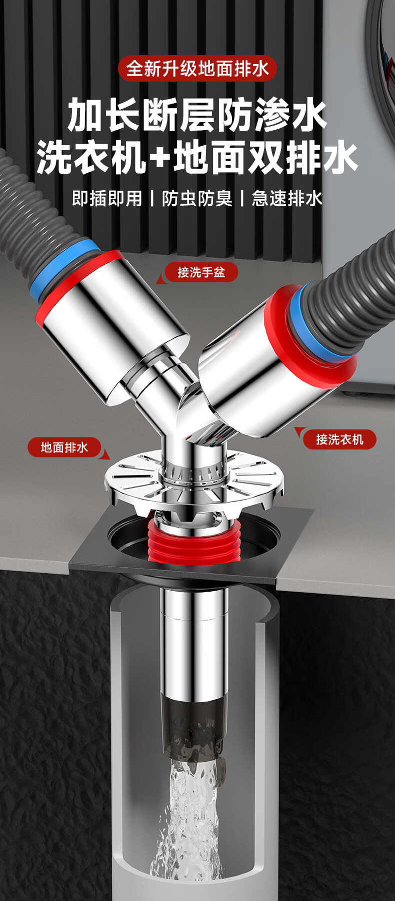Jeonestan洗衣机下水三通二合一排水管地漏接头分水器防虫防潮地漏断层可用 【斜三通】接2根下水管