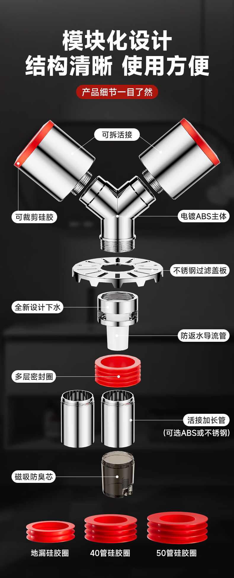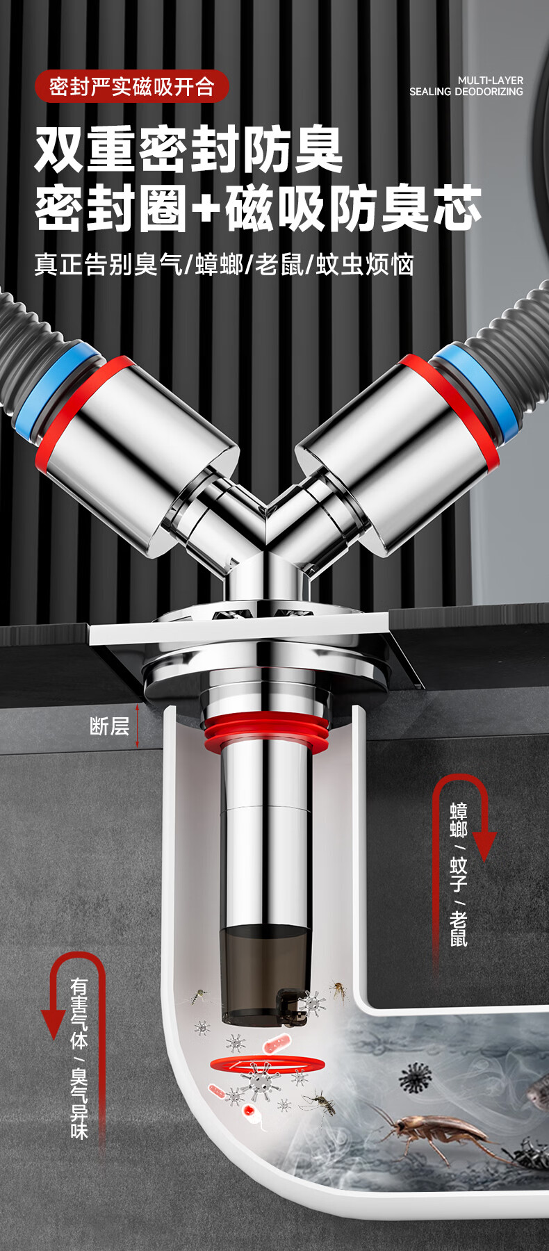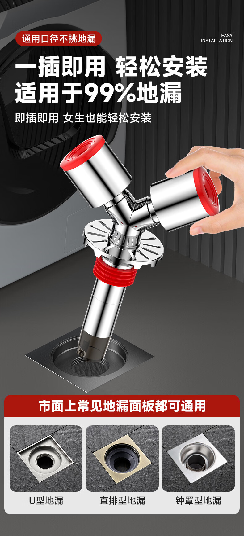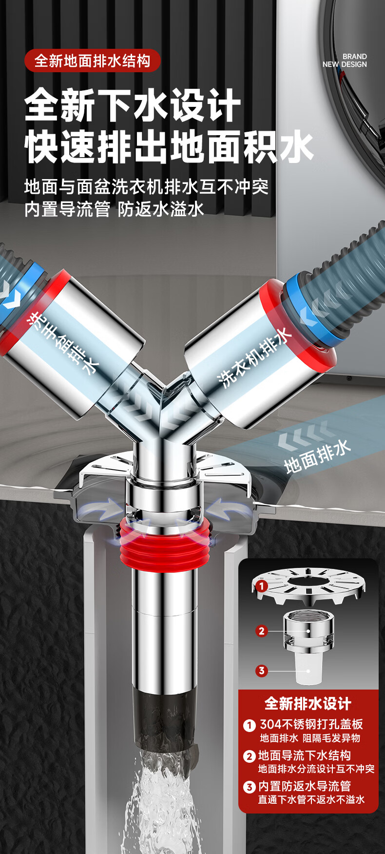 Jeonestan洗衣机下水三通二合一排水管地漏接头分水器防虫防潮地漏断层可用 【斜三通】接2根下水管