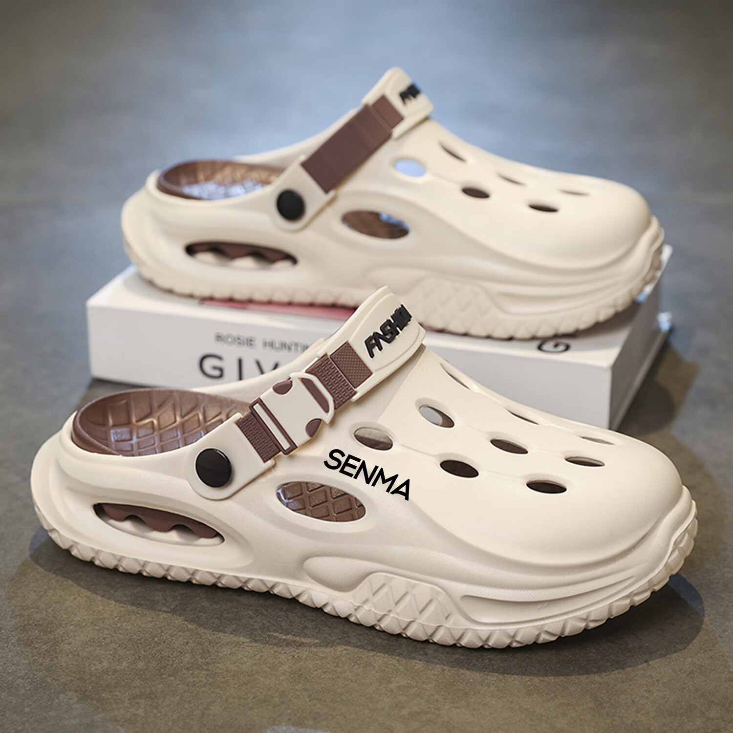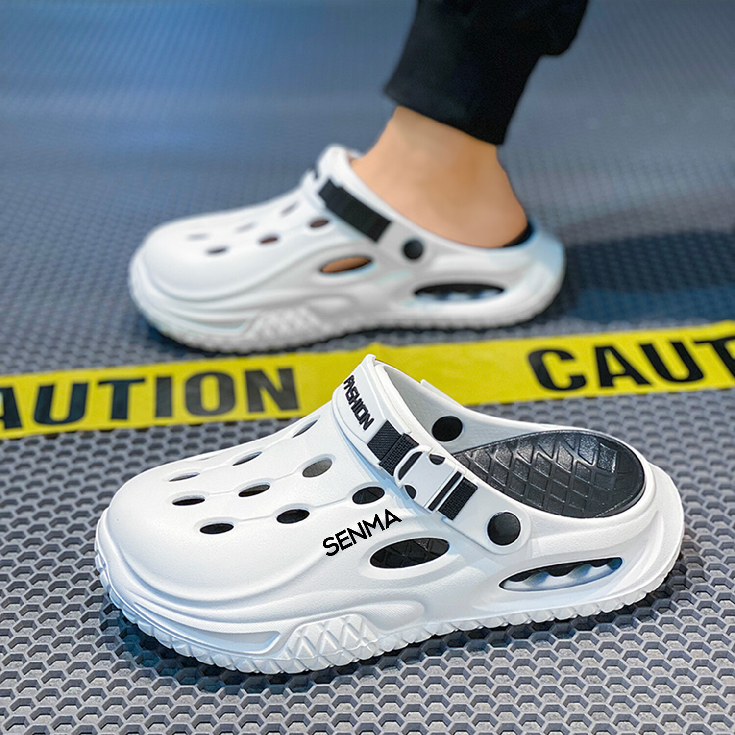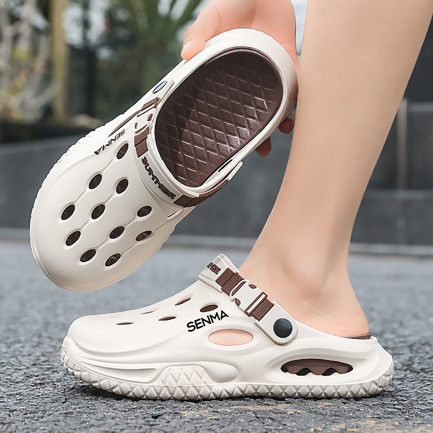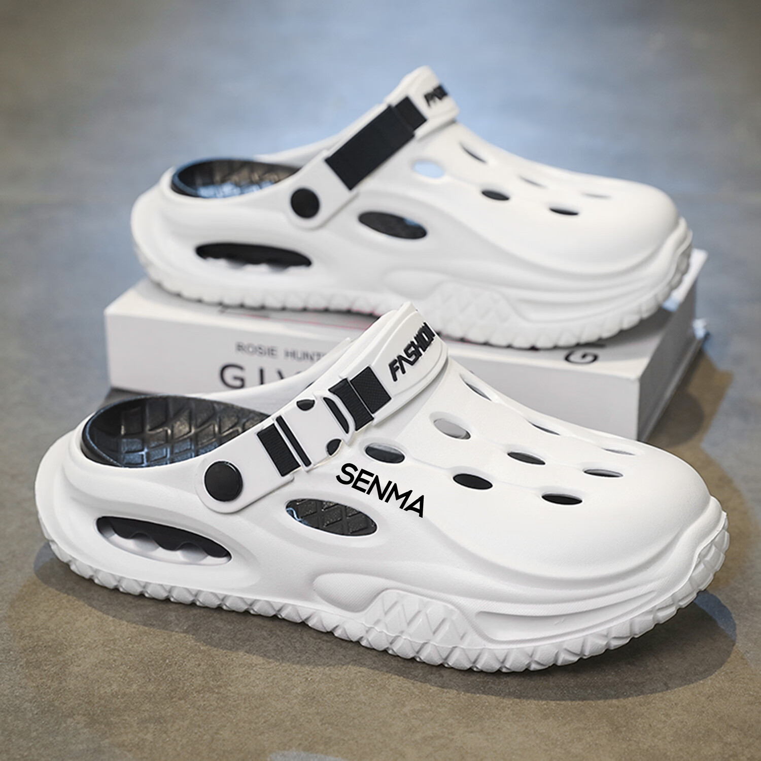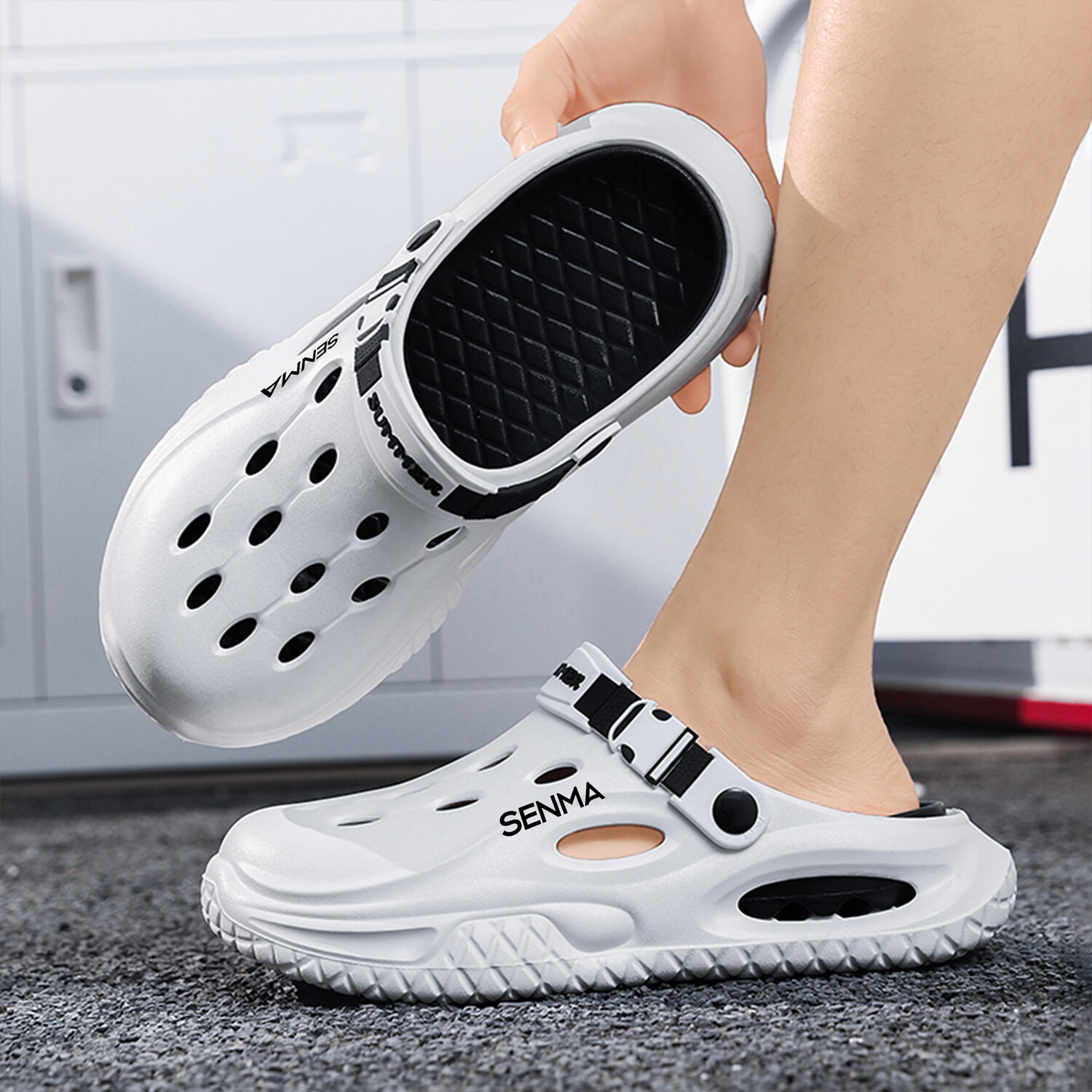 森馬半拖鞋男2026夏季外穿防滑防臭踩屎感涉水洞洞鞋男士运动沙滩凉鞋 白黑【基础款】 38-39 现货秒发