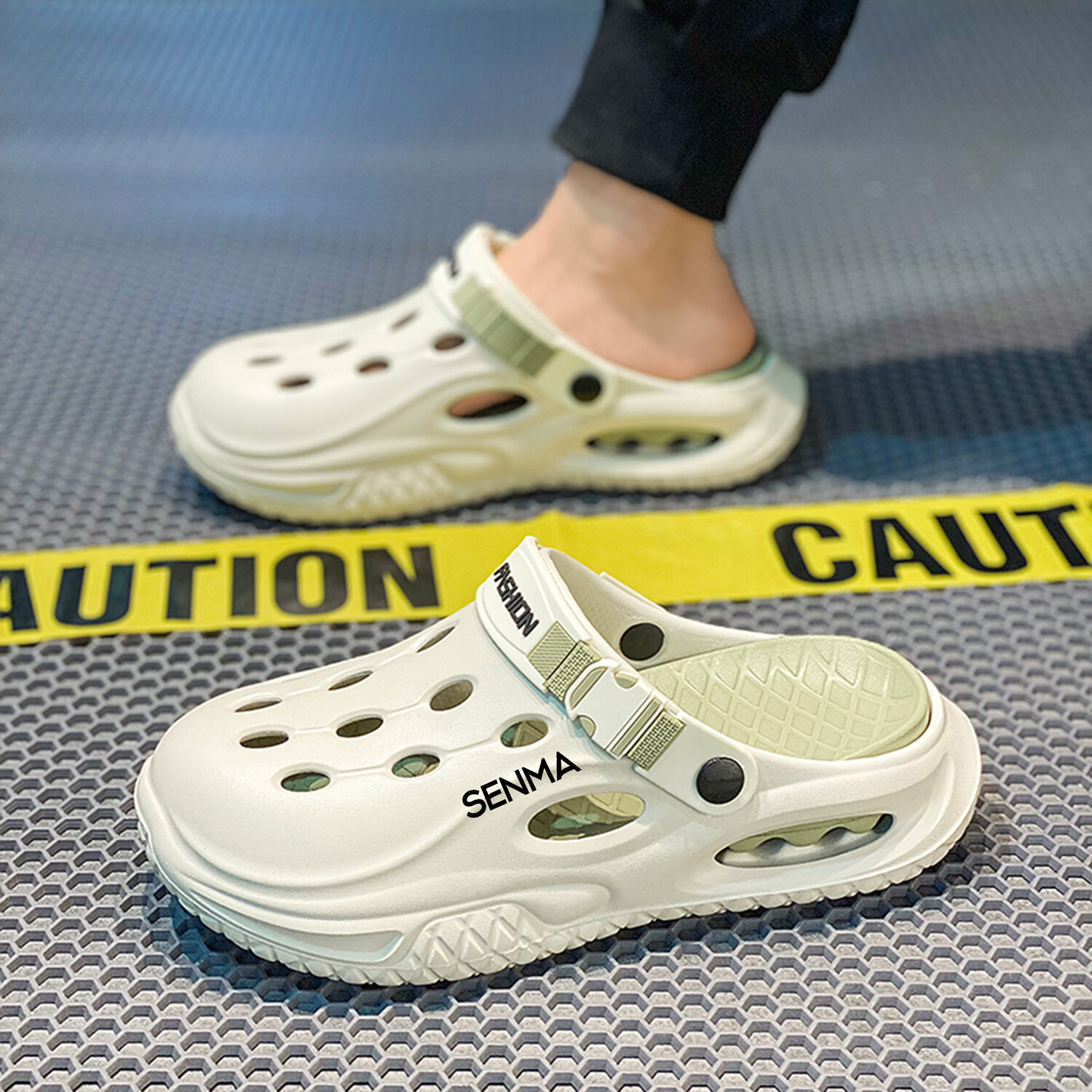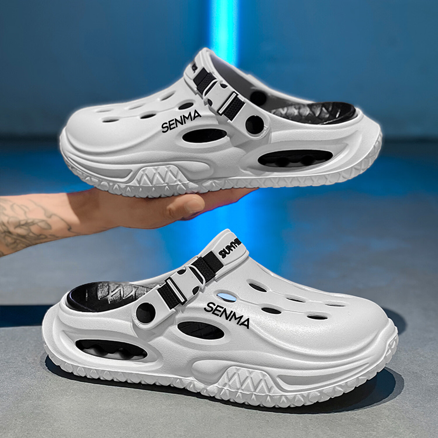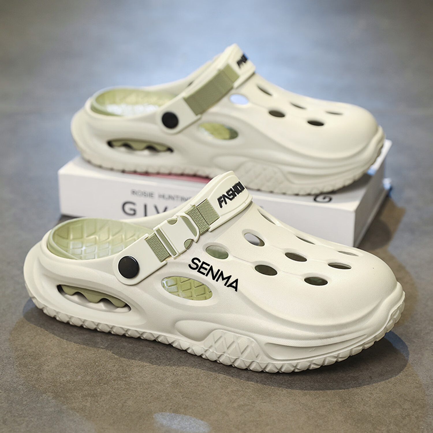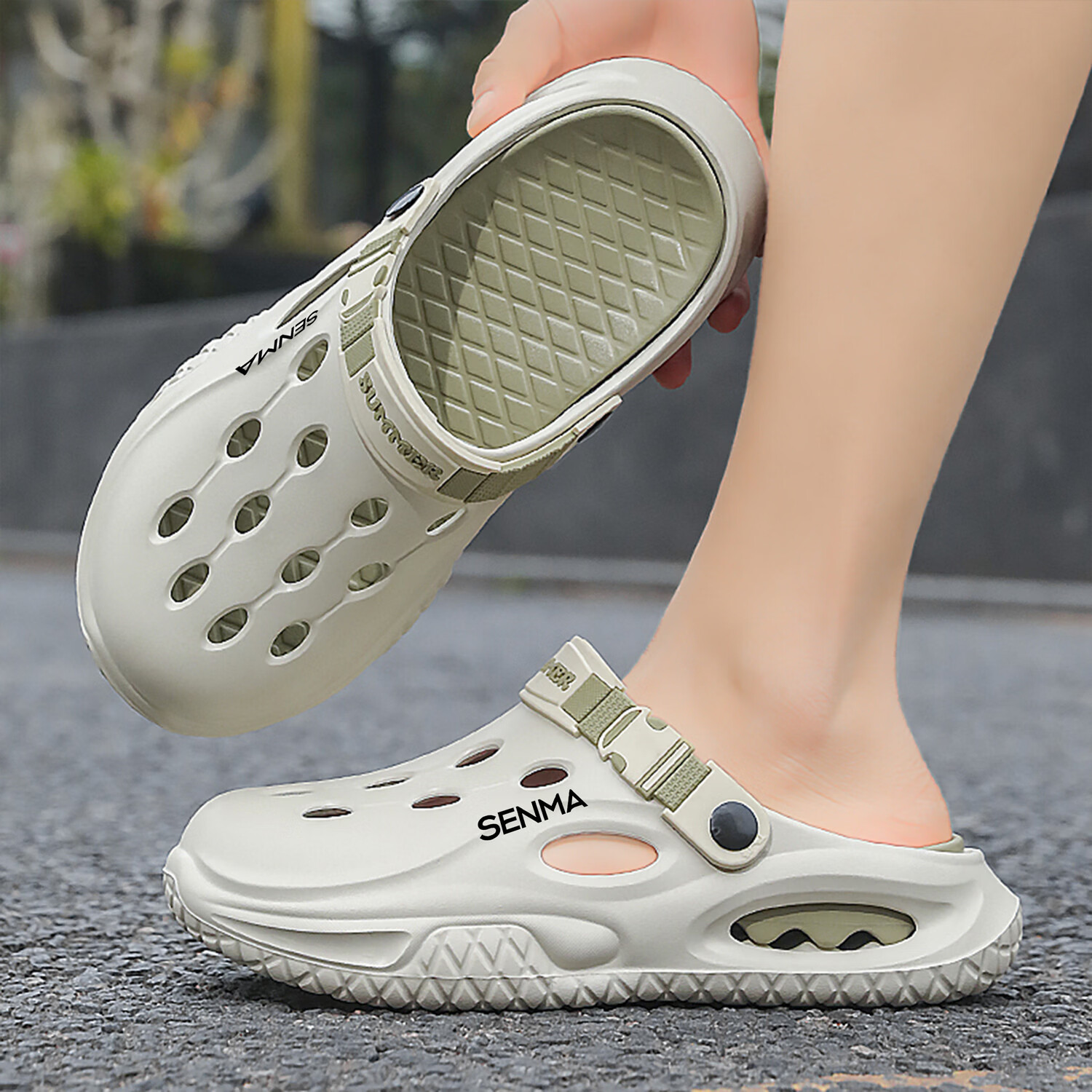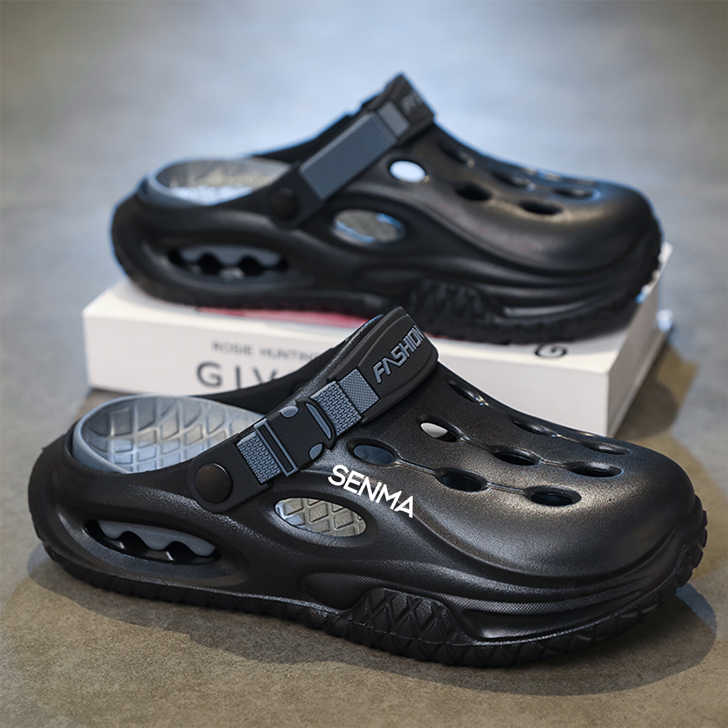 森馬半拖鞋男2026夏季外穿防滑防臭踩屎感涉水洞洞鞋男士运动沙滩凉鞋 白黑【基础款】 38-39 现货秒发