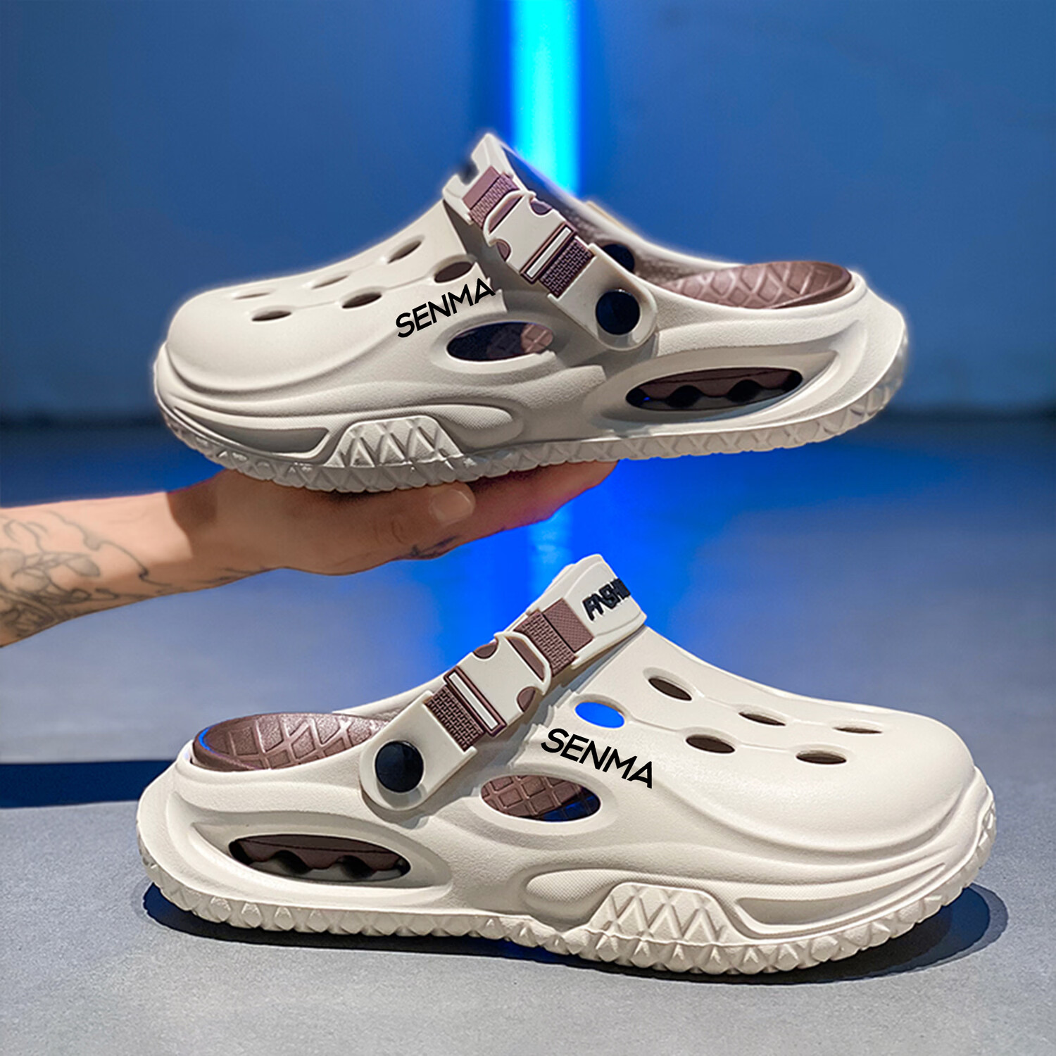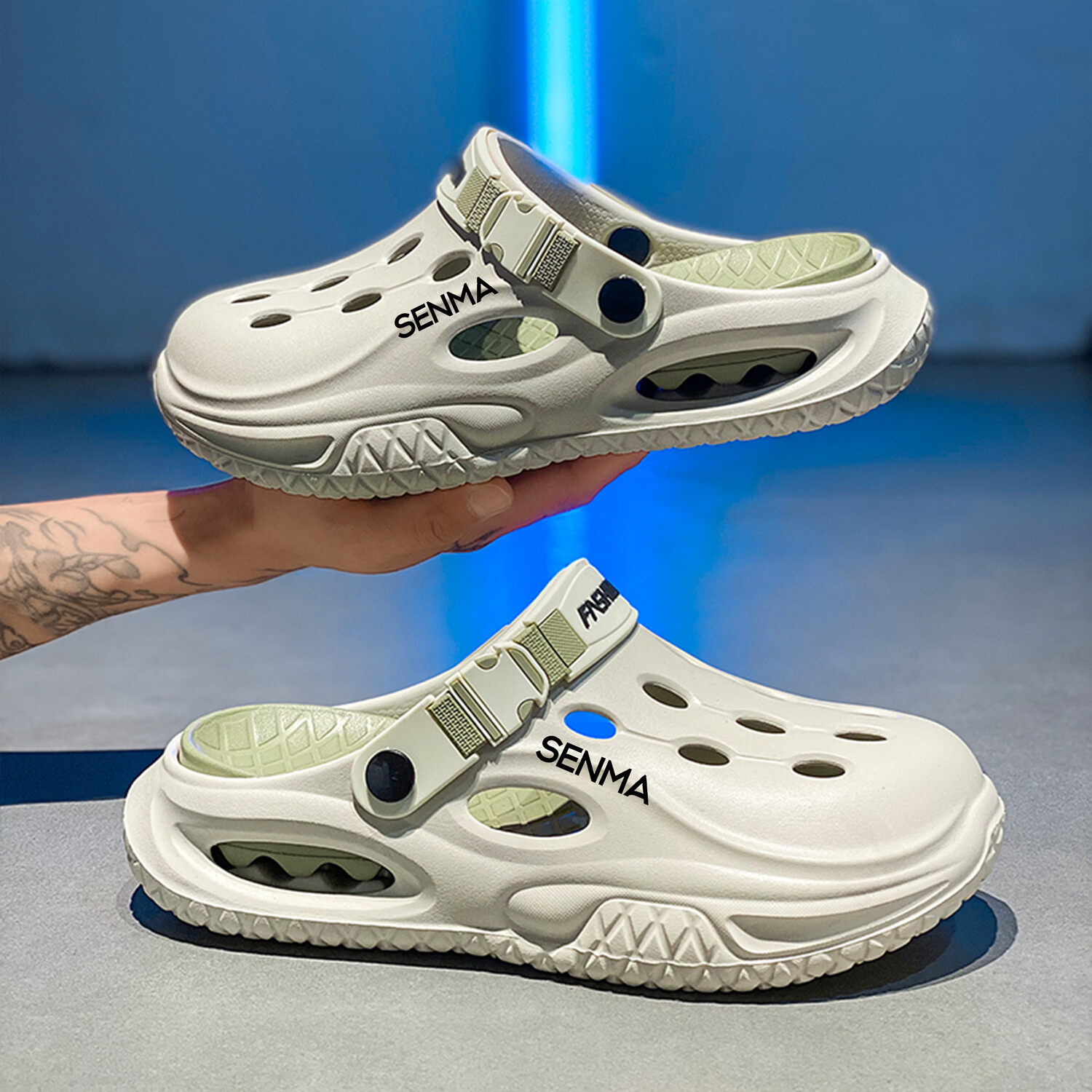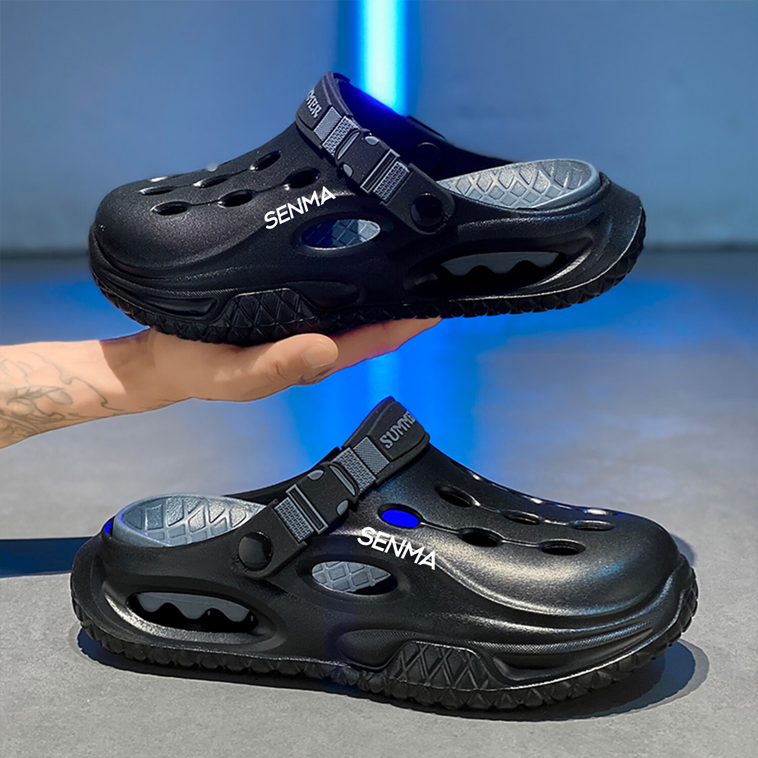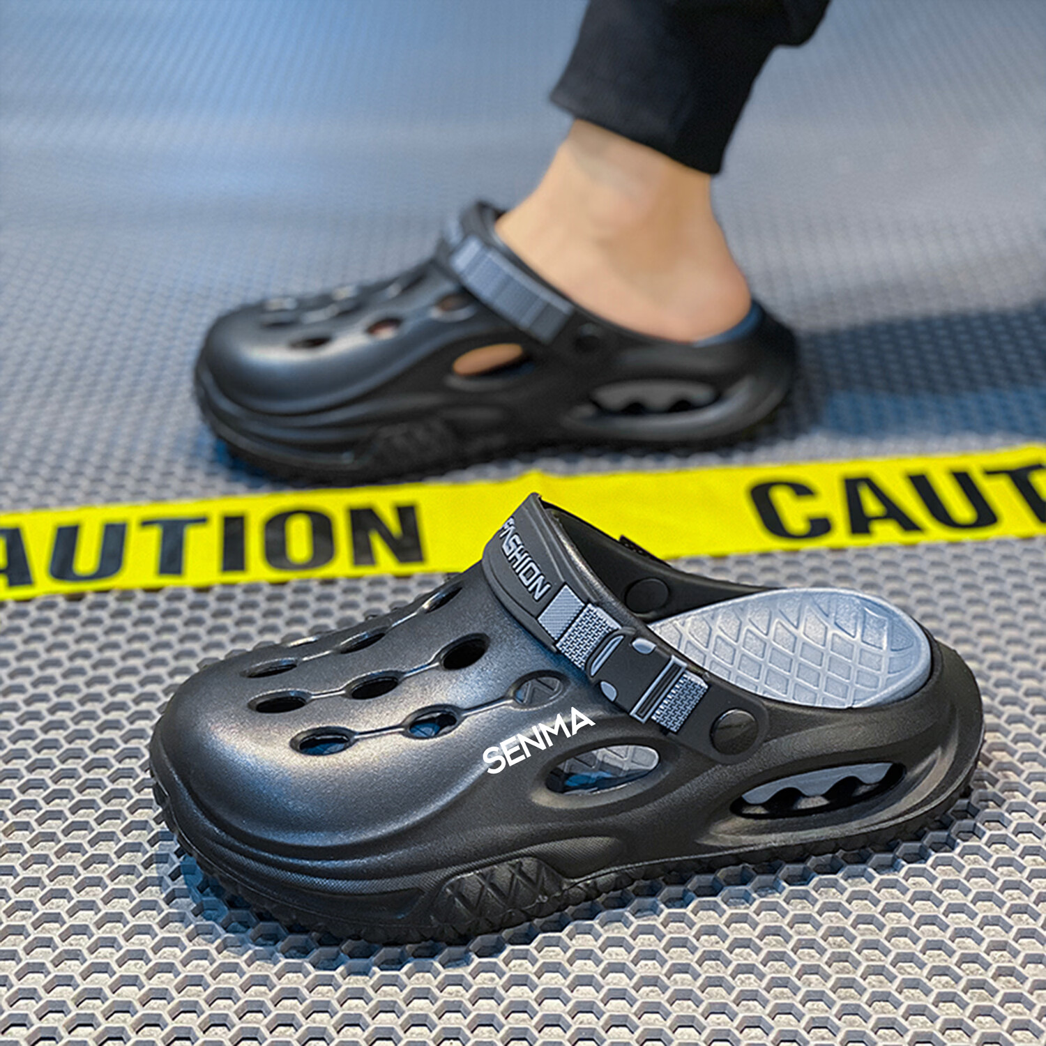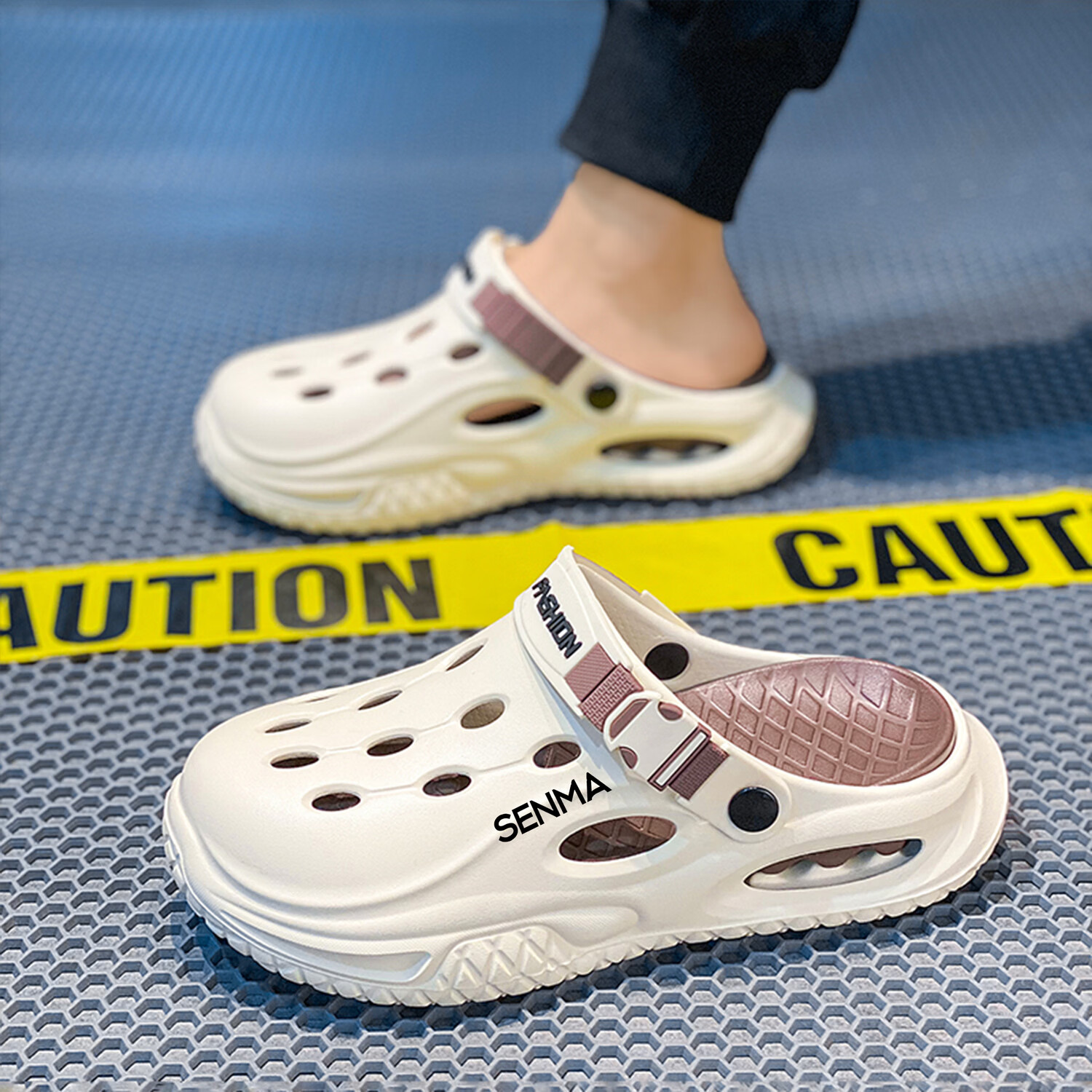 森馬半拖鞋男2026夏季外穿防滑防臭踩屎感涉水洞洞鞋男士运动沙滩凉鞋 白黑【基础款】 38-39 现货秒发