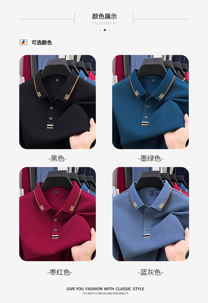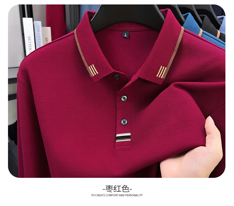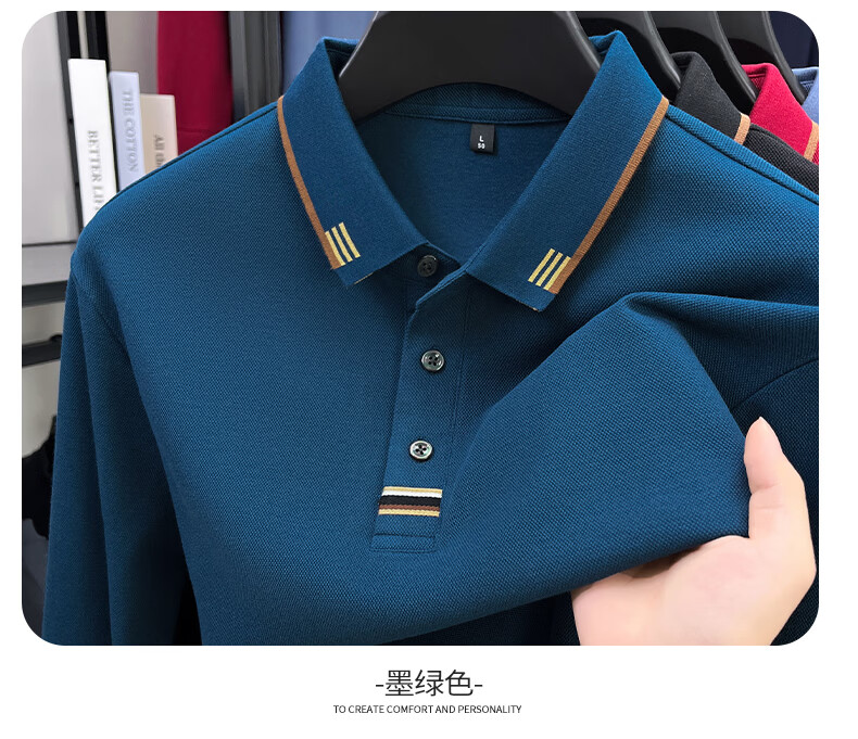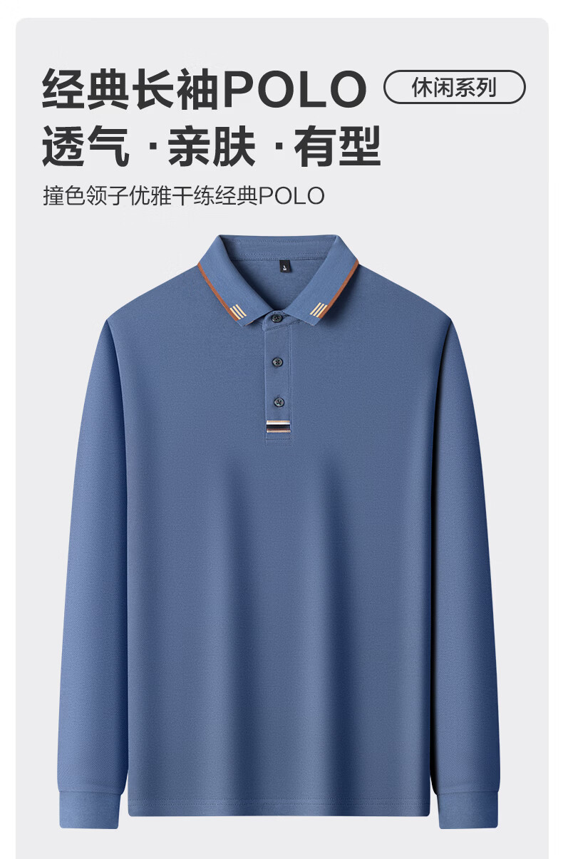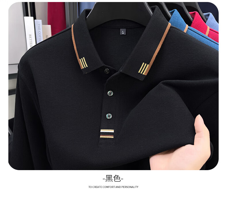 SHANSHAN杉杉男士长袖T恤男2026春季新款纯棉系扣Polo衫纯色透气男士上衣 黑色 M /170