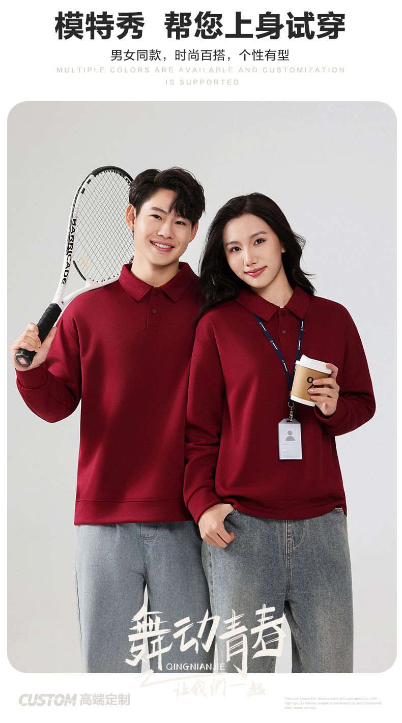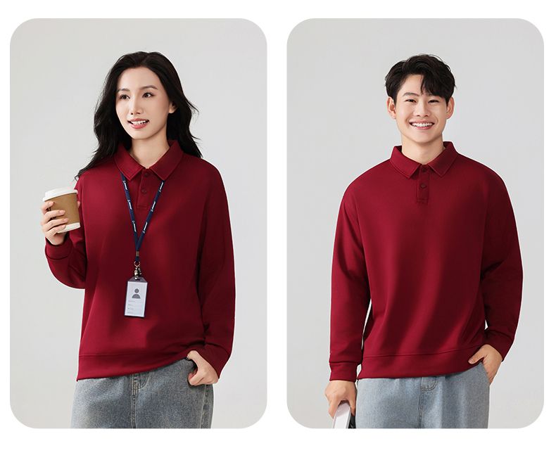 真维斯(Jeanswest)翻领Polo卫衣情侣款新款卫衣新款潮牌百搭内搭打底衫男 酒红色 S