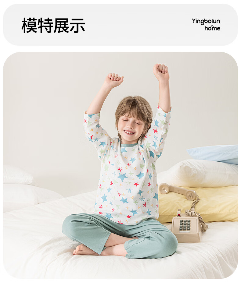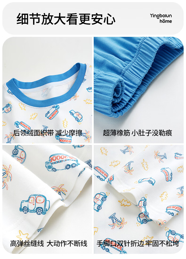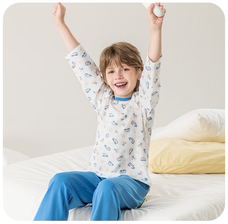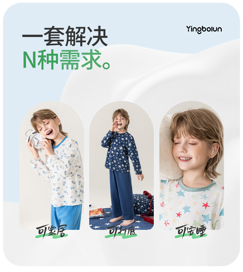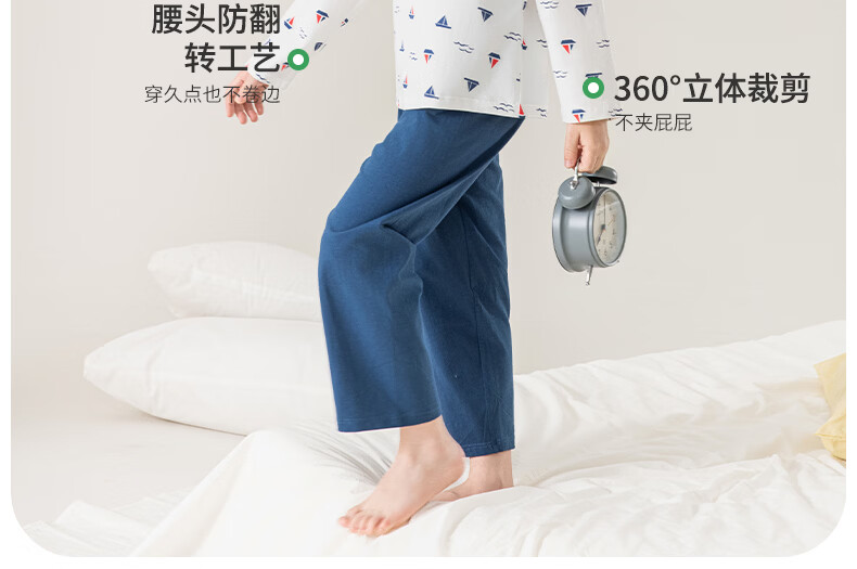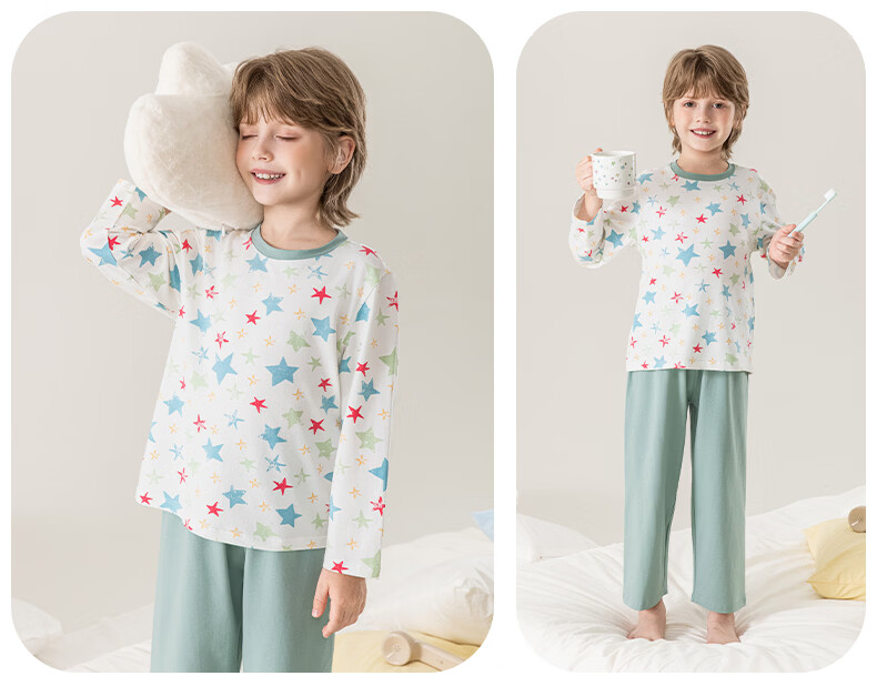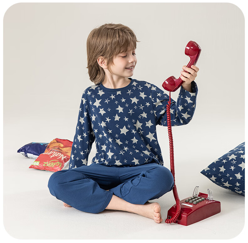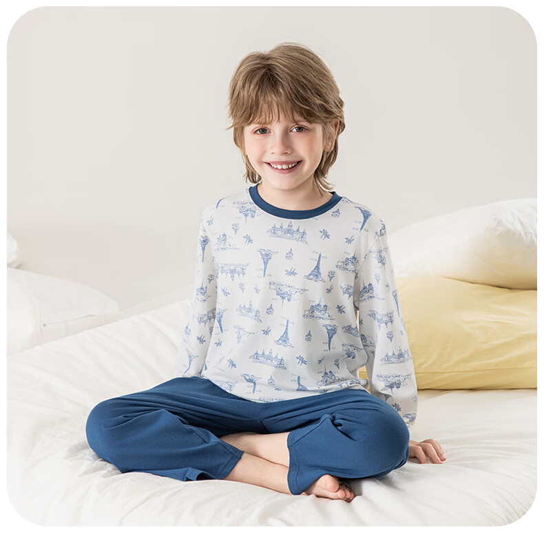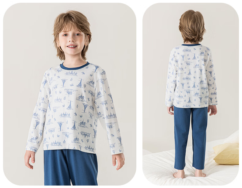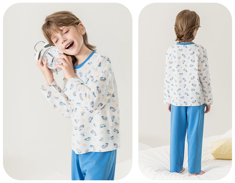 英博伦男童睡衣A类纯棉儿童家居服套装男孩春秋款中大童长袖长裤 60625宝蓝 120