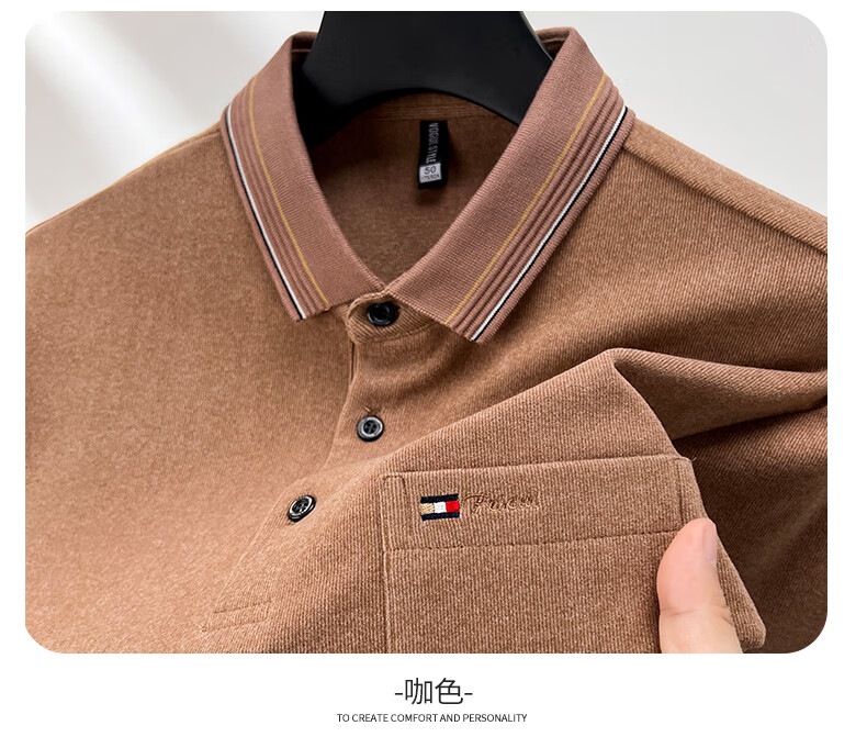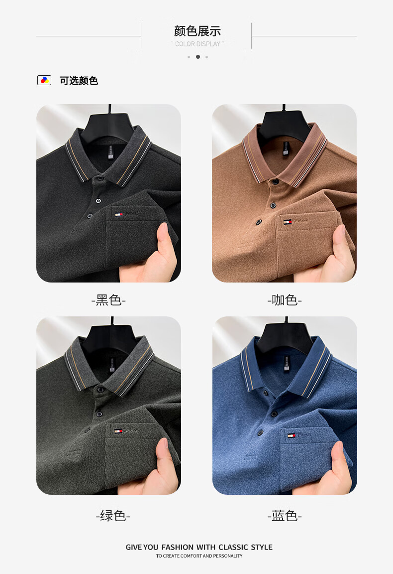 SHANSHAN杉杉男士长袖T恤2026春季新款商务休闲Polo衫简约打底通勤男上衣 黑色 M /170