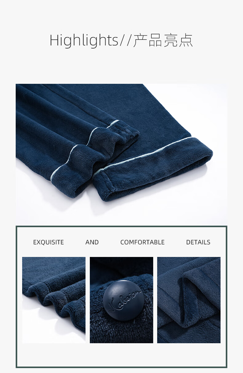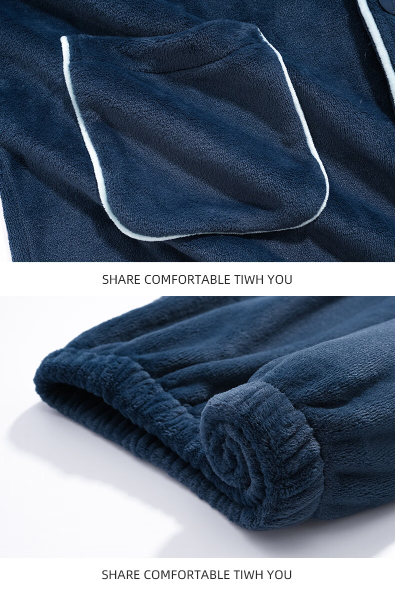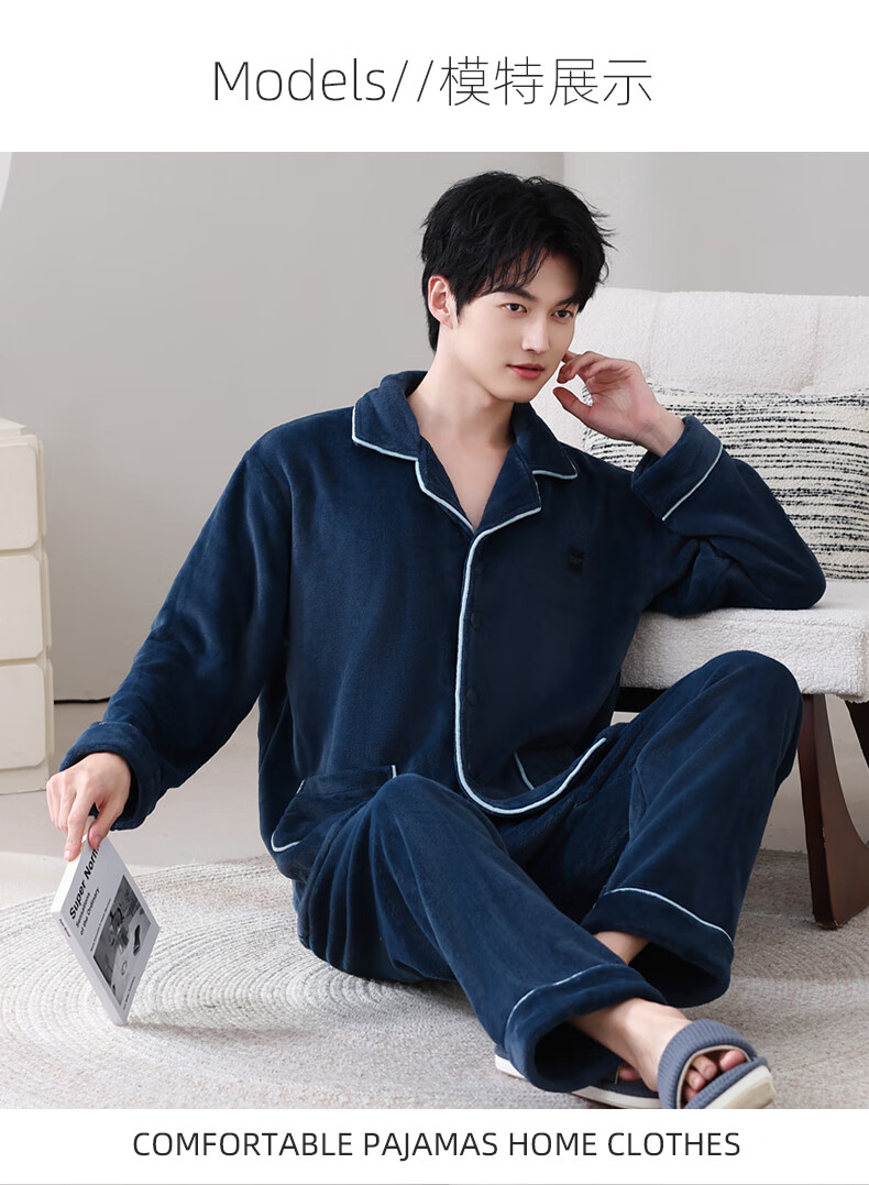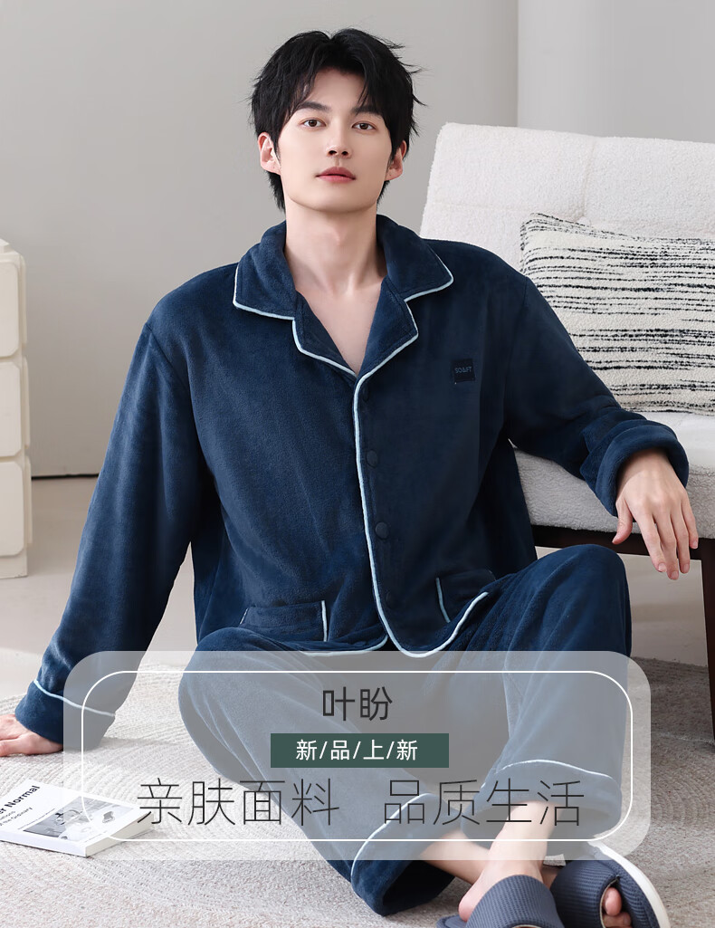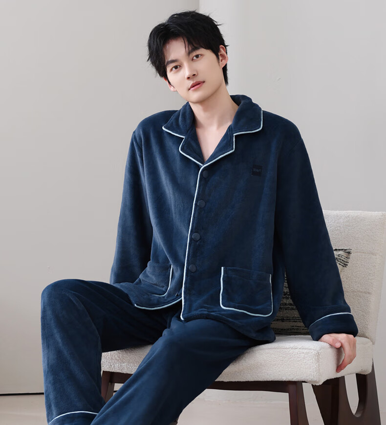 叶盼(yepan)【保暖】法兰绒睡衣男冬季加绒加厚大码高级感男士家居服保暖套装 5904-宝石蓝 L (170) :建议100-135斤穿着
